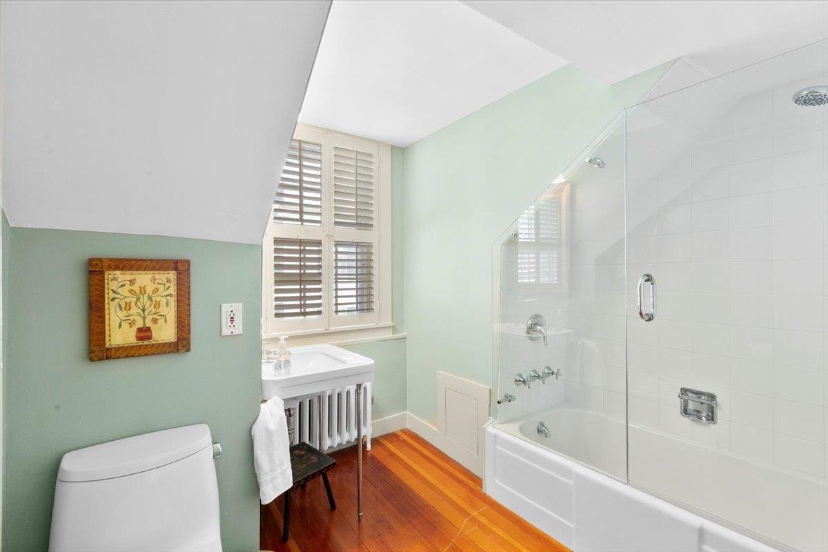 Set in the heart of Manchester Village, this beautifully renovated historic home blends timeless character with thoughtful modern updates. The result is a warm and inviting residence that honors its past while offering the comfort and style of today. The kitchen and great room are the true centerpiece of the home, stunning in both design and function, with high-end finishes and an open feel ideal for gathering and everyday living. The main level offers exceptional flexibility, featuring three distinct living spaces along with a bedroom and full bath, making it well suited for guests, a home office, or convenient single-level living. Upstairs, two well-appointed bedroom suites provide privacy and comfort, with a versatile bonus space between them that works well as a reading nook, office, or additional sleeping area. The newly renovated primary bath stands out with radiant heated floors, an oversized shower, and a beautiful balance of modern materials and classic charm. Mountain views can be enjoyed from the rear of the home, while the front opens to Manchester Village’s iconic sidewalks, placing shops, dining, and local amenities just moments away. This is a rare opportunity to own a turnkey historic home in one of Manchester’s most desirable locations.