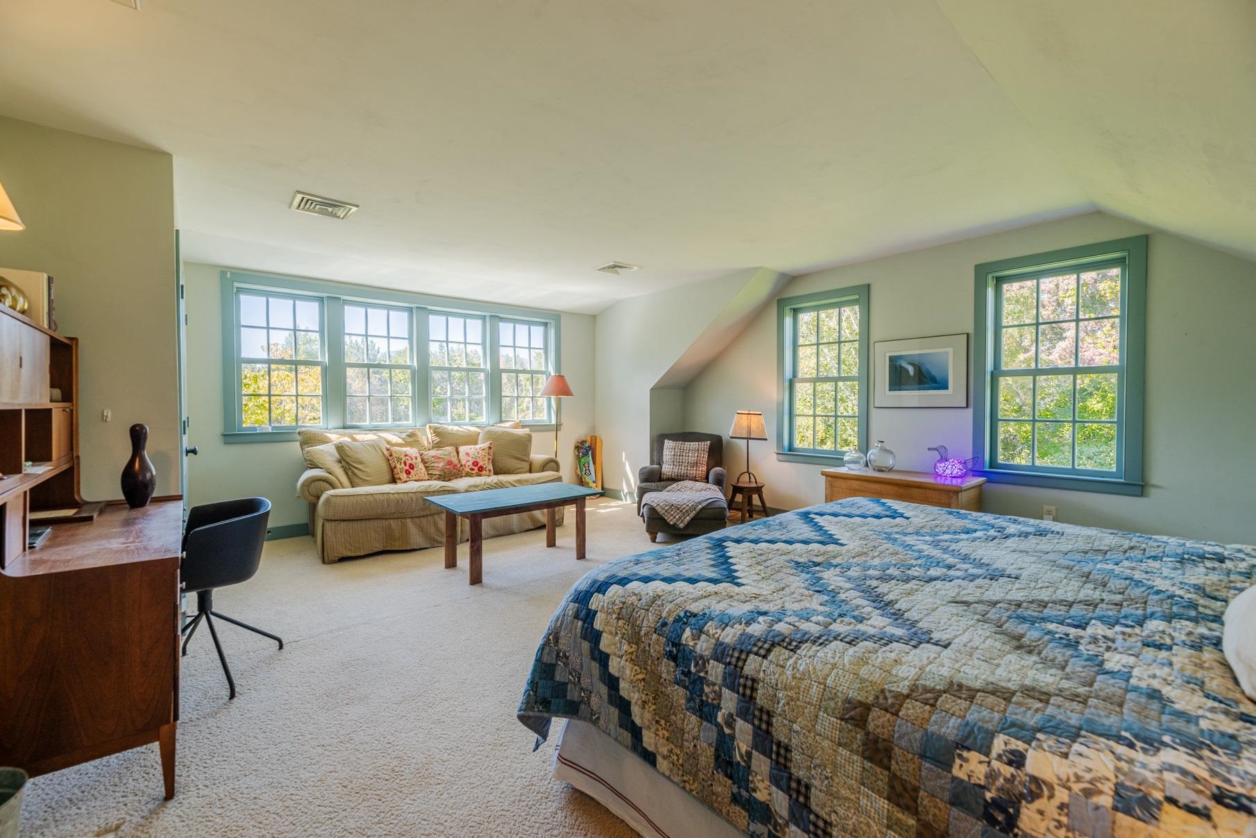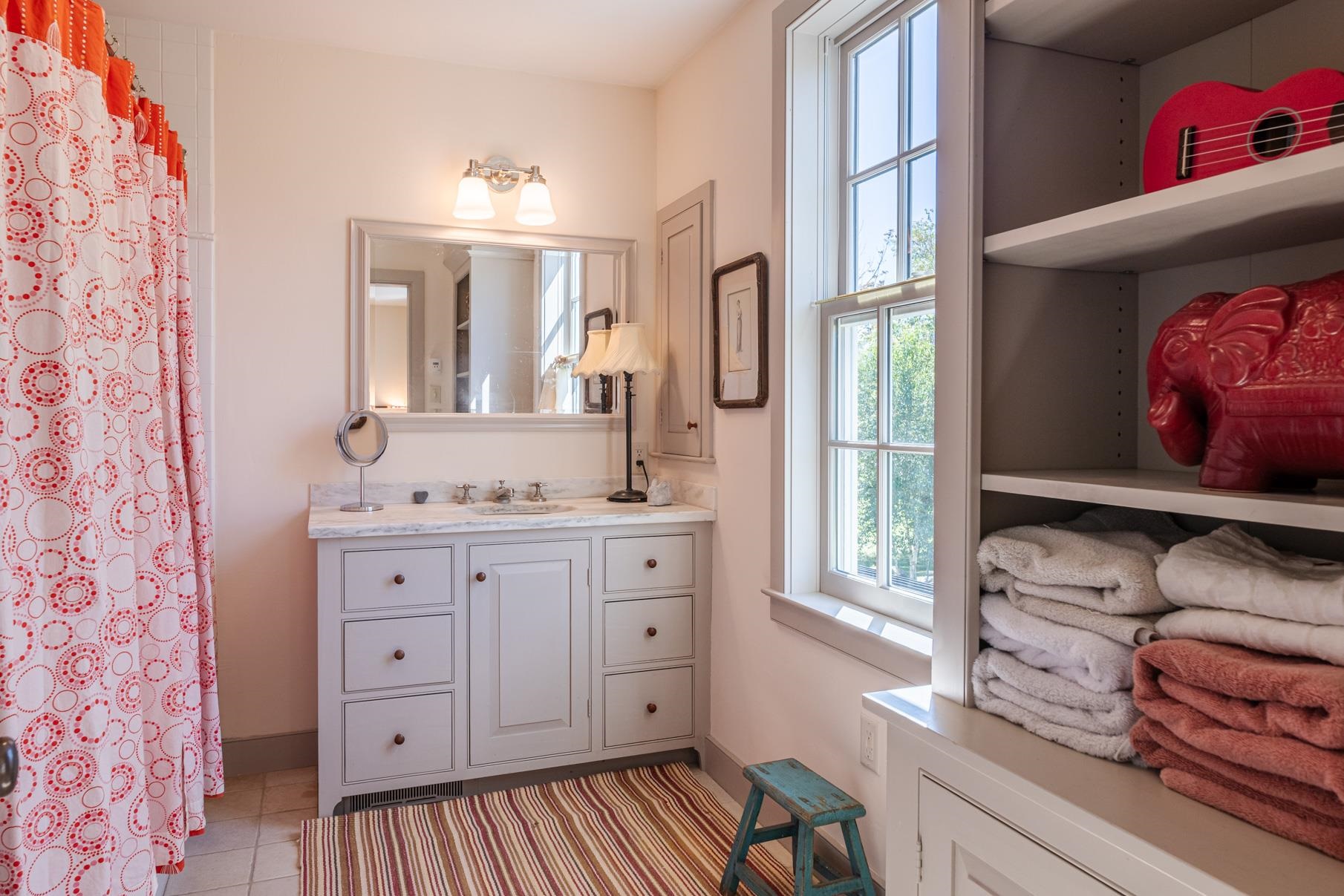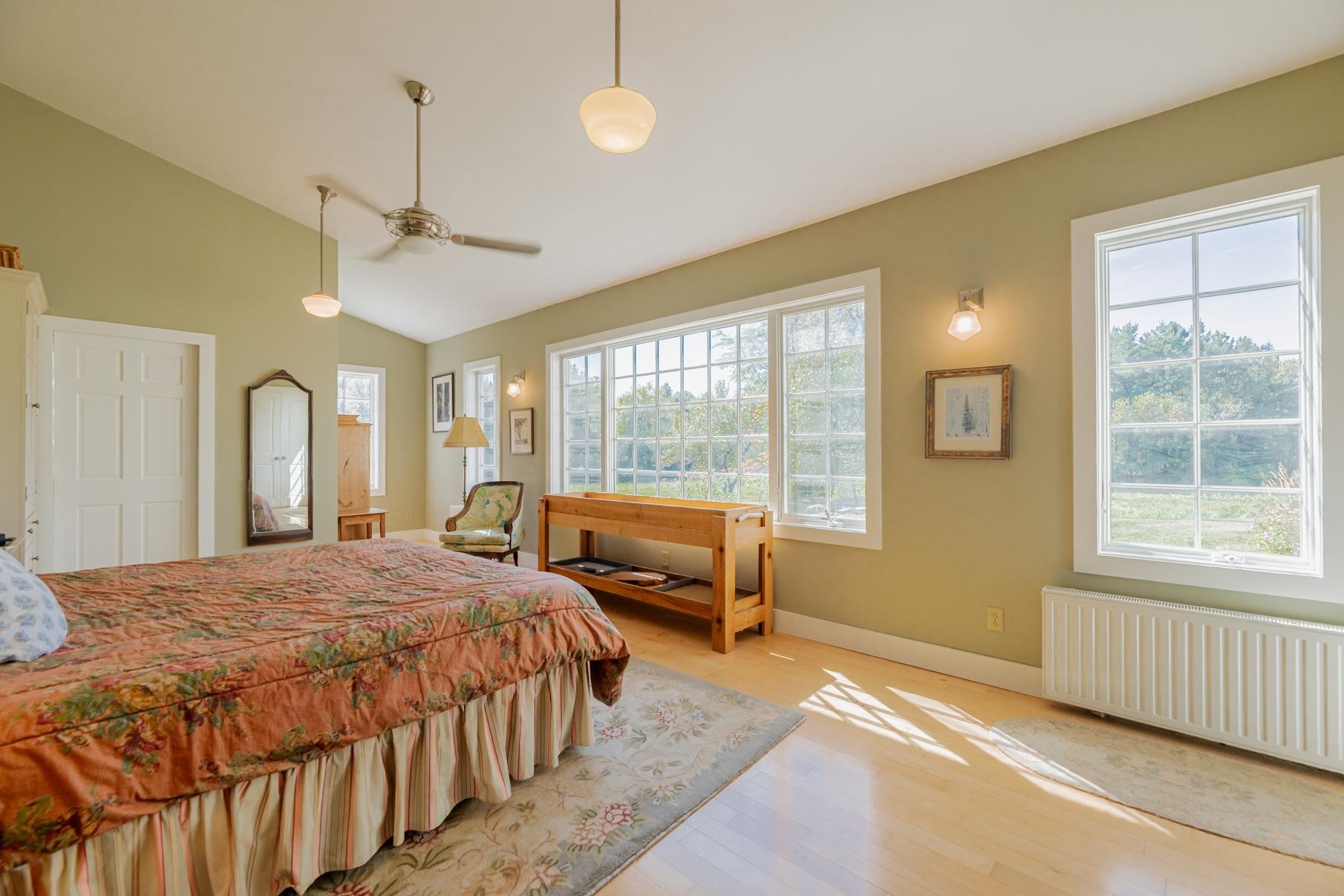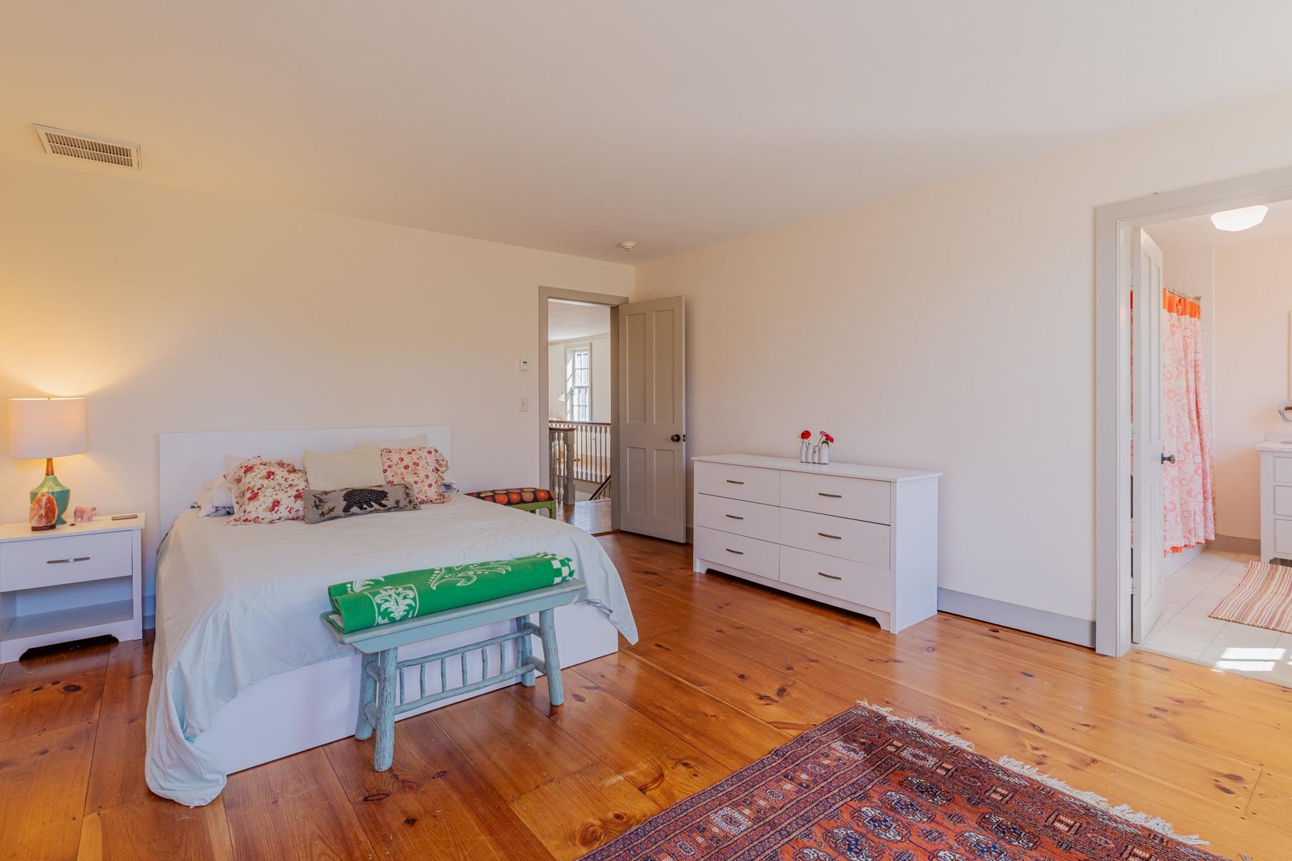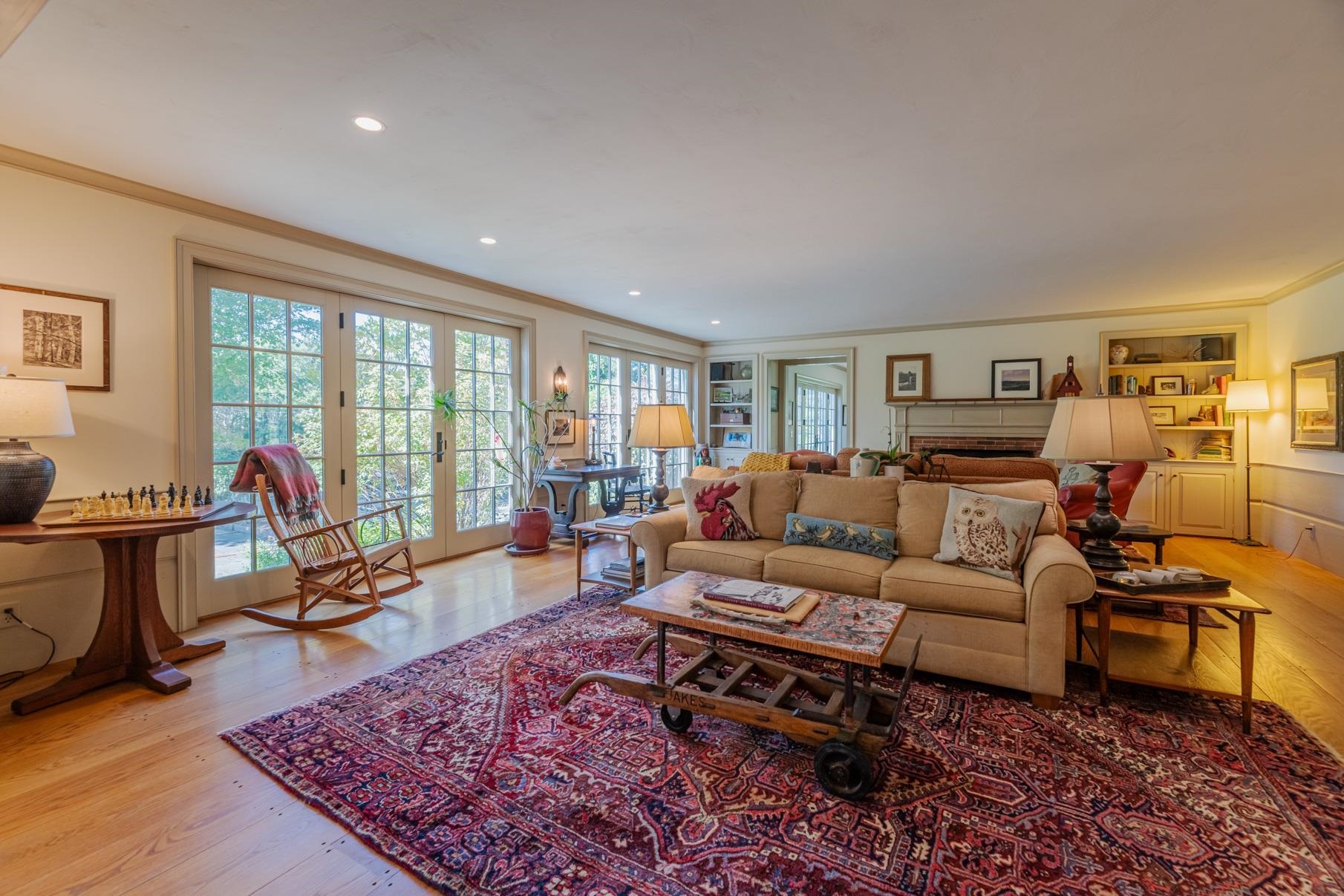Located in the desirable Green Peak Orchard, this exceptional custom Greek Revival residence is set on 9.9 private acres surrounded by mature landscaping, stone walls, and terraces. Thoughtfully designed with timeless craftsmanship, the home features wide-plank floors, hand-plastered walls and ceilings, custom moldings, historic reproduction lighting, and finely crafted wainscoting and cabinetry. Slate and copper roofs, along with Vermont marble and soapstone, enhance the home’s distinctive character. A welcoming brick-floored mudroom opens to the heart of the home—an expansive, sun-filled chef’s kitchen with butler’s pantry, dining area, and bar, all with direct access to a charming kitchen garden for fresh herbs and seasonal blooms. The adjoining keeping room with fireplace flows seamlessly into a rustic family/sunroom highlighted by a striking Vermont fieldstone fireplace. French doors from both spaces open to a gracious slate terrace, creating ideal indoor-outdoor living. A book-lined library offers a quiet retreat, while a first-floor bedroom with en suite bath provides comfort and flexibility for guests. Upstairs, the primary suite features a spacious spa-like bath. Three additional bedrooms and two full baths offer ample accommodations. Radiant heat throughout ensures year-round comfort. The grounds are equally impressive, with curated landscaping, stonework, outdoor shower, and hot tub for relaxing under the stars. Completing the property is a two-story attached party barn/workshop, an attached two-car garage with loft storage and attached garden shed. A rare offering combining classic New England elegance with modern comfort—must be seen to be fully appreciated. All measurements approximate.