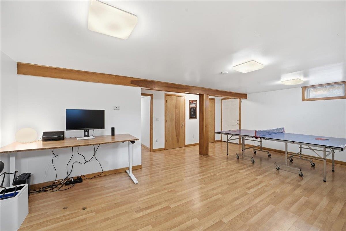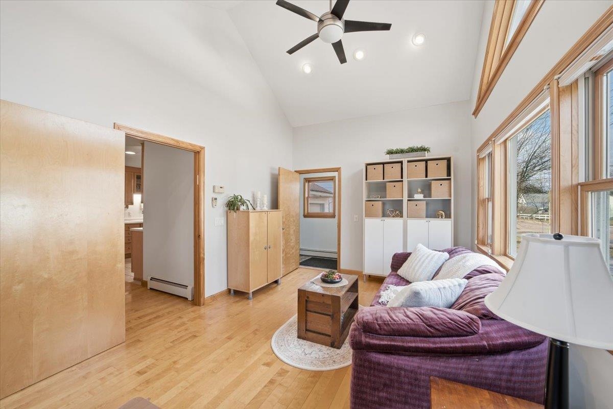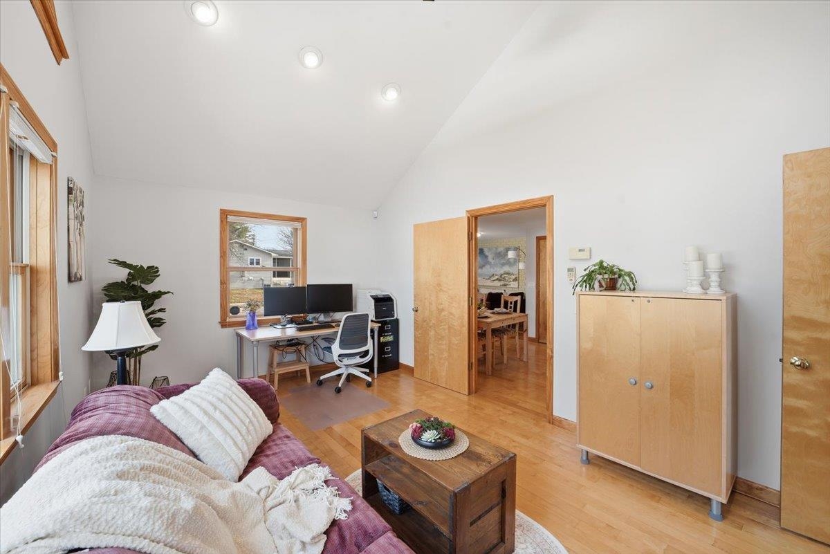 Welcome to this spacious and versatile 3-bedroom, 2-bath ranch-style home in the heart of Essex Junction! Set on a desirable corner lot with a level backyard, this property also features a detached one-car garage and a covered breezeway connecting the garage to the home. Offering a great blend of comfort, flexibility, and opportunity, this home includes multiple living areas, valuable updates already completed, and room to personalize and grow. Step inside through the spacious mudroom entry—ideal for Vermont living. The main level offers a bright and inviting layout featuring three bedrooms, a fully renovated bathroom with modern finishes, a generously sized kitchen, and an open dining and living area. A standout feature is the bonus room addition with vaulted ceilings and expansive windows, filling the space with natural light—perfect for a home office, studio, playroom, or additional flex space to suit your lifestyle. The partially finished basement provides even more versatility, featuring a spacious recreation room that can easily function as a media room, gym, office, or additional living space. This level also includes a second full bathroom with a whirlpool tub, a tiled walk-in shower with glass door and built-in bench, along with a dedicated laundry area and generous storage space with built-in shelving. Conveniently located just minutes to schools, shopping, dining, parks, dog parks, community garden, walking trails, public transportation, hospitals, and other local amenities, this property offers both flexibility and accessibility. Don’t miss this opportunity to build equity while creating a space tailored to your needs.