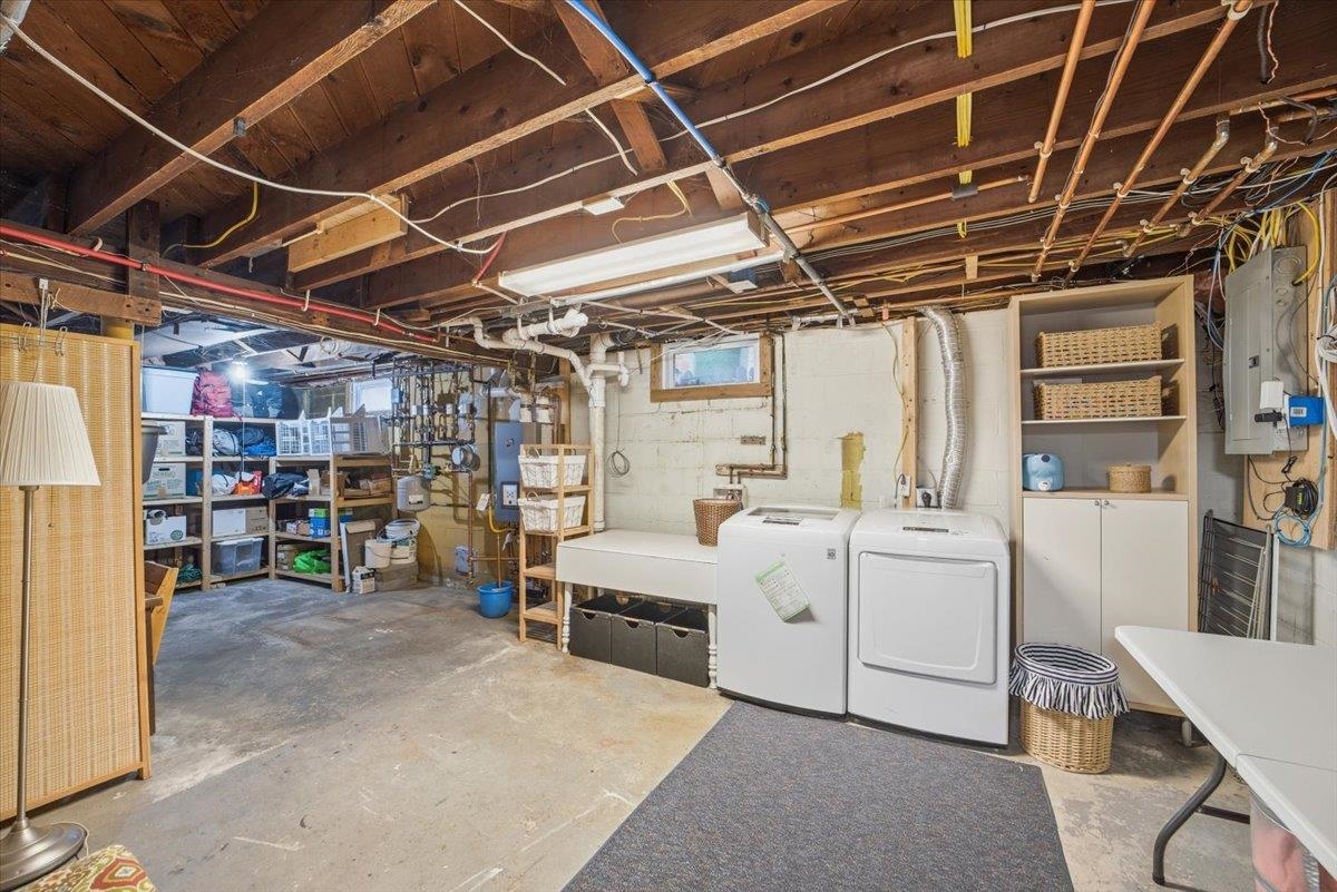 - Blinds, Dining Area, Natural Light, Indoor Storage, Vaulted Ceiling, Whirlpool Tub, Basement Laundry, Attic with Pulldown