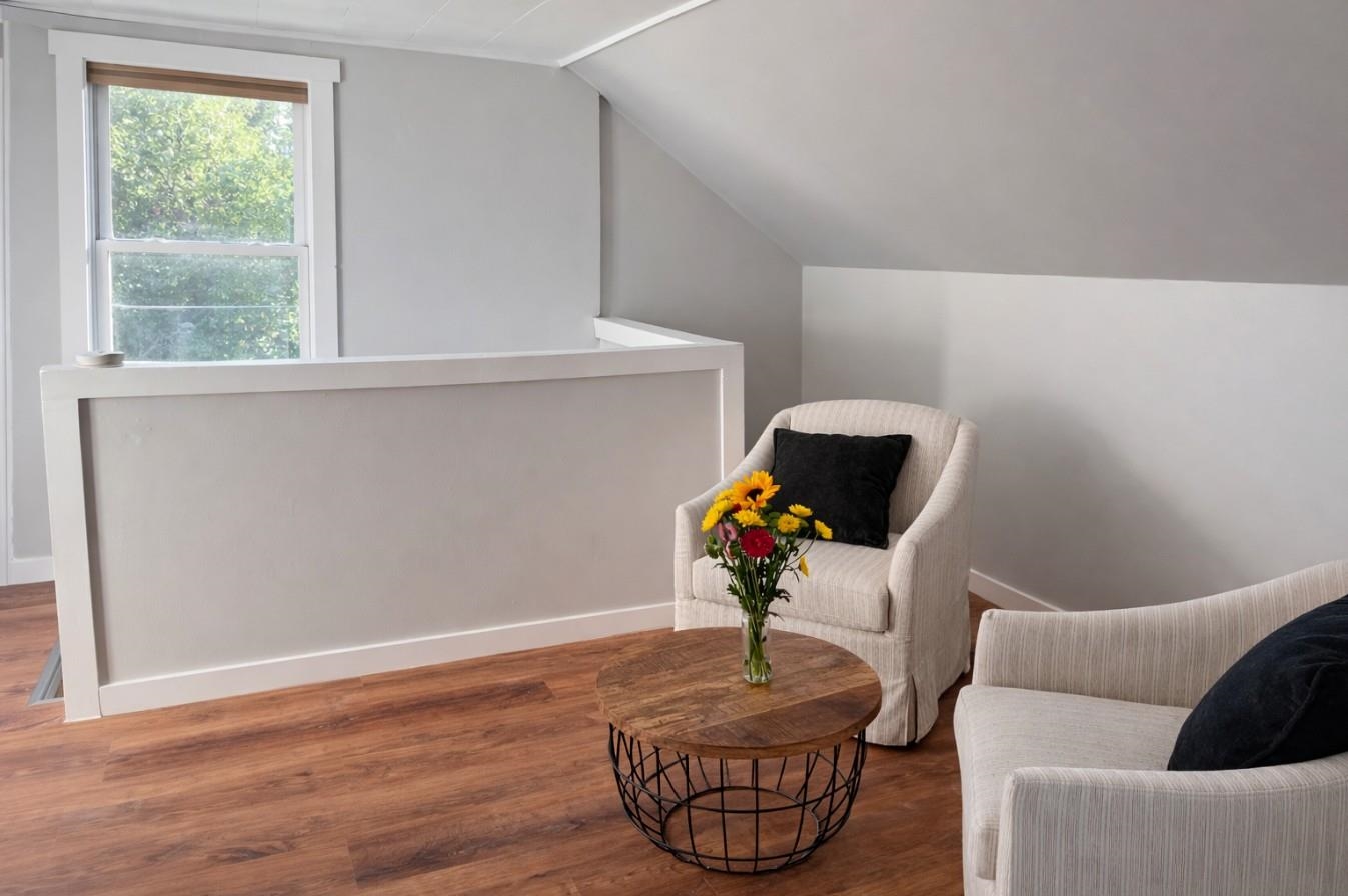 Move right into this beautifully renovated home tucked away at the end of a quiet street in desirable West Rutland. The updated kitchen is filled with natural light and showcases granite counter tops, stainless steel appliances, and a functional layout that flows seamlessly into the dining area. Step into the warm and inviting living room featuring hardwood floors and a cozy pellet stove, perfect for Vermont evenings. A comfortable den on the main level adds flexibility for a home office, playroom, or additional living space. Upstairs, you’ll find a charming loft area ideal for a reading nook or second family room, along with three full bedrooms and two full bathrooms, offering plenty of space for family and guests. Outside, enjoy the privacy of your spacious lot in a serene setting, all while being just minutes from local amenities.