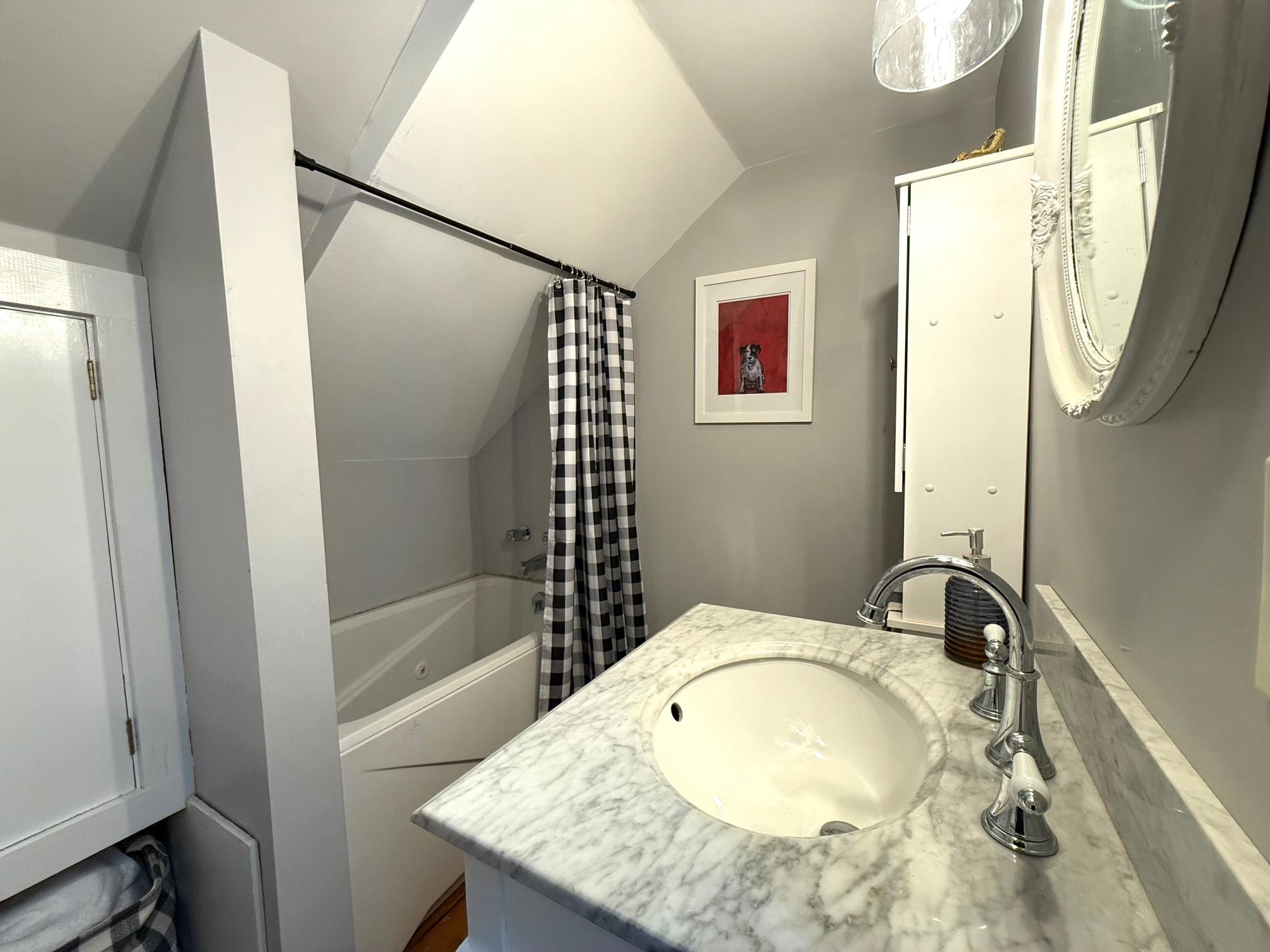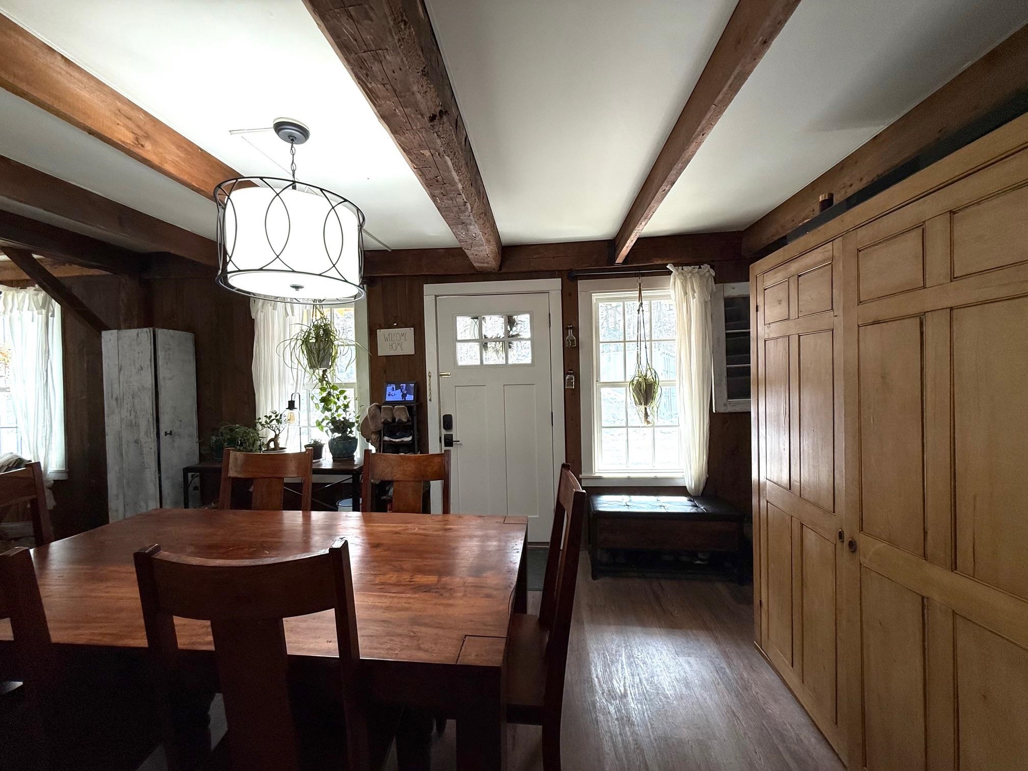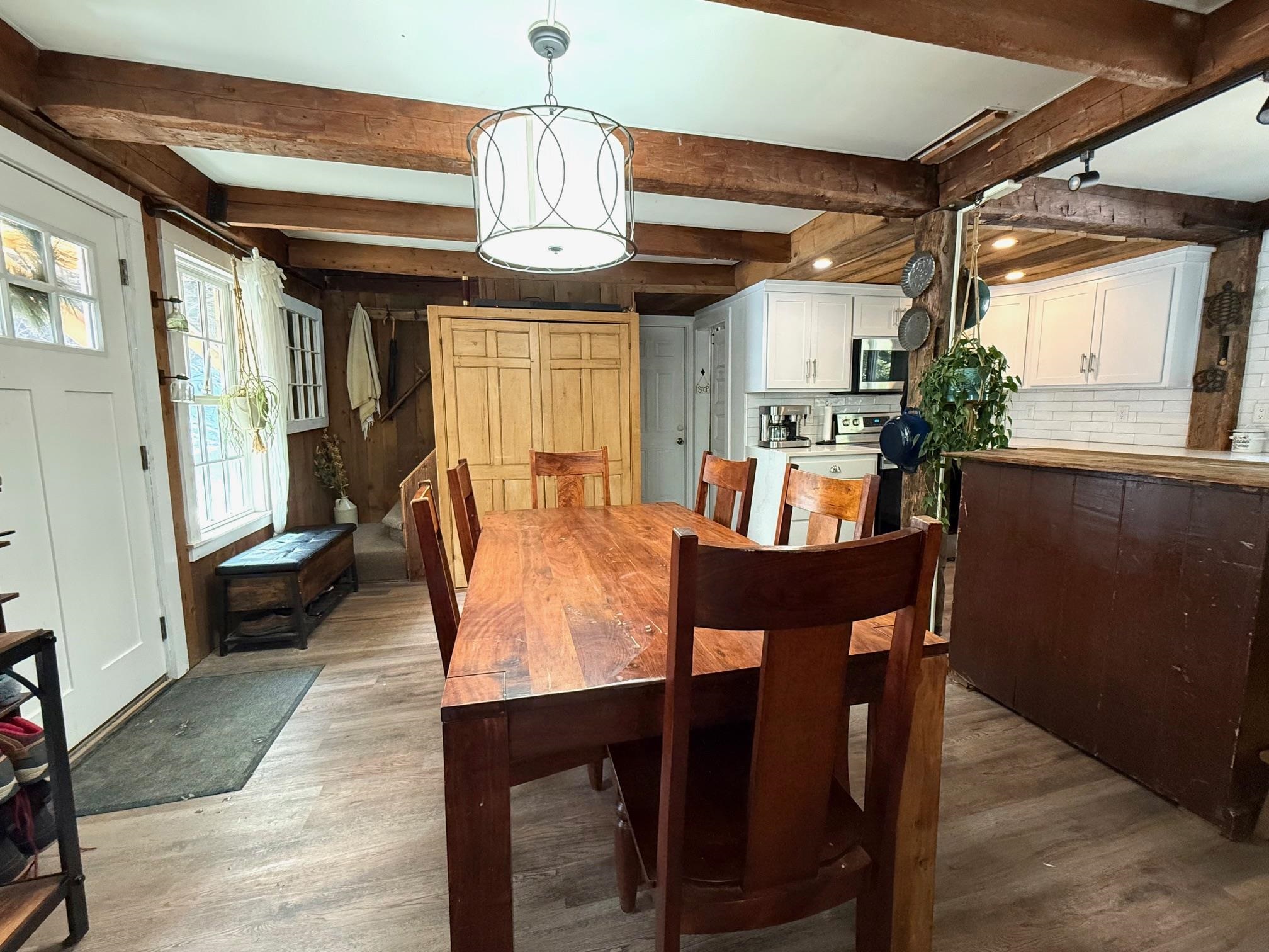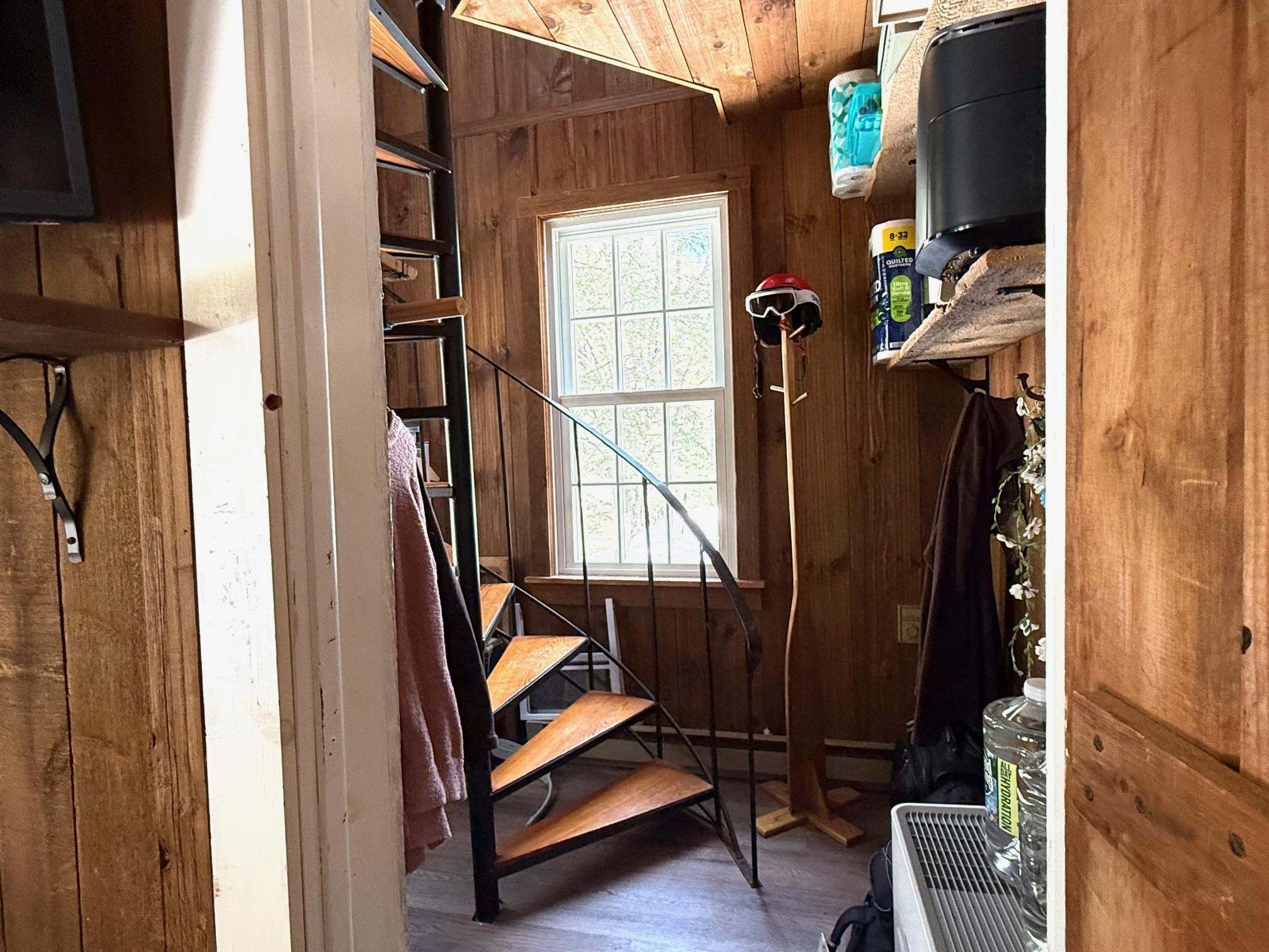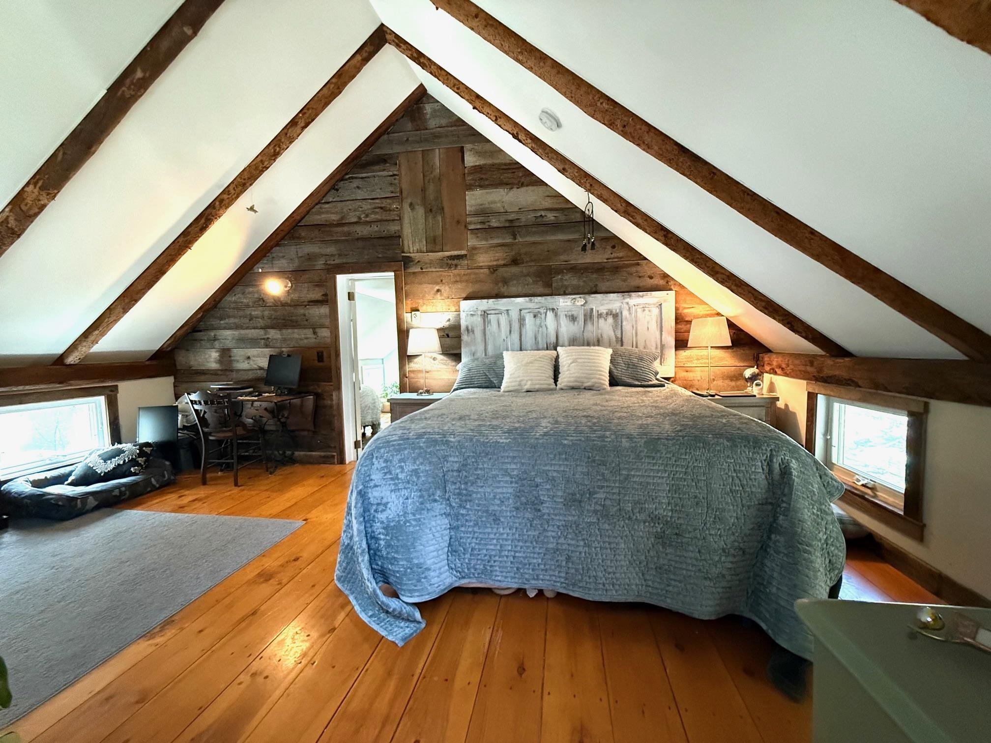 - Attic with Hatch/Skuttle, Dining Area, Furnished, Hearth, Natural Light, Natural Woodwork, Vaulted Ceiling, Wood Stove Hook-up