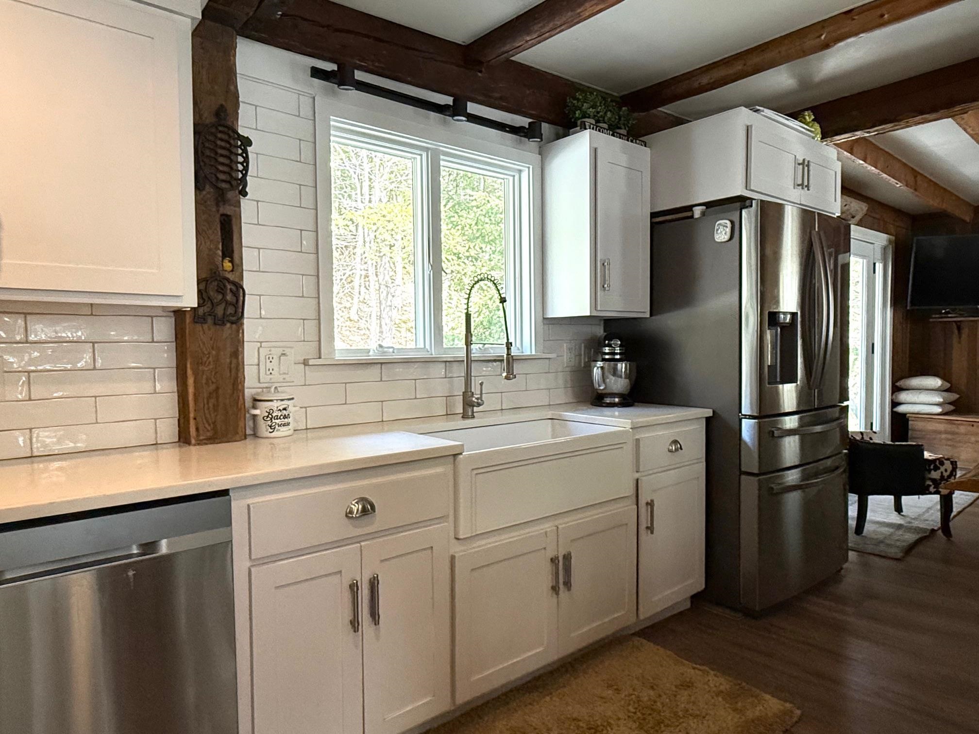 Vermont Charming! Tucked away along a peaceful river in Jamaica, Vermont this charming cape offers the perfect blend of privacy, character and convenience just 4 miles from Stratton Mountain Resort. With three bedrooms and one and three quarters baths, the home has been thoughtfully maintained and updated while preserving its classic New England charm. Recent upgrades to the kitchen and bathrooms provide modern comfort, new windows throughout make it energy efficient. A cozy wood stove creates the perfect atmosphere after a day on the slopes while the deck overlooking the river offers a relaxing spot to unwind and enjoy the natural setting. Outside, a fire pit area adds to the appeal, creating a wonderful gathering space for evenings under the stars. Private and secluded, yet minutes from skiing, dining, golf and year round recreation, this property is an ideal retreat or full time residence. Great price and location- sold furnished and move in ready - make an appointment to see it today!