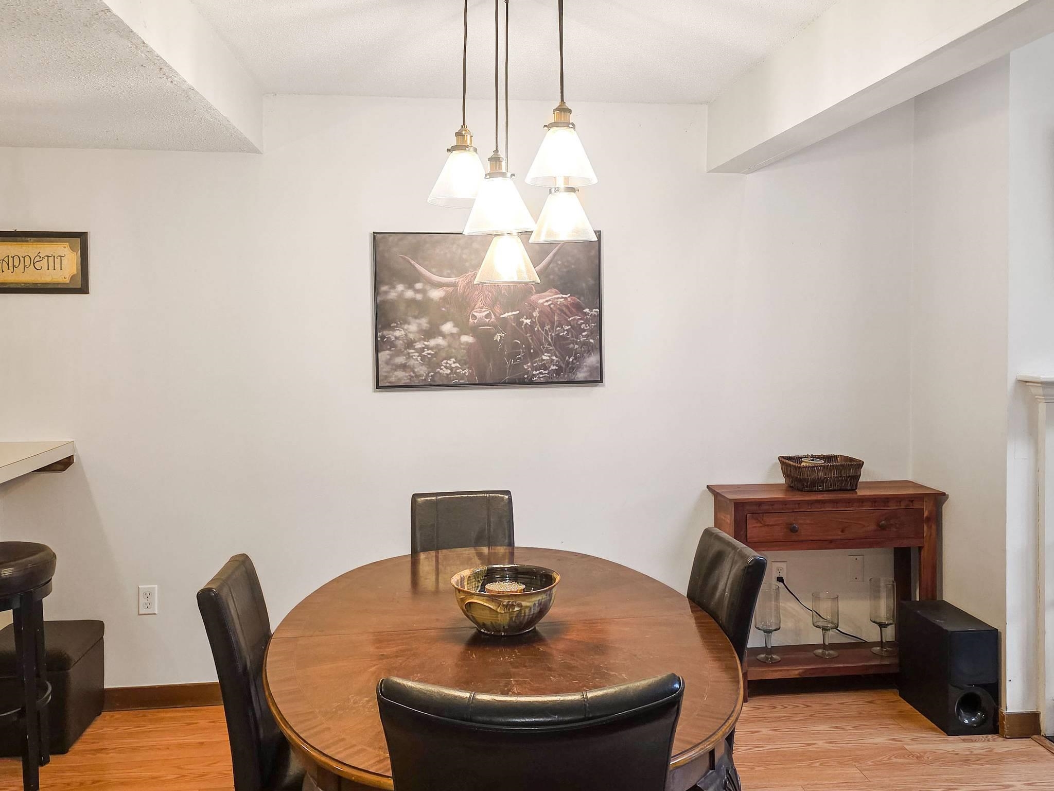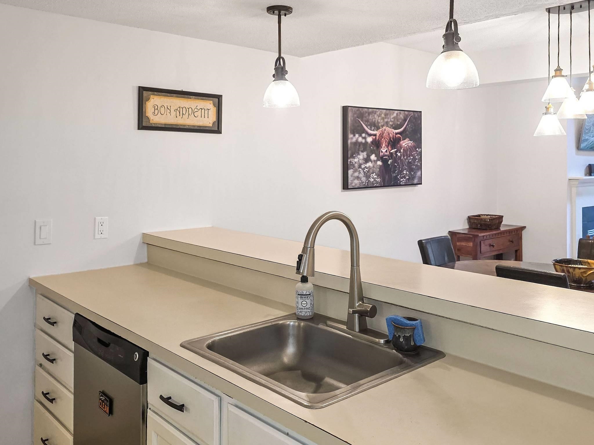 Tucked away from the other buildings, this unique three-bedroom, three-bath condominium offers a peaceful setting with wooded views from all three private balconies. Thoughtfully remodeled, the home features newer hardwood flooring, updated carpeting, and tastefully renovated bathrooms. The open-concept main level includes a comfortable kitchen with a breakfast bar, a dedicated dining area, and an inviting living room with a wood-burning fireplace and access to a balcony, perfect for relaxing or entertaining. This level also offers a full bath, in-unit laundry, and a bright, airy bedroom with its own private balcony. Upstairs, you’ll find two spacious bedrooms, each with en-suite baths, along with an additional balcony that enhances the home’s connection to its natural surroundings. Whether you’re looking for a year-round residence or a weekend retreat, this property offers the perfect opportunity to enjoy nearby amenities in every season.