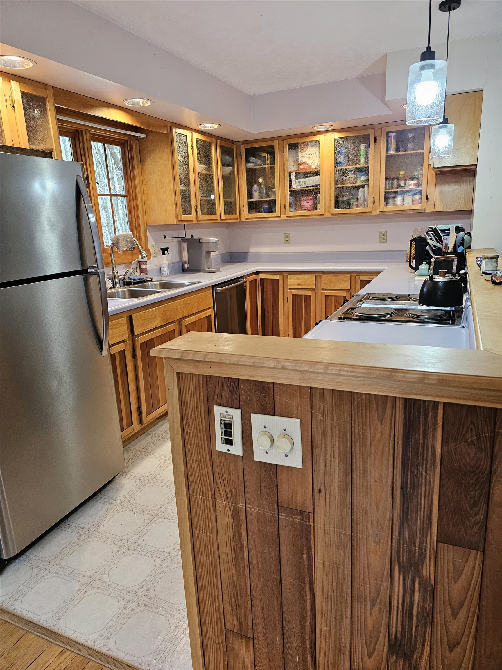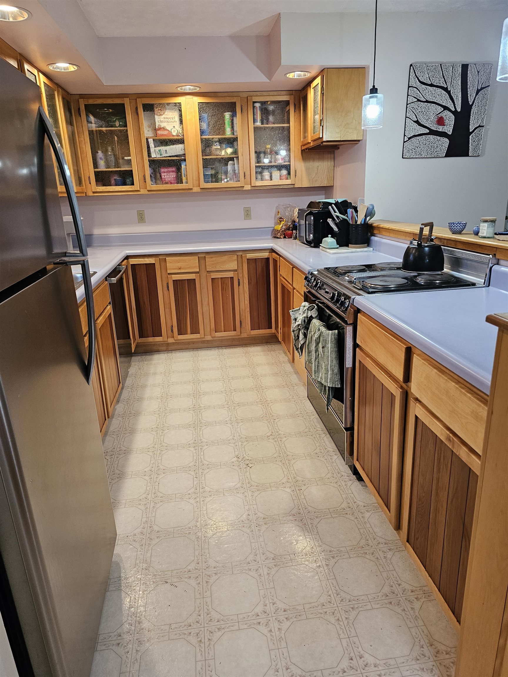 Cute cedar sided, 3 bedroom, 2 bath ranch on the perfect sized lot, not too big and not too small. Great space for family get togethers or entertaining including two decks, one overlooking the backyard offering privacy and easy access to the centrally located kitchen and large dining room. The kitchen has plenty of counters and lovely wood cabinets, an easy and convenient workspace for cooking. There are wood floors throughout the first floor and plenty of large windows and light. The spacious living room additionally enhancing the open floor plan and features a brick, wood burning fireplace with insert to keep you toasty on winter nights. There is also access to another deck on the south side of the home for cozier get togethers or relaxing. The three bedrooms are conveniently located and offer flexibility of use. The primary bedroom has a 3 quarter bath and a slider with direct access to the back deck and open view of the private backyard. The home has a partially finished basement and laundry space with storage cabinets The oversized two car garage with electric door openers has additional space for storage or keeping your wood under cover. This home is centrally located between Burlington and Middlebury and gives easy access to great skiing, hiking destinations and summer fun.