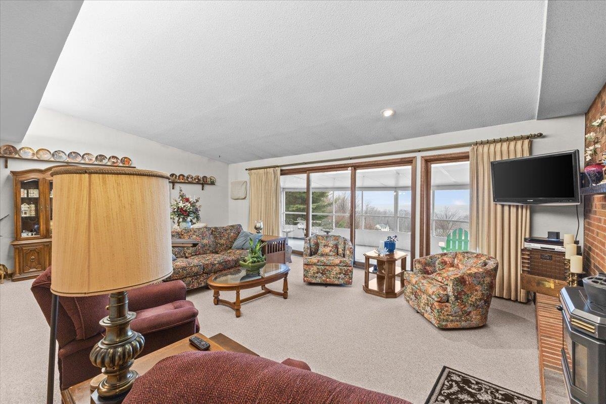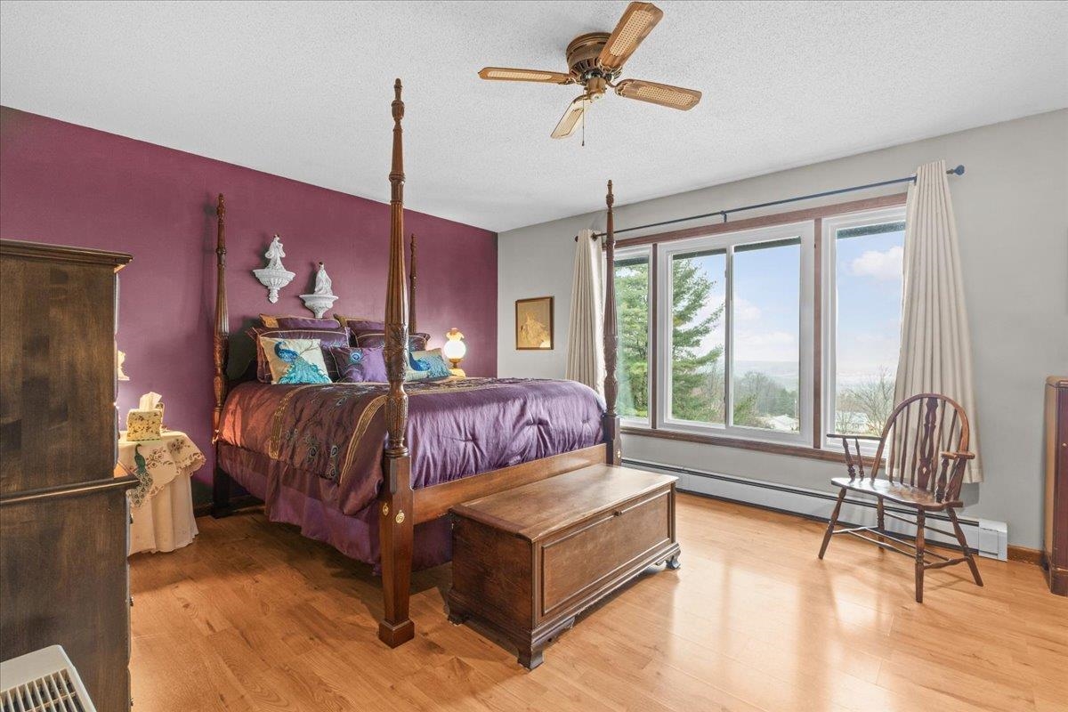 Perched atop a scenic hill in St. Albans this inviting 3 bedroom, 3 bath home offers the perfect blend of privacy, comfort, and breathtaking hillside views with spectacular sunsets overlooking lake Champlain all on 2.52 acres. Step inside to a spacious living room filled with natural light from dramatic floor-to-ceiling windows that perfectly frame the stunning landscape beyond. A sliding glass door leads to a screened-in porch, your ideal spot for morning coffee or evening relaxation while taking in the peaceful vista. The brick fireplace serves as a charming focal point, complemented by a pellet stove that adds both warmth and efficiency. The main living area features durable laminate flooring and flows seamlessly into a welcoming dining space and functional kitchen, creating an easy layout for everyday living and entertaining. All three bedrooms are conveniently located on the first floor, including a primary suite with its own en suite bath and a generous walk-in closet. A standout feature of the home is the dedicated sewing and laundry room - perfect for crafting, hobbies, or additional workspace. The lower level expands your living options with a full walkout and a second kitchen, making it ideal for hosting guests, extended family, or entertaining. Outside, you'll find a large shed/mini garage, offering excellent storage for tools and equipment. With complete privacy and sweeping views and just minutes to I-89 and a short drive to Burlington.
