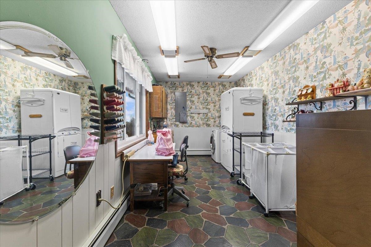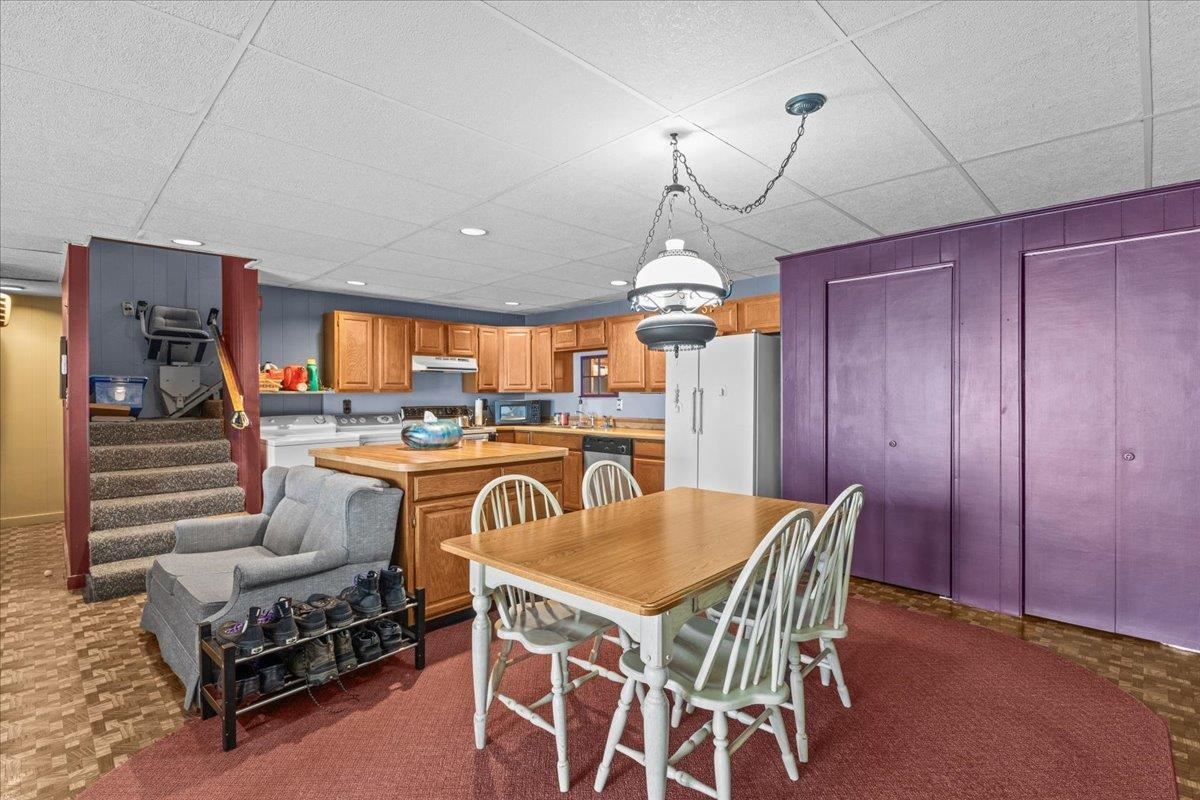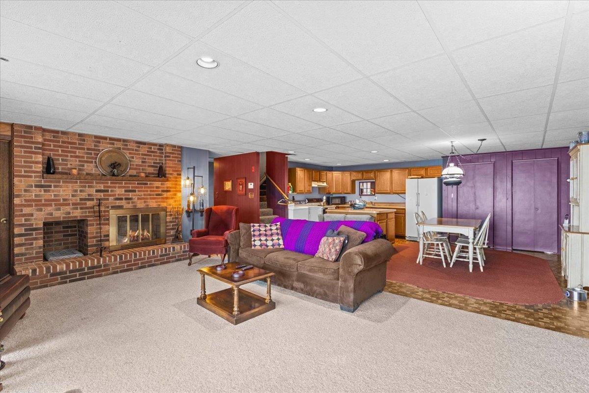 - Ceiling Fan, Dining Area, 2 Fireplaces, Hearth, Kitchen/Dining, Primary BR w/ BA, Natural Light, Vaulted Ceiling, Walk-in Closet, 1st Floor Laundry, Basement Laundry