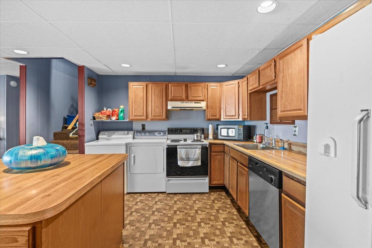 - Dishwasher, Disposal, Dryer, Microwave, Electric Range, Refrigerator, Washer, Domestic Water Heater, Tank Water Heater, Exhaust Fan