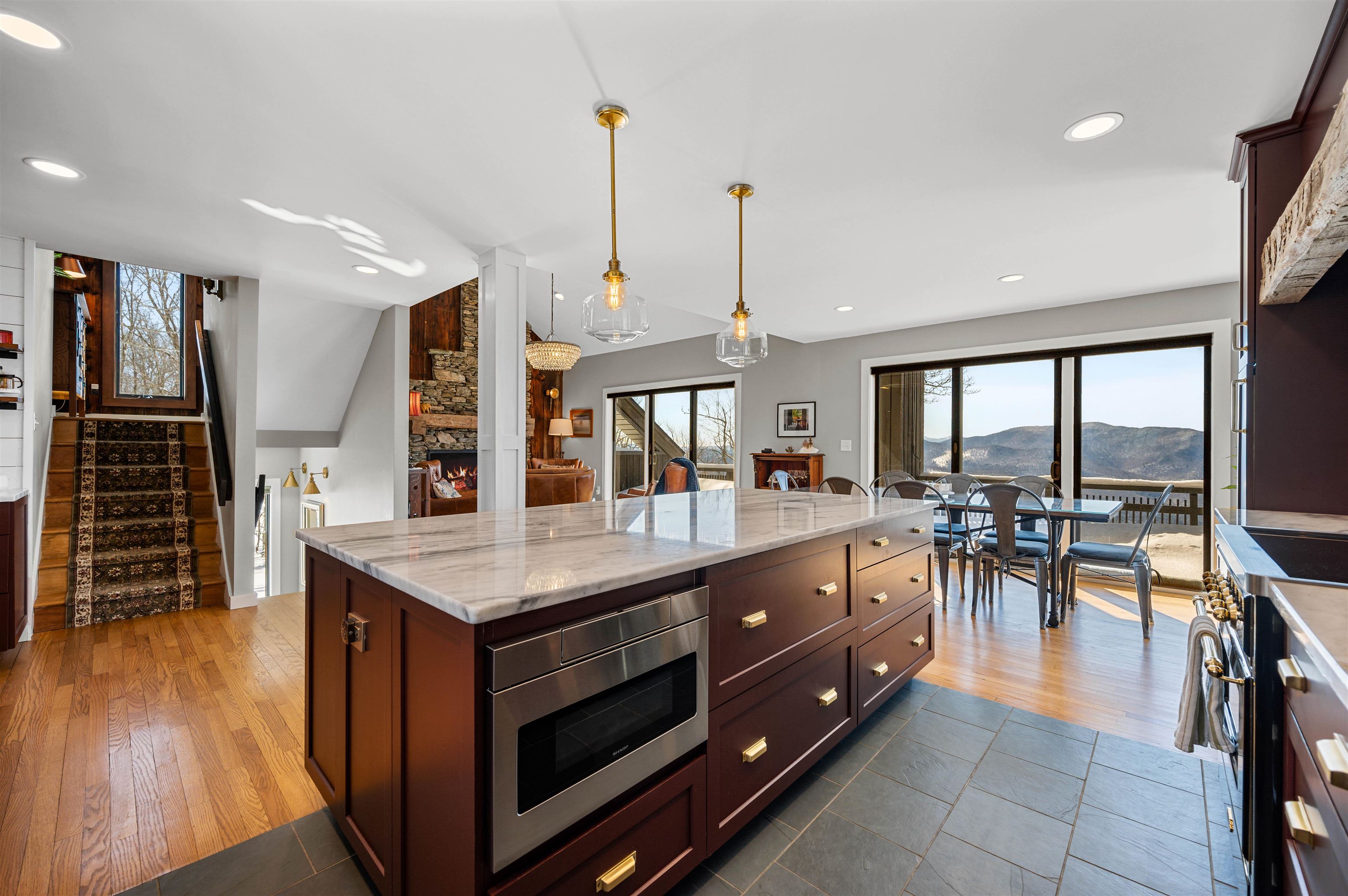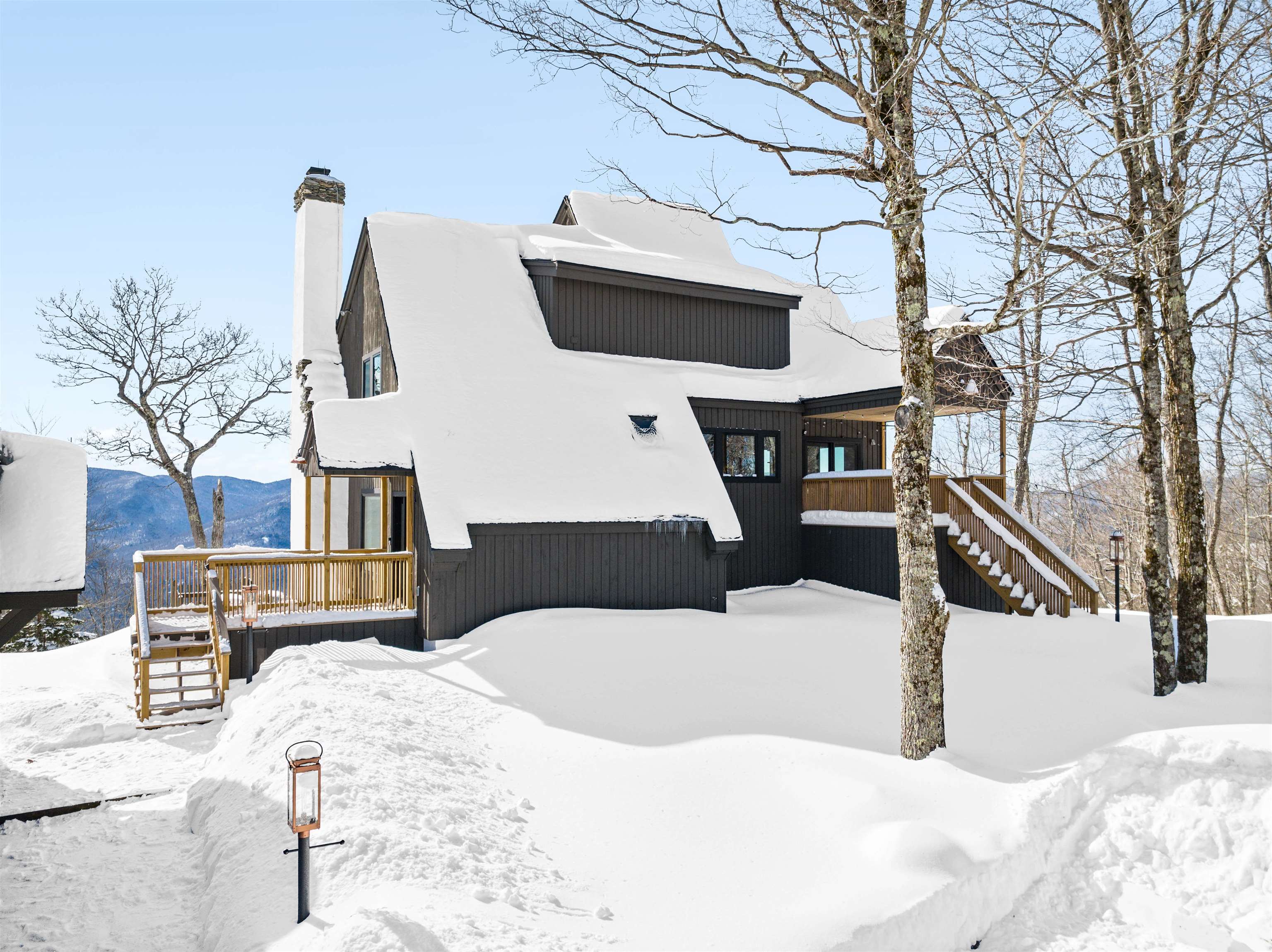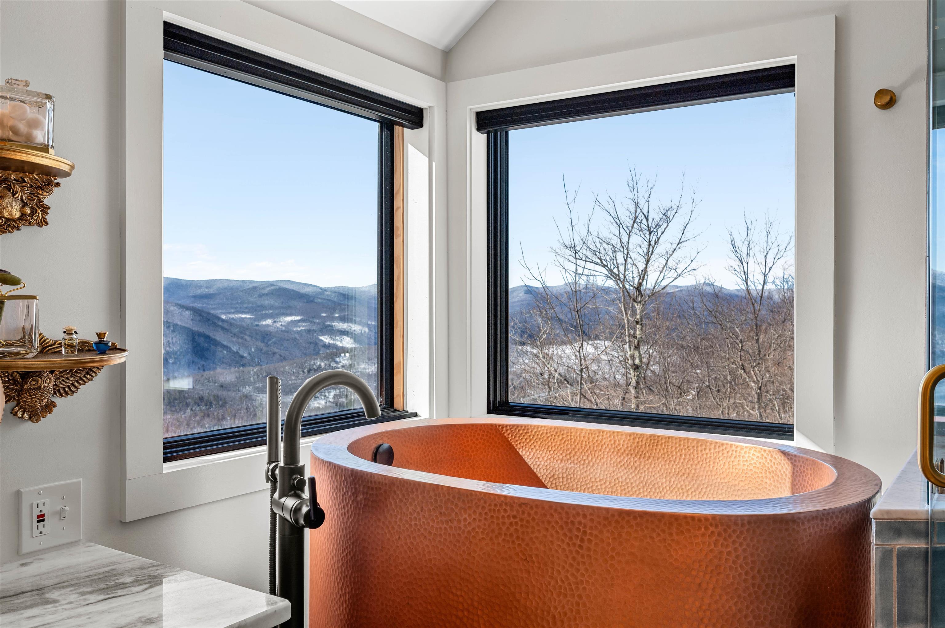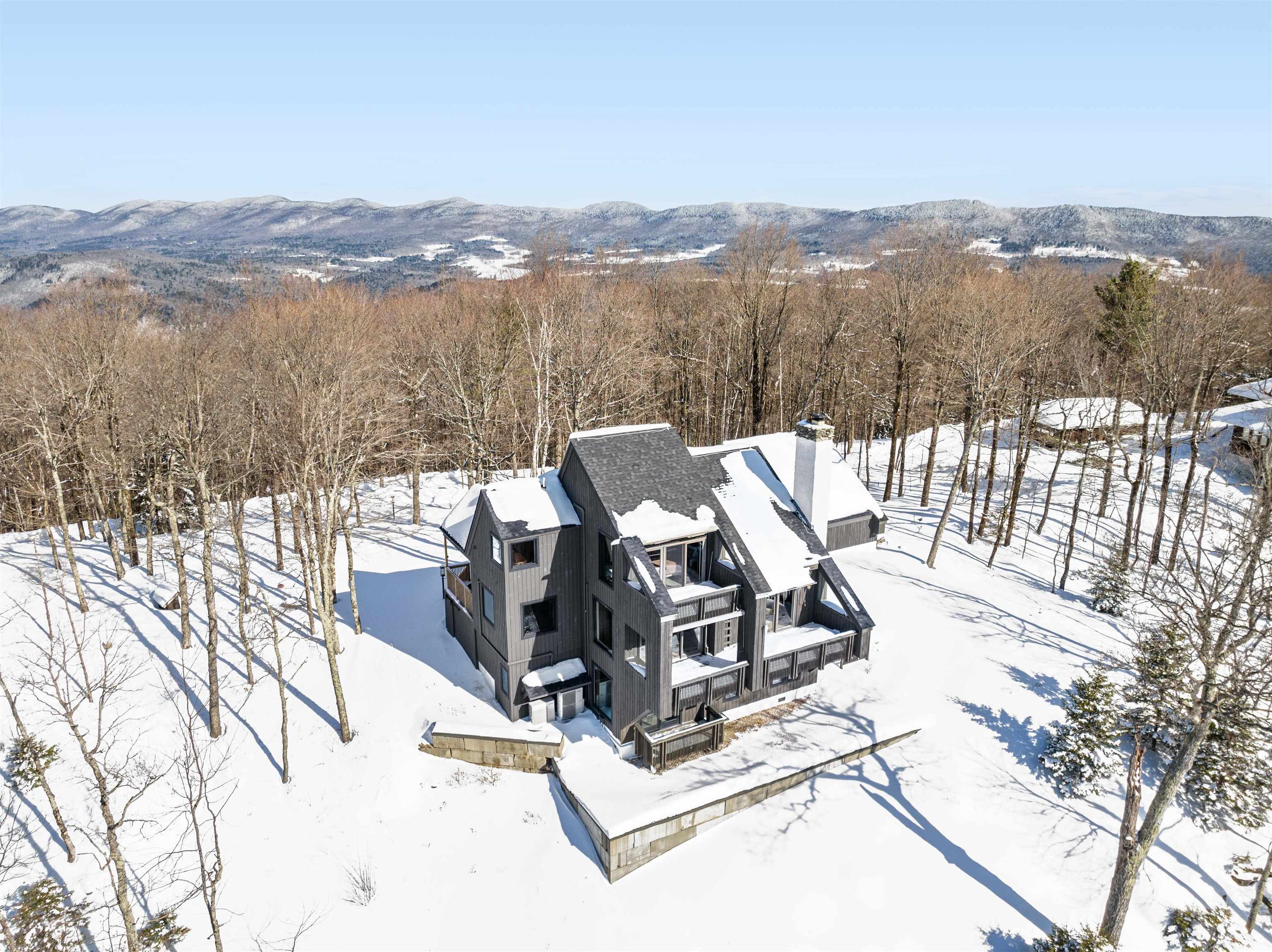 Where Mountain Living Meets Modern Design. Set on 7.3± private acres in the heart of Vermont’s premier ski country, this extraordinary retreat offers a rare blend of refined luxury and natural beauty. Thoughtfully renovated and expanded, the home showcases over 2, 500 finished square feet of curated living space with sweeping views of Killington and Pico, and seasonal glimpses of Camel’s Hump and Mount Mansfield. Designed for both comfort and sophistication, the heart of the home is a stunning chef’s kitchen featuring marble countertops, a custom oversized island, handcrafted DeVol tile, Rejuvenation hardware, brass accents, a pot filler, and high-end appliances including an Ilve Majestic induction range, Fisher & Paykel, and JennAir. The open living area is anchored by a striking stone fireplace and walls of glass that invite the outdoors in. The private primary suite addition is a true sanctuary, complete with a spacious walk-in closet, spa-inspired steam shower, and a Japanese copper air-jetted soaking tub perfectly positioned to take in the views. Extensive upgrades include new windows throughout, updated electrical and plumbing systems, foam insulation, new HVAC with four heat pumps, and Mysa smart thermostats for enhanced efficiency and comfort. Outdoor living is just as impressive, with multiple decks on all three levels—including a covered cooking deck—ideal for entertaining or quiet relaxation. A second entrance, detached one-car garage, standby whole house generator, updated landscaping with lighting, fire pit, and thoughtful design throughout complete this exceptional offering. This property offers flexibility as a luxury getaway, investment opportunity (off to a strong start with AirBnB rentals), or year-round residence. Ideally located near some of Vermont’s most celebrated destinations including Sugarbush and Killington, it also offers convenient access to the charming towns of Warren and Waitsfield. This home embodies the very best of Vermont living!