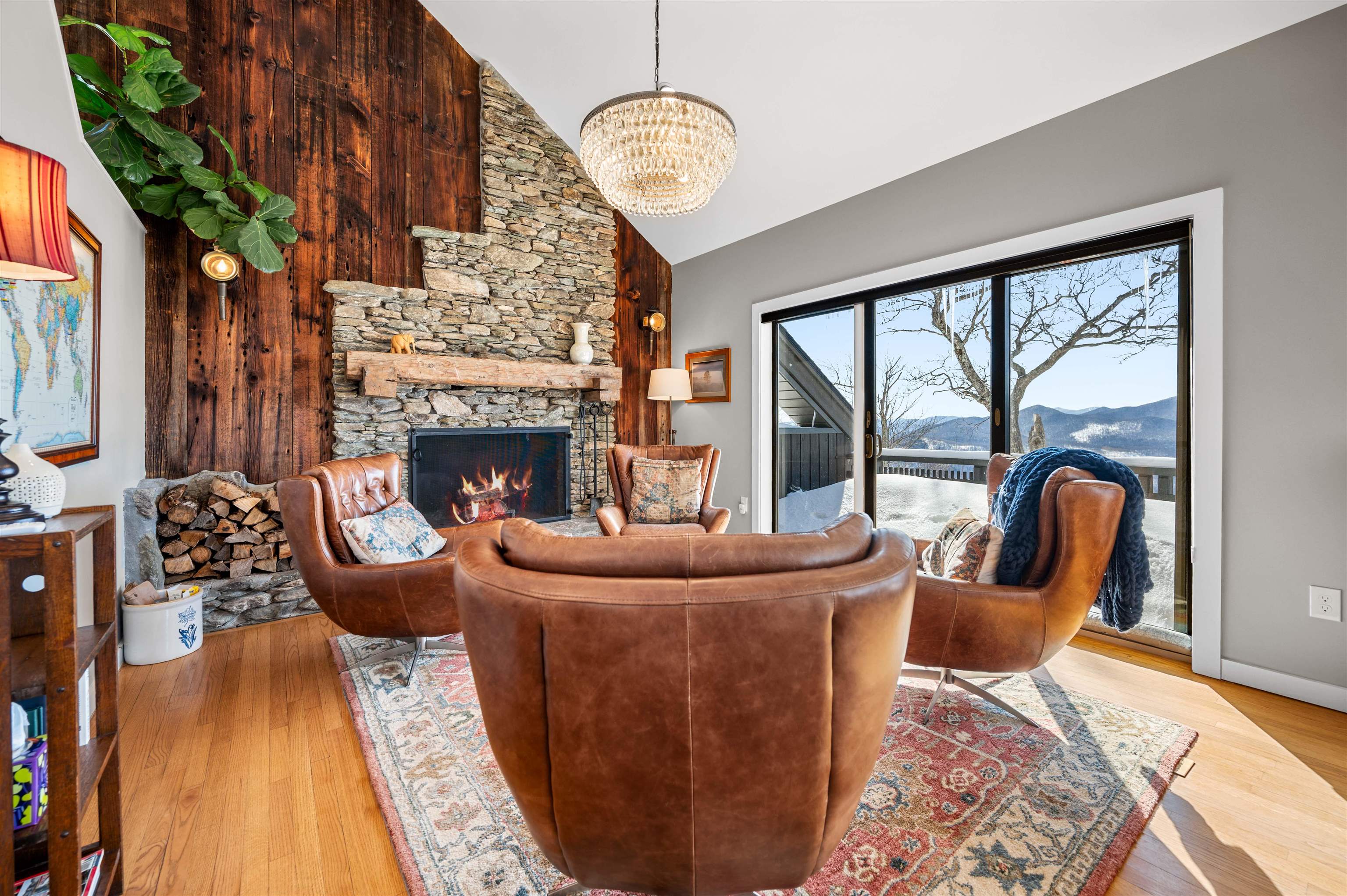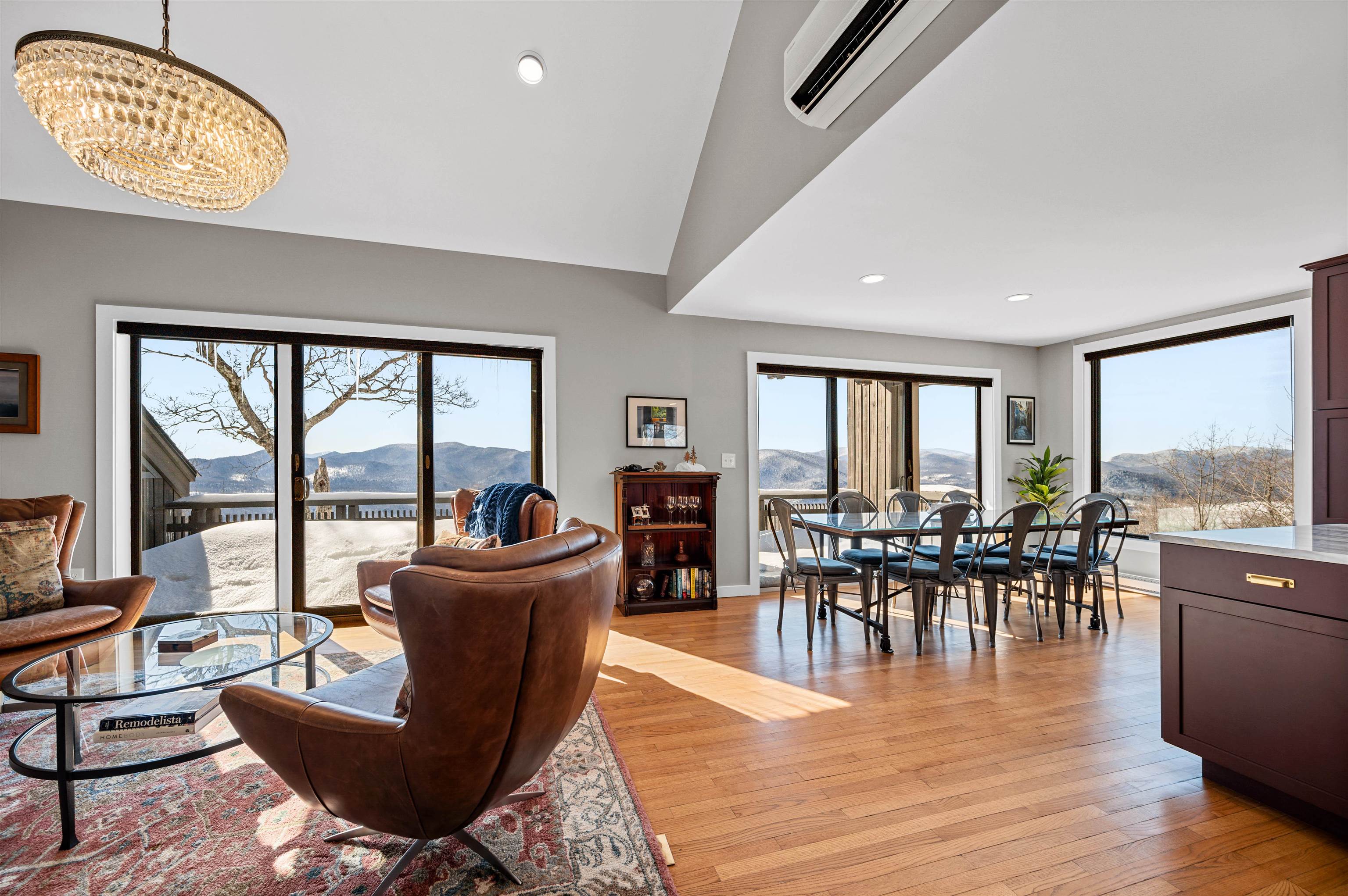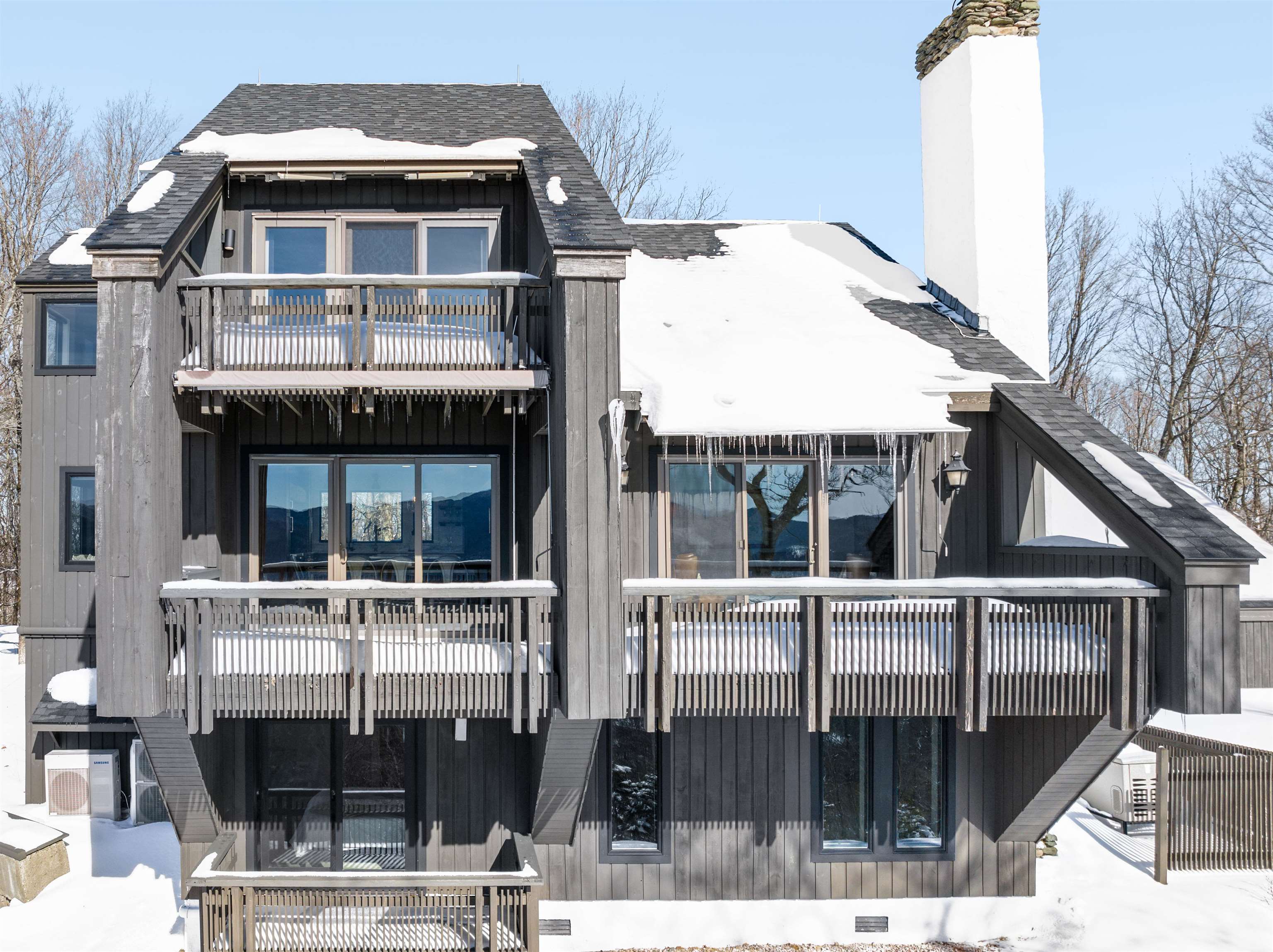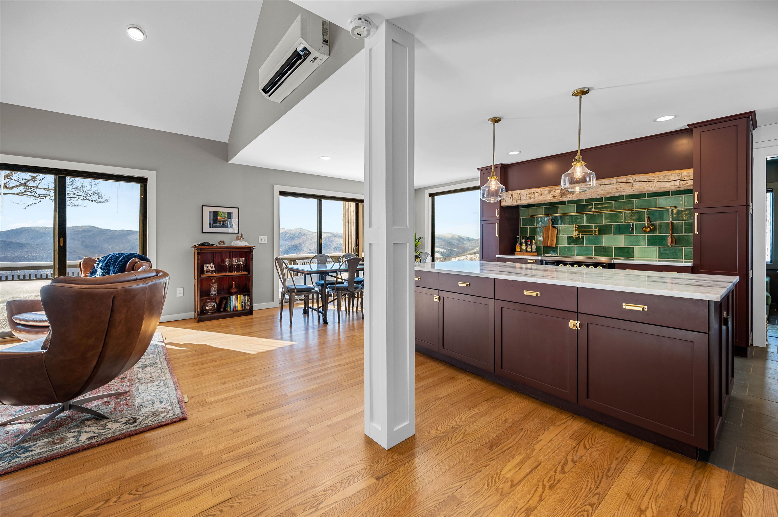 Where Mountain Living Meets Modern Design. Set on 7.3± private acres in the heart of Vermont’s premier ski country, this extraordinary retreat offers a rare blend of refined luxury and natural beauty. Thoughtfully renovated and expanded, the home showcases over 2, 500 finished square feet of curated living space with sweeping views of Killington and Pico, and seasonal glimpses of Camel’s Hump and Mount Mansfield. Designed for both comfort and sophistication, the heart of the home is a stunning chef’s kitchen featuring marble countertops, a custom oversized island, handcrafted DeVol tile, Rejuvenation hardware, brass accents, a pot filler, and high-end appliances including an Ilve Majestic induction range, Fisher & Paykel, and JennAir. The open living area is anchored by a striking stone fireplace and walls of glass that invite the outdoors in. The private primary suite addition is a true sanctuary, complete with a spacious walk-in closet, spa-inspired steam shower, and a Japanese copper air-jetted soaking tub perfectly positioned to take in the views. Extensive upgrades include new windows throughout, updated electrical and plumbing systems, foam insulation, new HVAC with four heat pumps, and Mysa smart thermostats for enhanced efficiency and comfort. Outdoor living is just as impressive, with multiple decks on all three levels—including a covered cooking deck—ideal for entertaining or quiet relaxation. A second entrance, detached one-car garage, standby whole house generator, updated landscaping with lighting, fire pit, and thoughtful design throughout complete this exceptional offering. This property offers flexibility as a luxury getaway, investment opportunity (off to a strong start with AirBnB rentals), or year-round residence. Ideally located near some of Vermont’s most celebrated destinations including Sugarbush and Killington, it also offers convenient access to the charming towns of Warren and Waitsfield. This home embodies the very best of Vermont living!