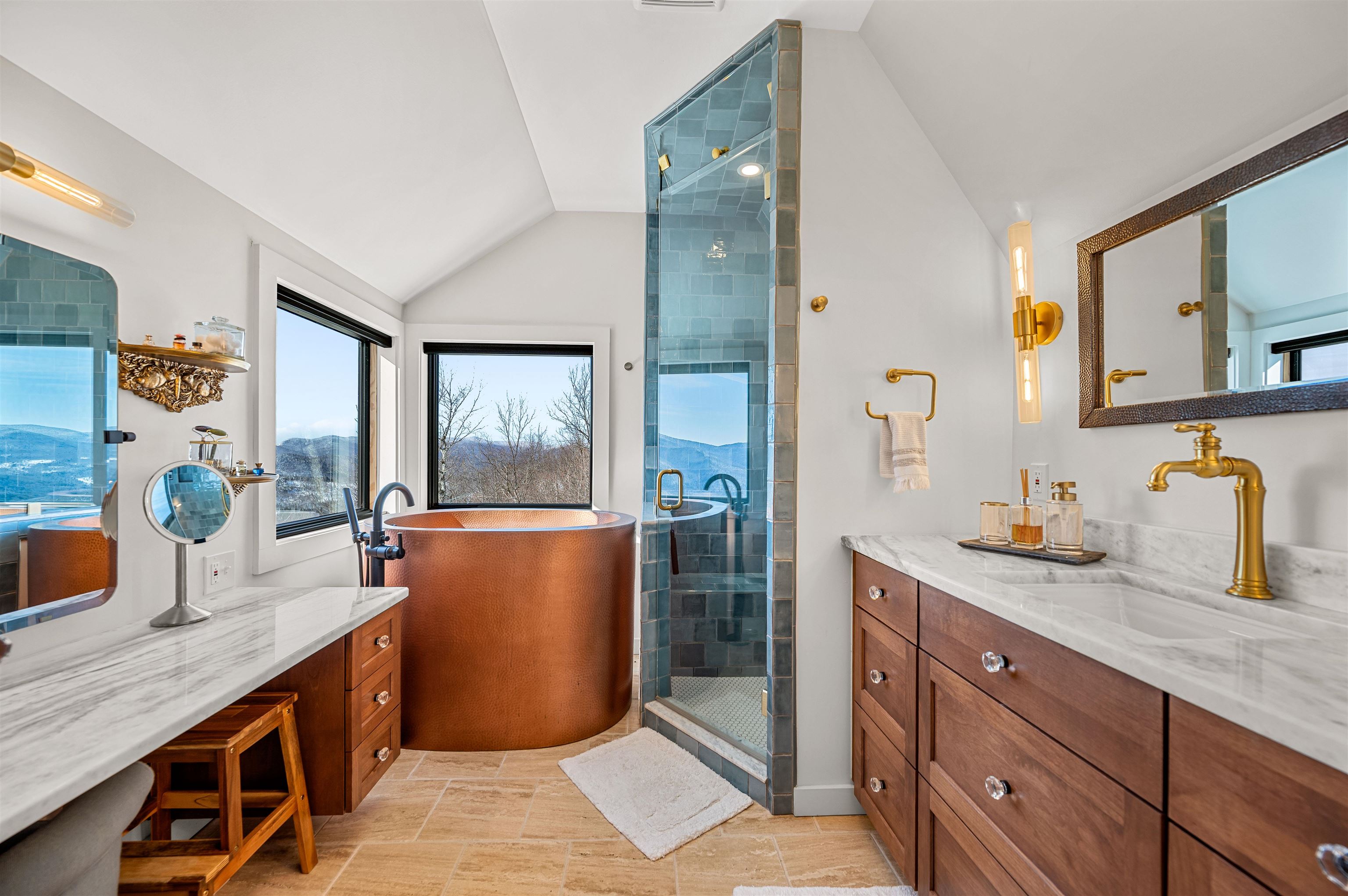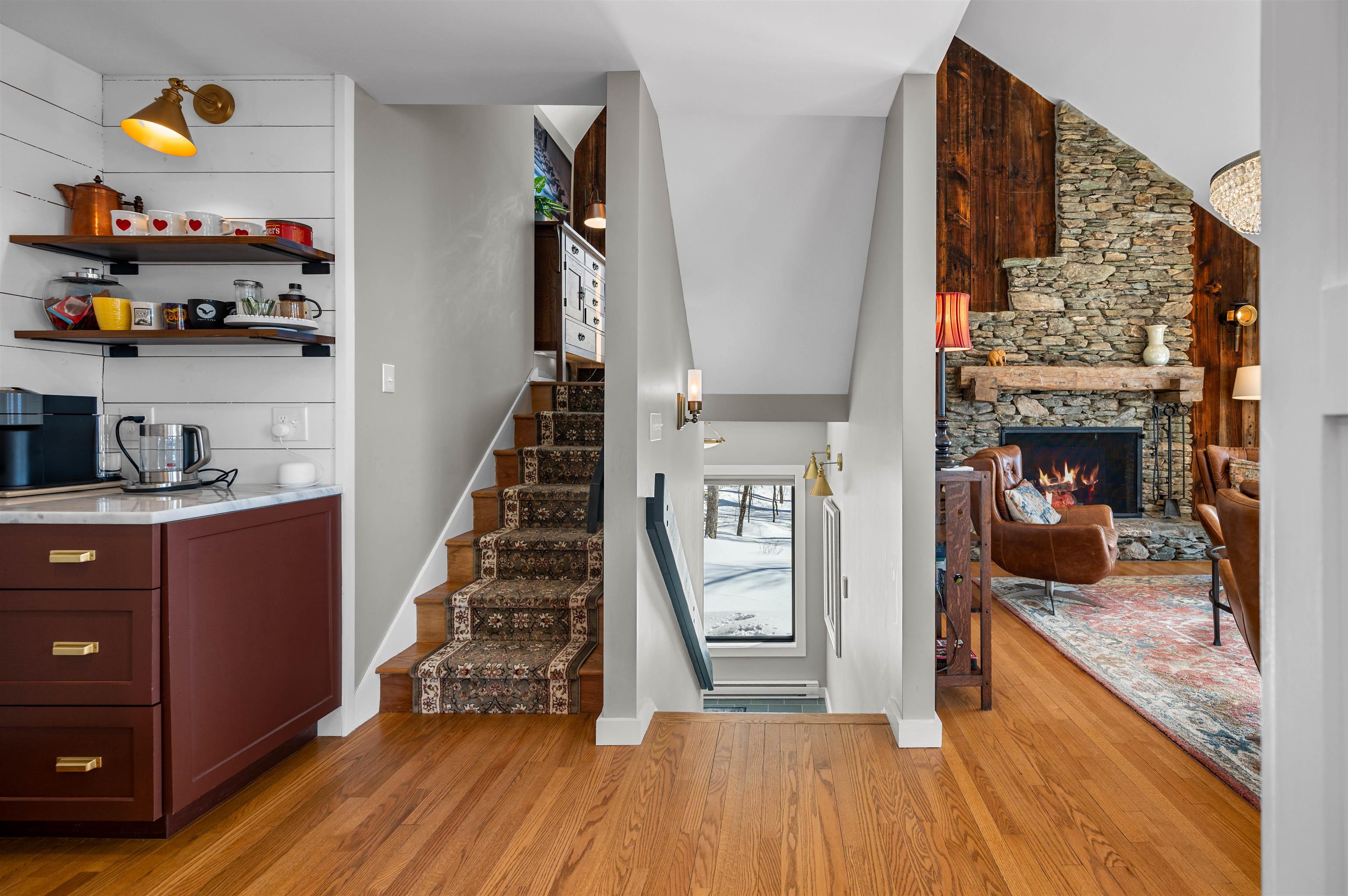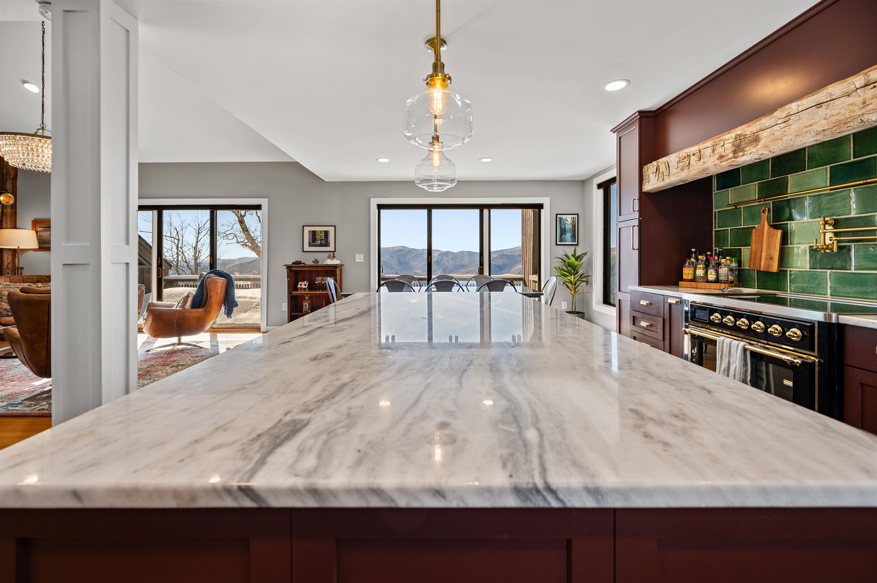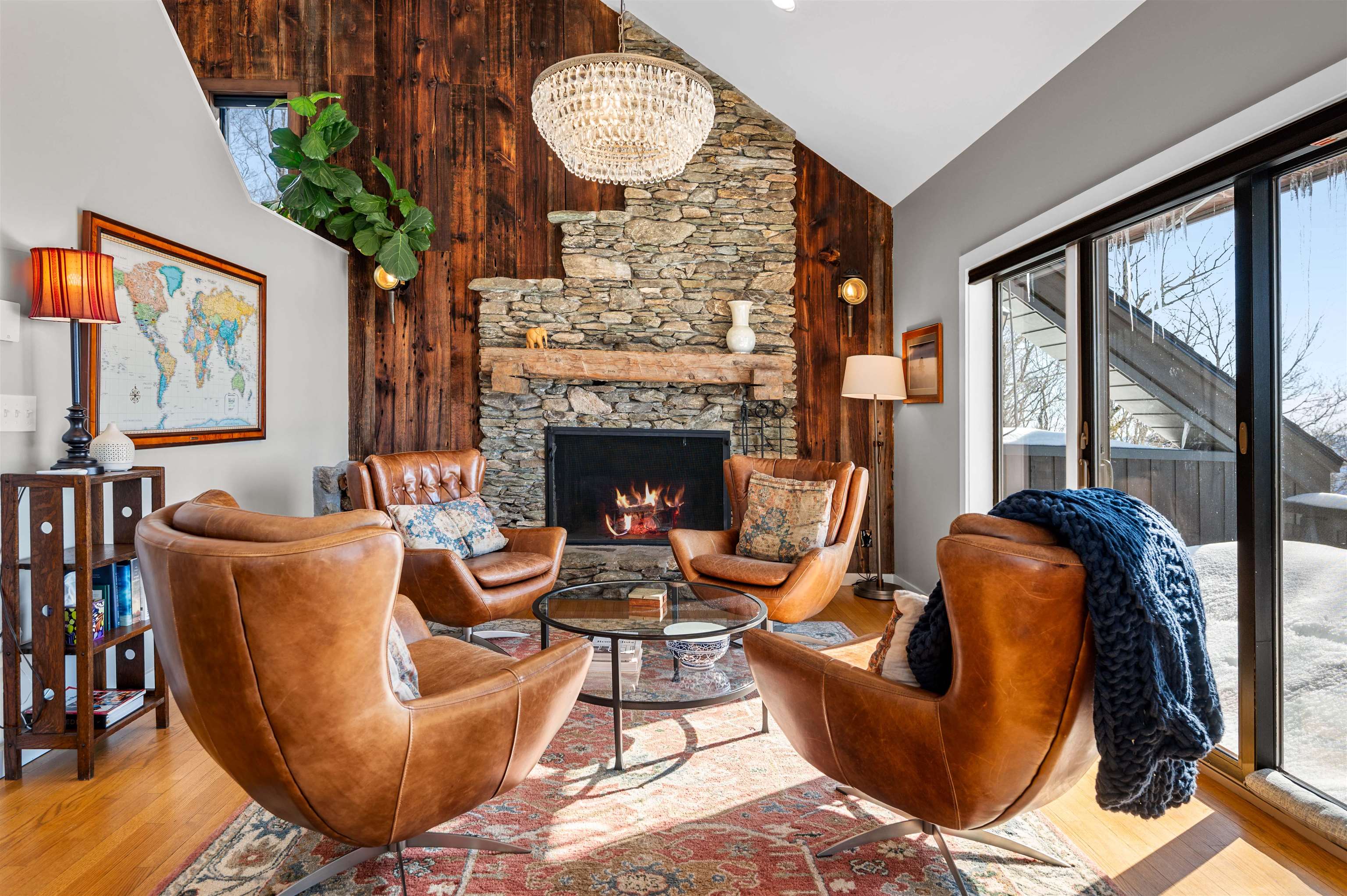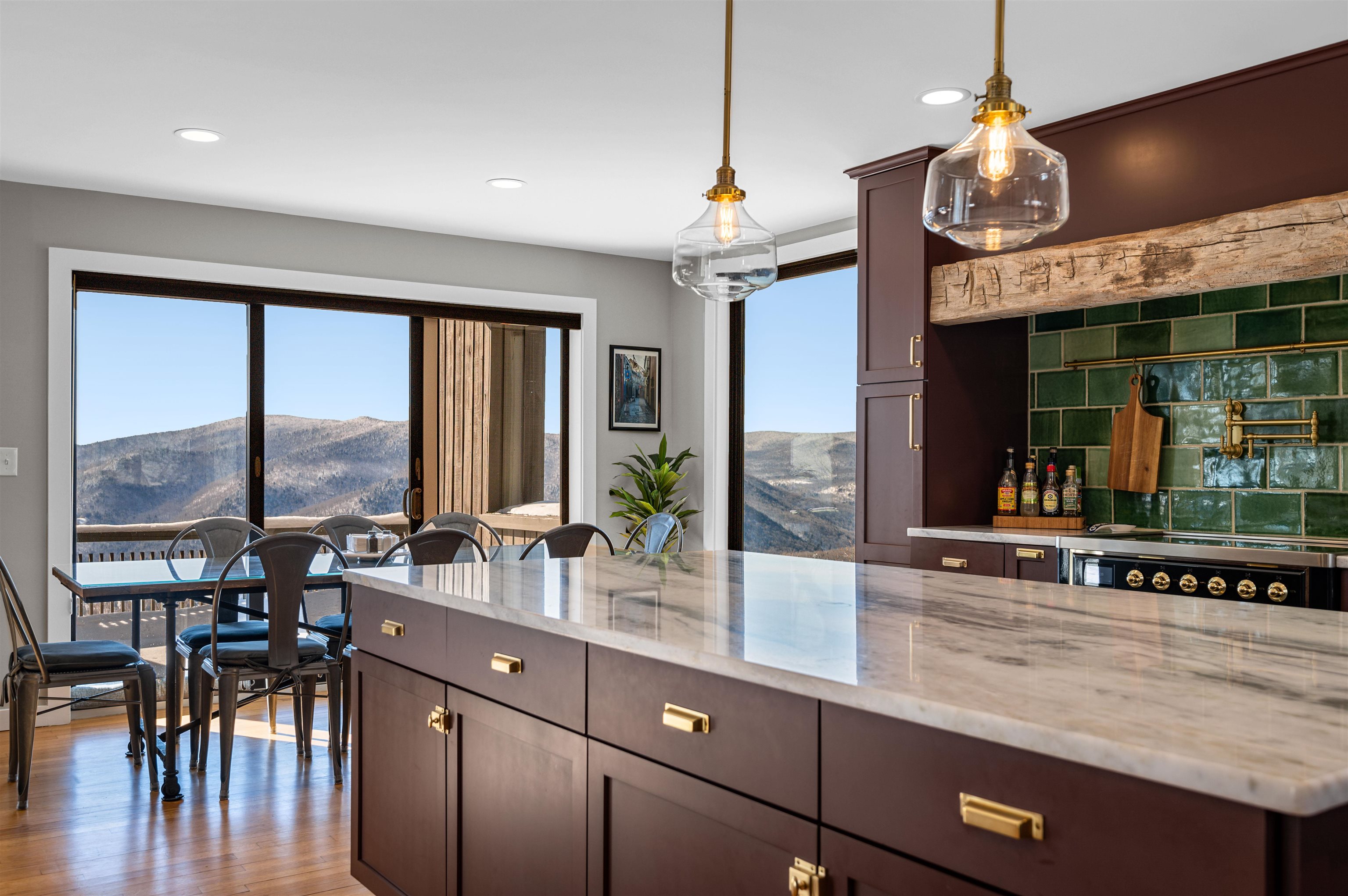 Where Mountain Living Meets Modern Design. Set on 7.3± private acres in the heart of Vermont’s premier ski country, this extraordinary retreat offers a rare blend of refined luxury and natural beauty. Thoughtfully renovated and expanded, the home showcases over 2, 500 finished square feet of curated living space with sweeping views of Killington and Pico, and seasonal glimpses of Camel’s Hump and Mount Mansfield. Designed for both comfort and sophistication, the heart of the home is a stunning chef’s kitchen featuring marble countertops, a custom oversized island, handcrafted DeVol tile, Rejuvenation hardware, brass accents, a pot filler, and high-end appliances including an Ilve Majestic induction range, Fisher & Paykel, and JennAir. The open living area is anchored by a striking stone fireplace and walls of glass that invite the outdoors in. The private primary suite addition is a true sanctuary, complete with a spacious walk-in closet, spa-inspired steam shower, and a Japanese copper air-jetted soaking tub perfectly positioned to take in the views. Extensive upgrades include new windows throughout, updated electrical and plumbing systems, foam insulation, new HVAC with four heat pumps, and Mysa smart thermostats for enhanced efficiency and comfort. Outdoor living is just as impressive, with multiple decks on all three levels—including a covered cooking deck—ideal for entertaining or quiet relaxation. A second entrance, detached one-car garage, standby whole house generator, updated landscaping with lighting, fire pit, and thoughtful design throughout complete this exceptional offering. This property offers flexibility as a luxury getaway, investment opportunity (off to a strong start with AirBnB rentals), or year-round residence. Ideally located near some of Vermont’s most celebrated destinations including Sugarbush and Killington, it also offers convenient access to the charming towns of Warren and Waitsfield. This home embodies the very best of Vermont living!