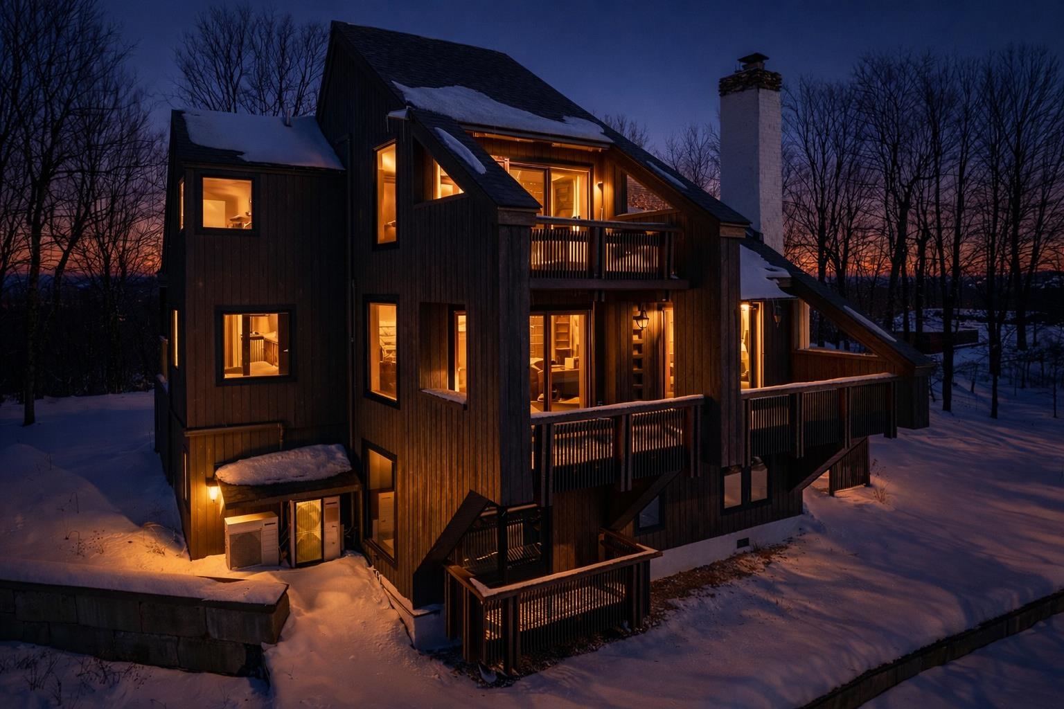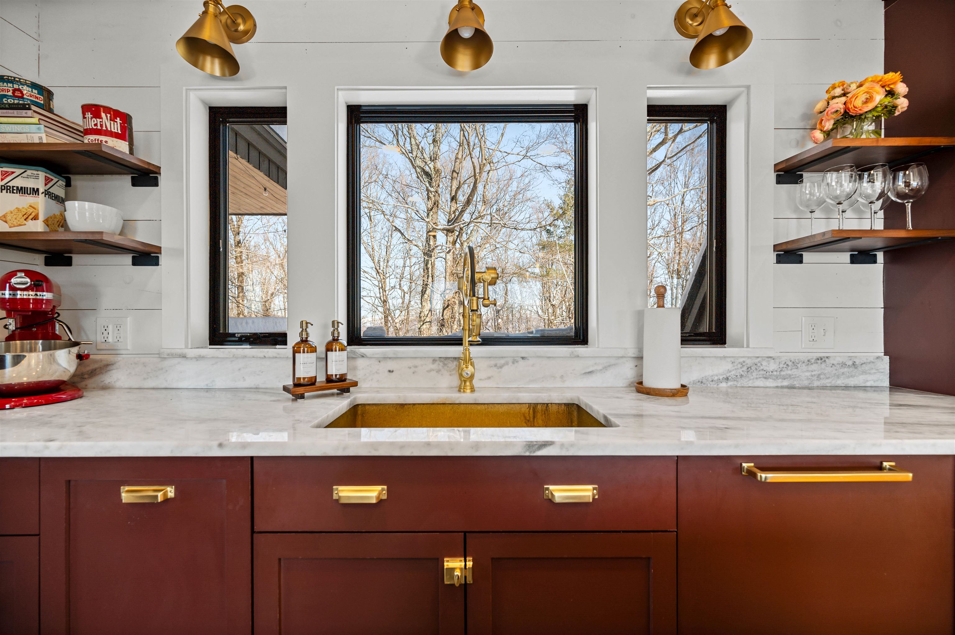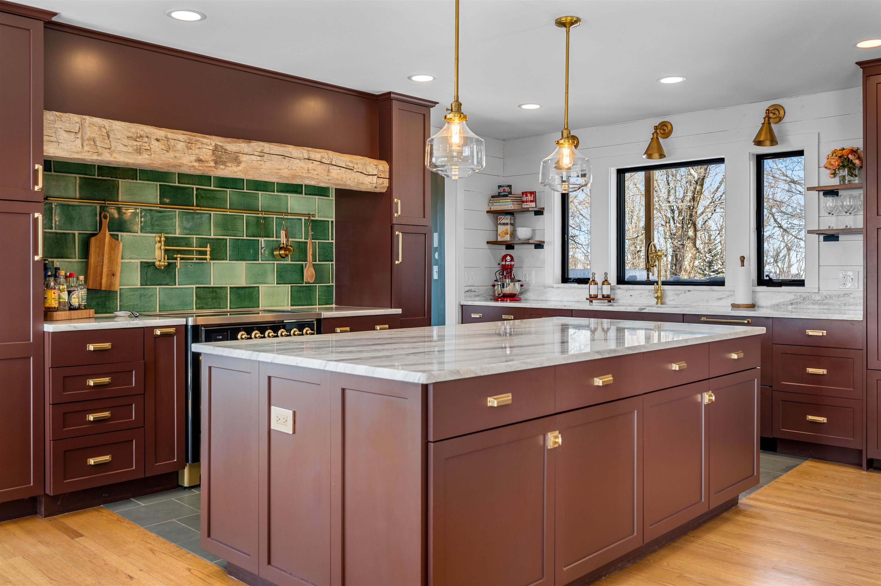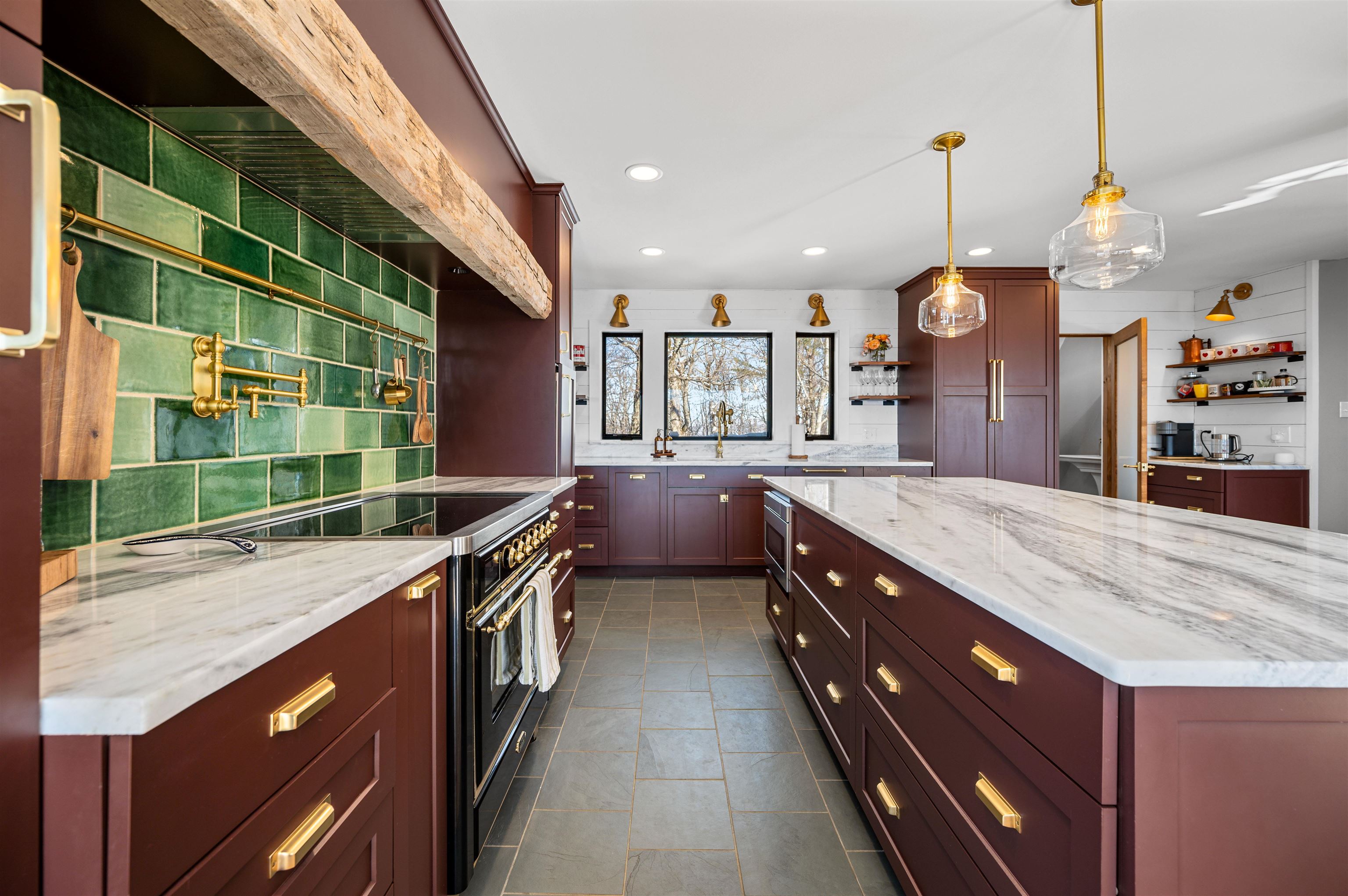 Where Mountain Living Meets Modern Design. Set on 7.3± private acres in the heart of Vermont’s premier ski country, this extraordinary retreat offers a rare blend of refined luxury and natural beauty. Thoughtfully renovated and expanded, the home showcases over 2, 500 finished square feet of curated living space with sweeping views of Killington and Pico, and seasonal glimpses of Camel’s Hump and Mount Mansfield. Designed for both comfort and sophistication, the heart of the home is a stunning chef’s kitchen featuring marble countertops, a custom oversized island, handcrafted DeVol tile, Rejuvenation hardware, brass accents, a pot filler, and high-end appliances including an Ilve Majestic induction range, Fisher & Paykel, and JennAir. The open living area is anchored by a striking stone fireplace and walls of glass that invite the outdoors in. The private primary suite addition is a true sanctuary, complete with a spacious walk-in closet, spa-inspired steam shower, and a Japanese copper air-jetted soaking tub perfectly positioned to take in the views. Extensive upgrades include new windows throughout, updated electrical and plumbing systems, foam insulation, new HVAC with four heat pumps, and Mysa smart thermostats for enhanced efficiency and comfort. Outdoor living is just as impressive, with multiple decks on all three levels—including a covered cooking deck—ideal for entertaining or quiet relaxation. A second entrance, detached one-car garage, standby whole house generator, updated landscaping with lighting, fire pit, and thoughtful design throughout complete this exceptional offering. This property offers flexibility as a luxury getaway, investment opportunity (off to a strong start with AirBnB rentals), or year-round residence. Ideally located near some of Vermont’s most celebrated destinations including Sugarbush and Killington, it also offers convenient access to the charming towns of Warren and Waitsfield. This home embodies the very best of Vermont living!