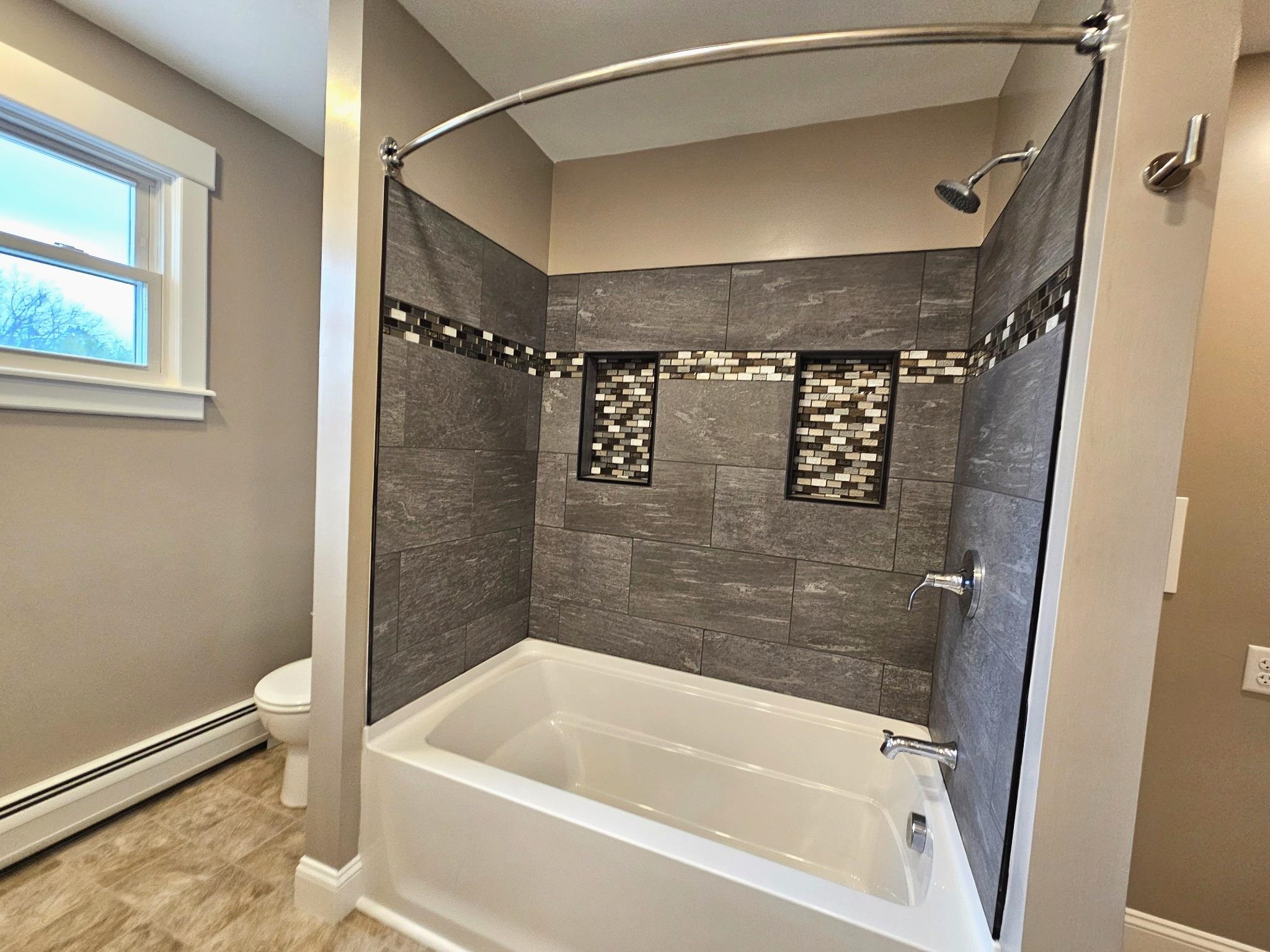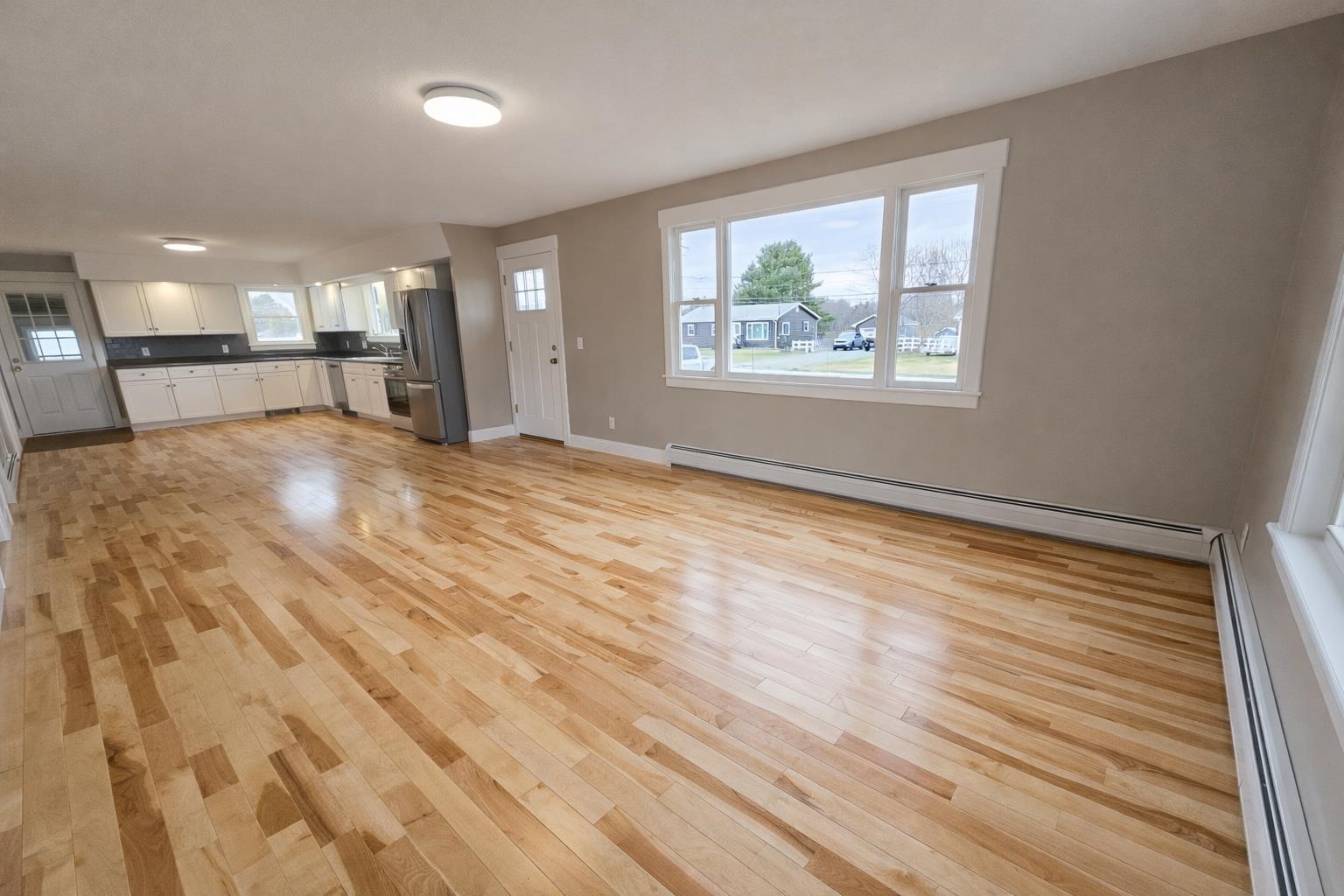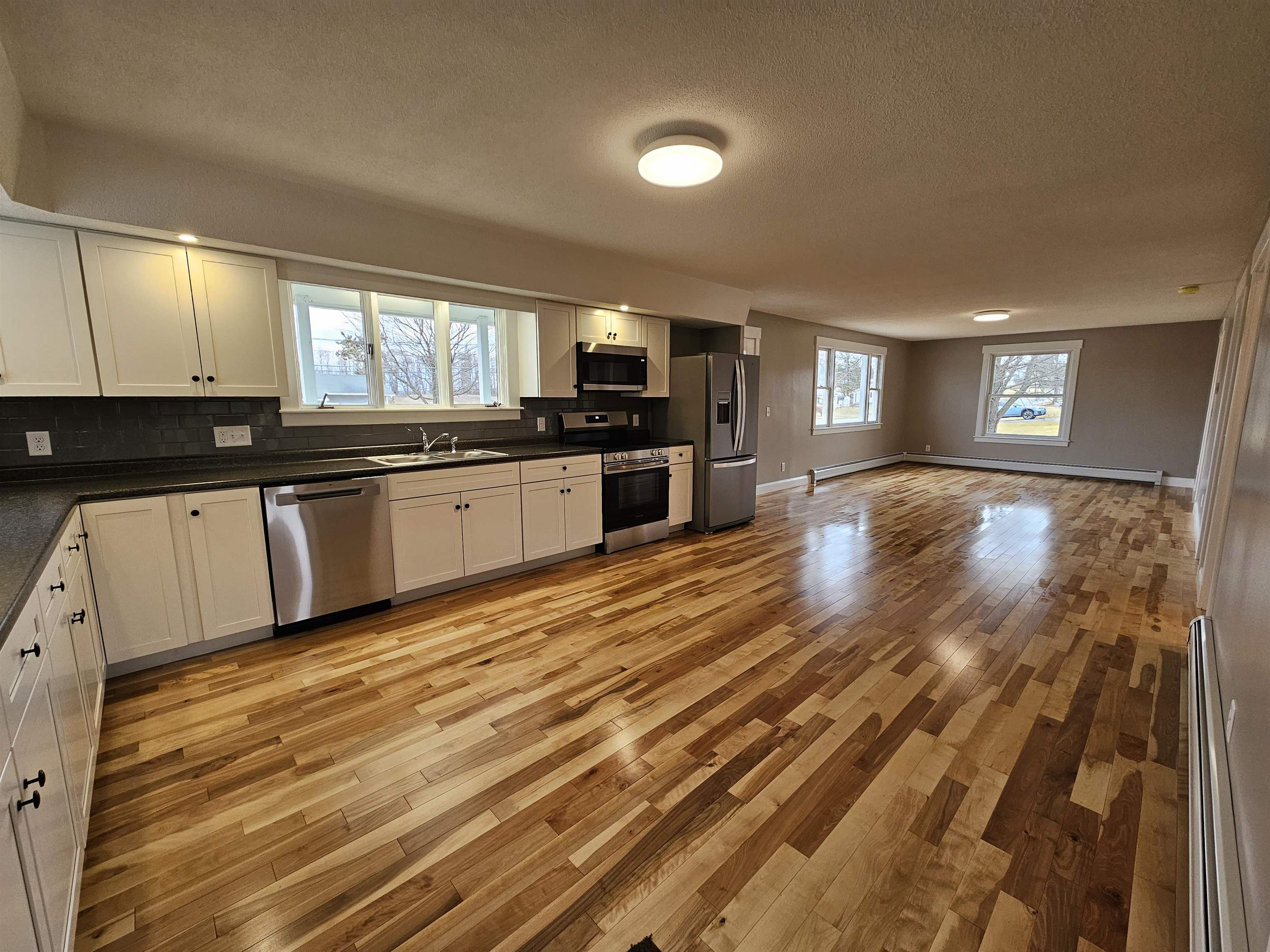 Fully renovated 3-bedroom ranch in the charming Village of Derby Line offering easy one-level living with a bright, open-concept floor plan. Features include a beautifully updated kitchen with tiled backsplash and stainless steel appliances, a spacious living room, and a full bath with double vanity, tiled shower, laundry area, and ample storage cabinetry. The home has been updated with new electrical and plumbing throughout. The unfinished lower level provides excellent space for storage, a workshop, or future finishing potential. Additional highlights include birch hardwood flooring, a 1-car attached garage, a 10’x14’ rear deck, covered front porch with access ramp, and an 8’x12’ detached shed. The home offers many vinyl replacement windows and is serviced by a newer oil-fired boiler with baseboard hot water heat, along with public water and private septic. The spacious backyard is ideal for outdoor enjoyment. Conveniently located in a desirable neighborhood just a short walk to Derby Elementary School, Baxter Park, the library, and other village amenities. Turnkey, efficient, and easy to maintain—this property offers excellent value in a sought-after location.