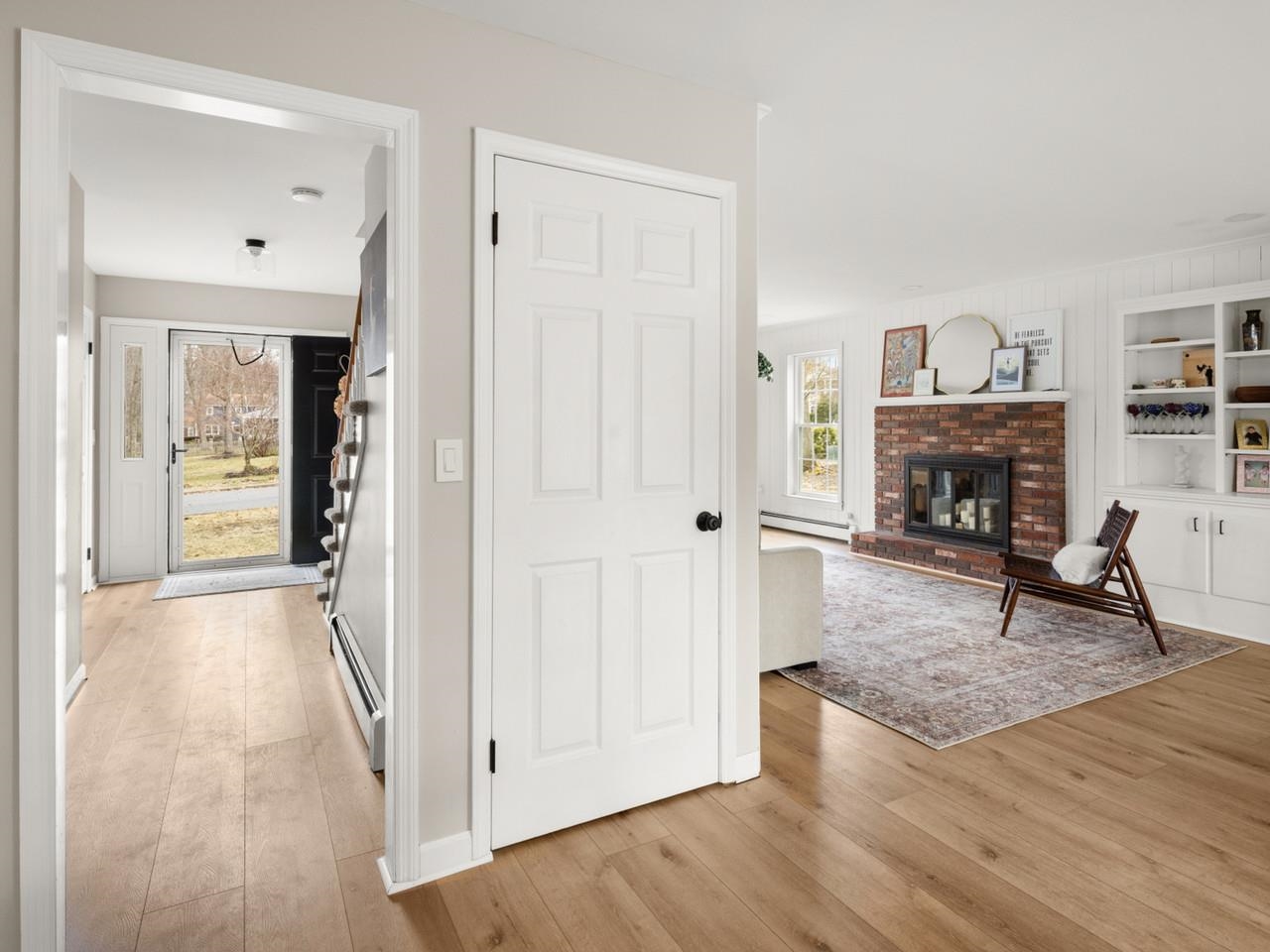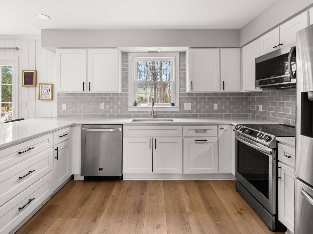 Nestled in one of Shelburne’s most established and sought-after neighborhoods, this beautifully renovated colonial offers 4 bedrooms and 2.5 baths with thoughtful updates throughout. The remodeled kitchen stands out with custom cabinetry, quartz countertops, energy-efficient stainless steel-appliances, and a stylish tiled backsplash, while new flooring spans both levels, complemented by fresh paint, new vinyl siding, and updated windows. The well-designed layout supports both comfortable daily living and effortless entertaining, with abundant storage and generously sized closets throughout. Step outside to a spacious back deck overlooking a private yard framed by mature trees, creating a peaceful outdoor setting. Ideally located just minutes from local amenities, this home combines modern updates with a prime neighborhood setting. Subject to Relocation Clause!