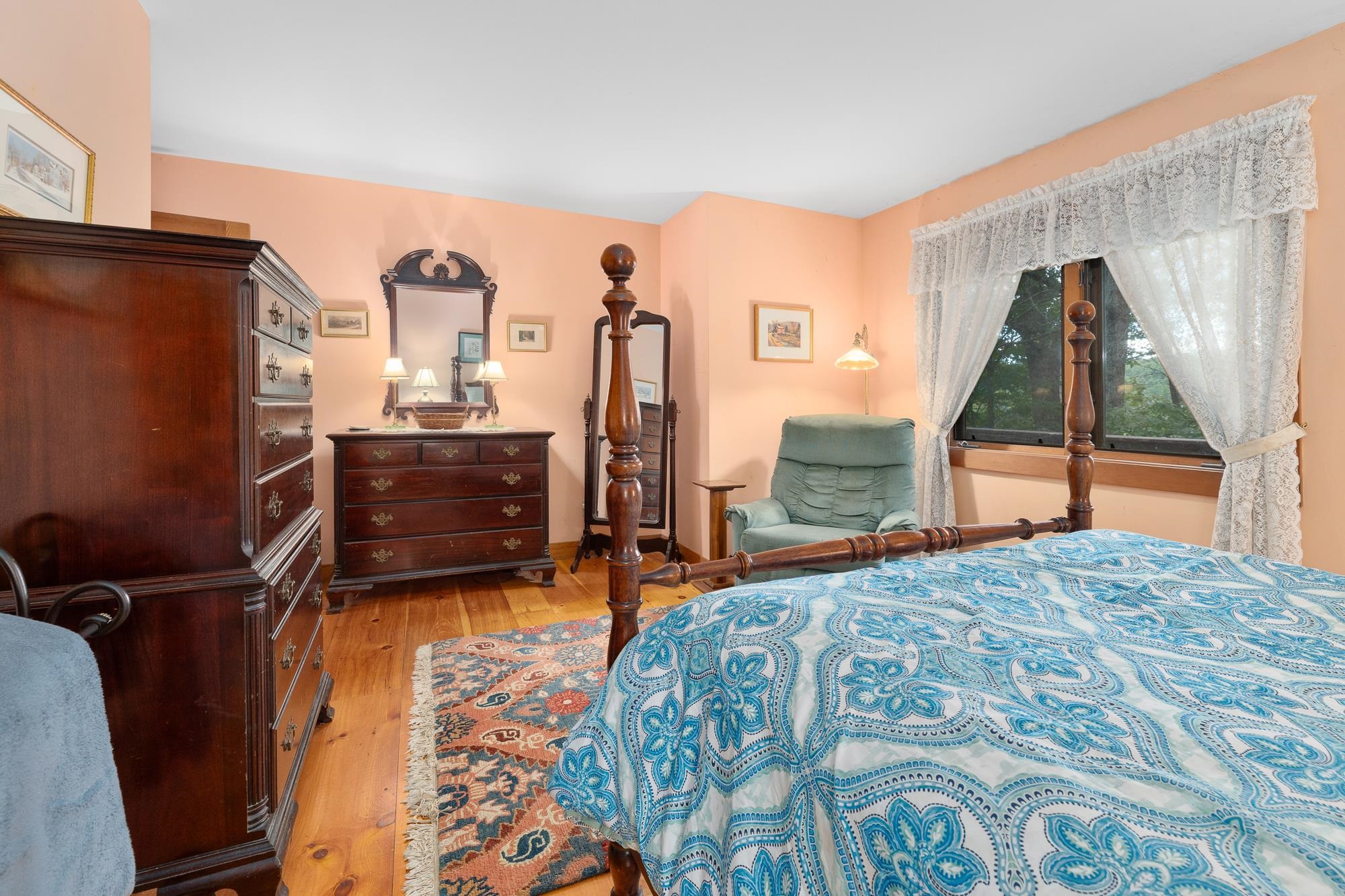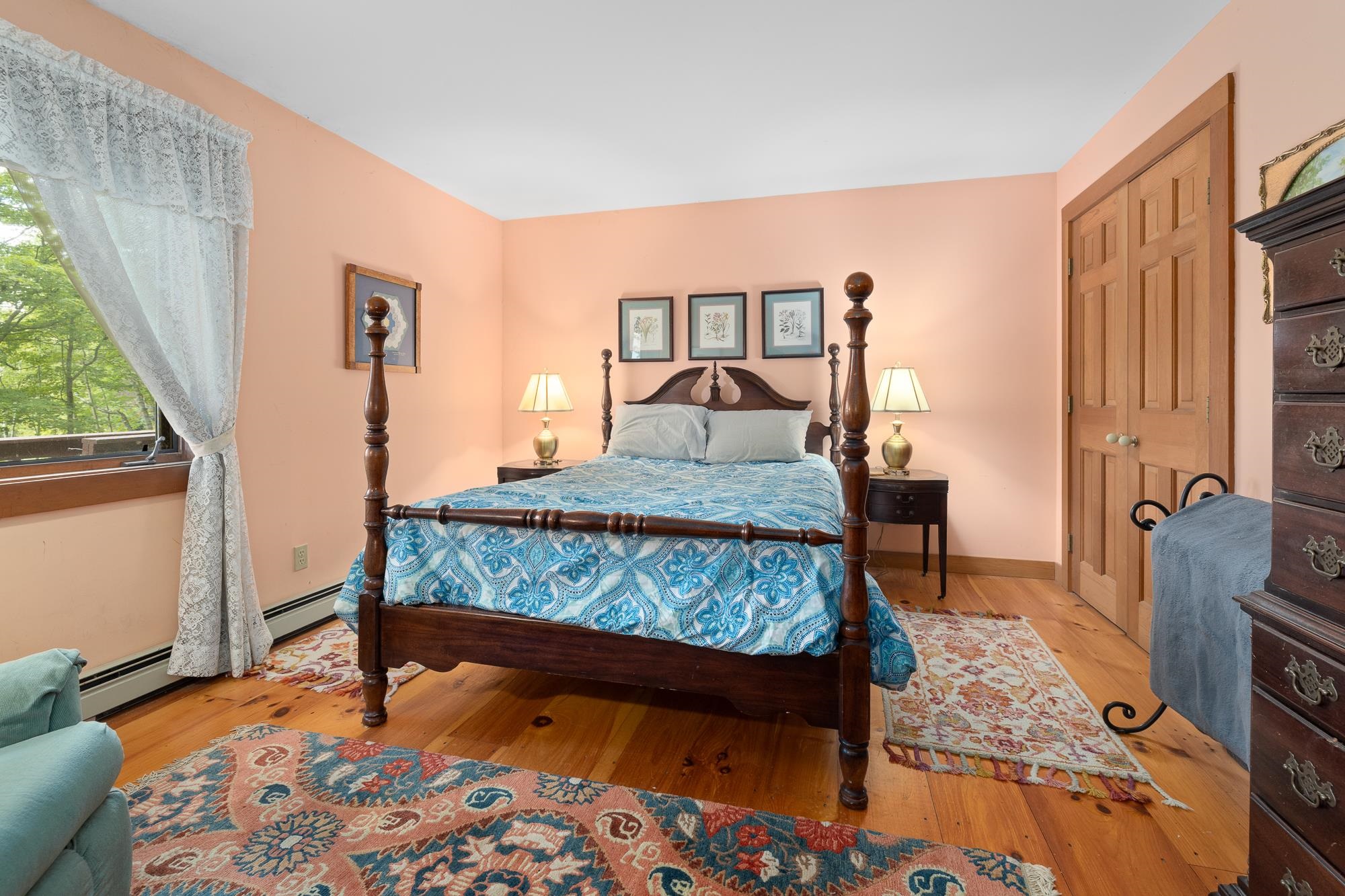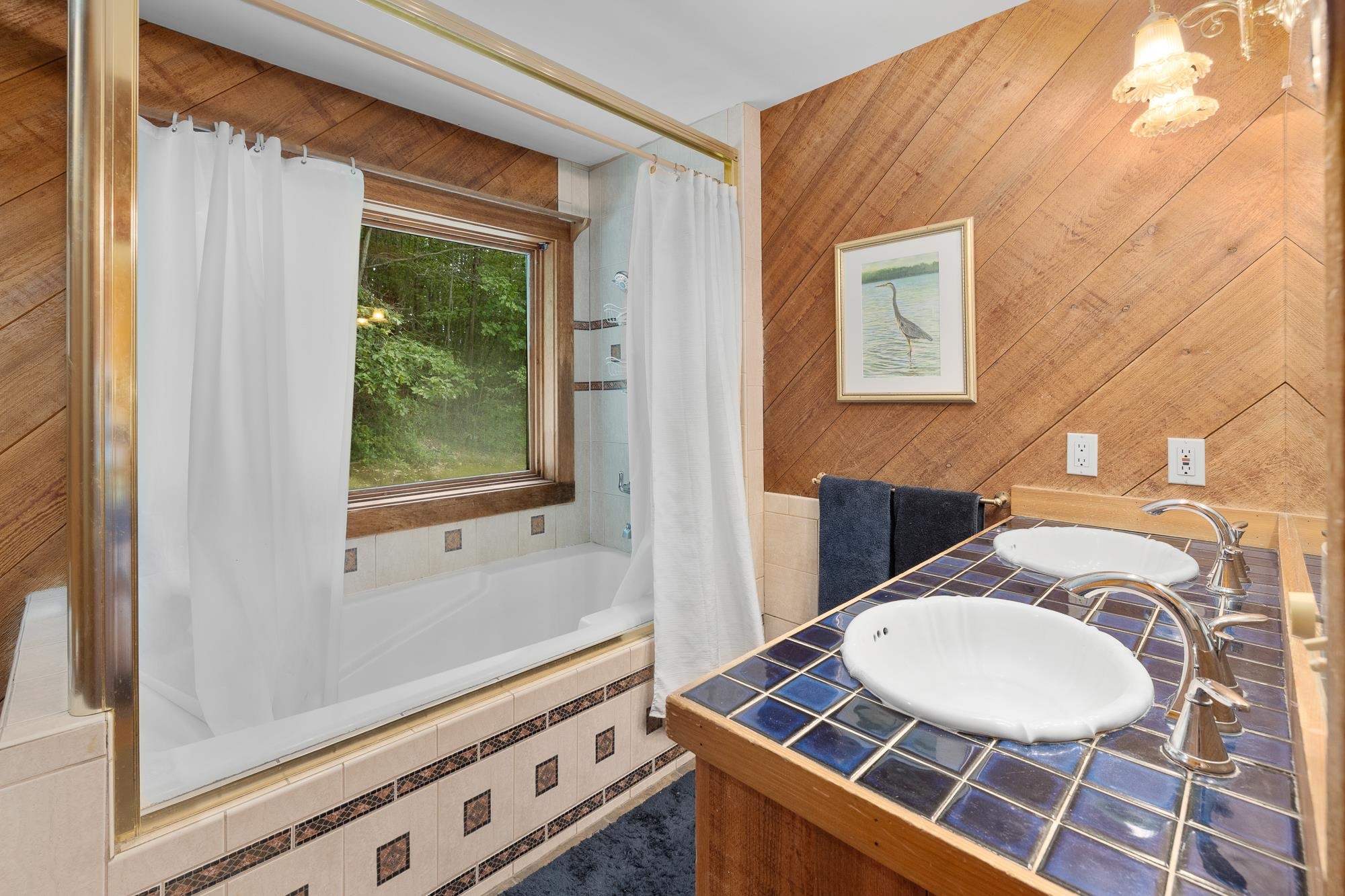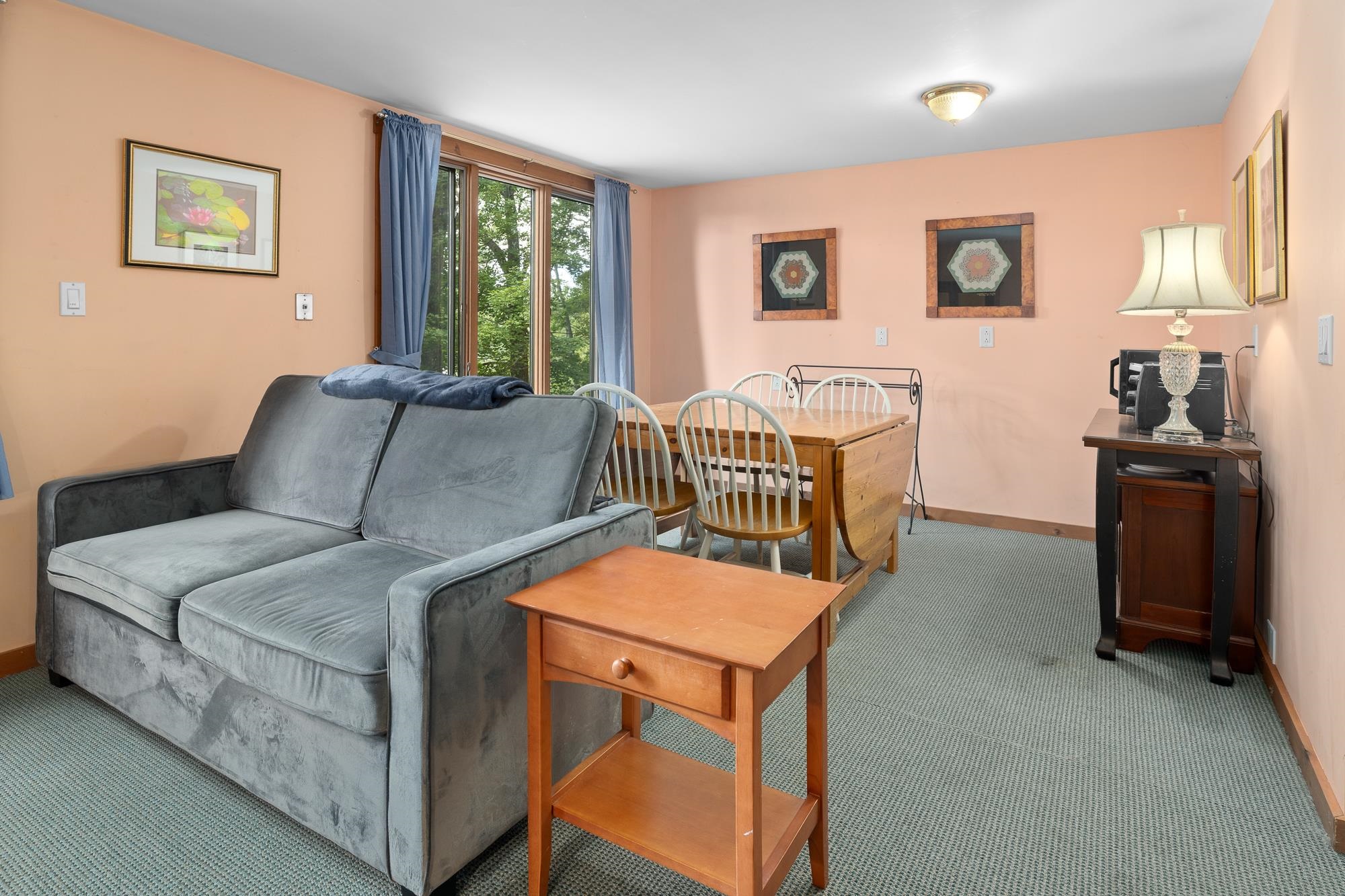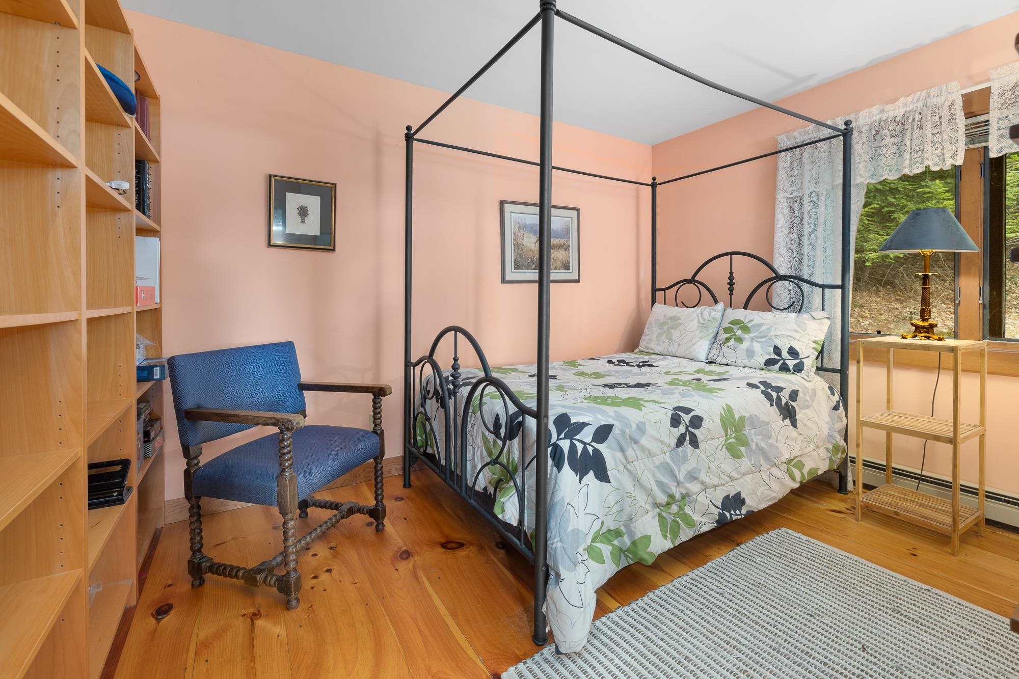 Set high on a south-facing hillside in Hartford, Vermont—just fifteen minutes from Dartmouth College and downtown Hanover, yet a world away—132 Loveland Hill Road is a striking contemporary defined by its dramatic A-frame glass curtain wall. Floor-to-ceiling glazing fills the cathedral-ceilinged living space with natural light and frames long views across the surrounding woodland, with the peak of Mount Ascutney rising above the trees. The main level centers on an expansive 27' x 27' living and dining area where a full wall of glass brings the outdoors in, while a wood-burning fireplace and hearth create a natural focal point for gathering. Two additional bedrooms and a full bath are also located on this level. Upstairs, the primary suite offers a generously proportioned retreat with a walk-in closet and full bath. On the lower level, a nearly 30-foot finished family room opens directly to grade and includes its own full bath, providing flexible space for recreation, guests, or work from home needs. A self-contained 533-square-foot apartment above the garage—complete with bedroom, bath, living room, and kitchen—adds versatility for guest accommodations, rental income, or a private office. Extensive wraparound decking surrounds the living space, creating multiple places to enjoy the natural setting. Sited on 10.1 private wooded acres and accessed via a shared driveway, the 2, 663-square-foot home offers dramatic architecture, abundant natural light, and an exceptional Upper Valley location with the opportunity to make it your own.
