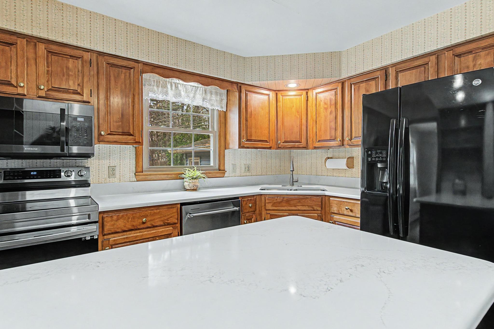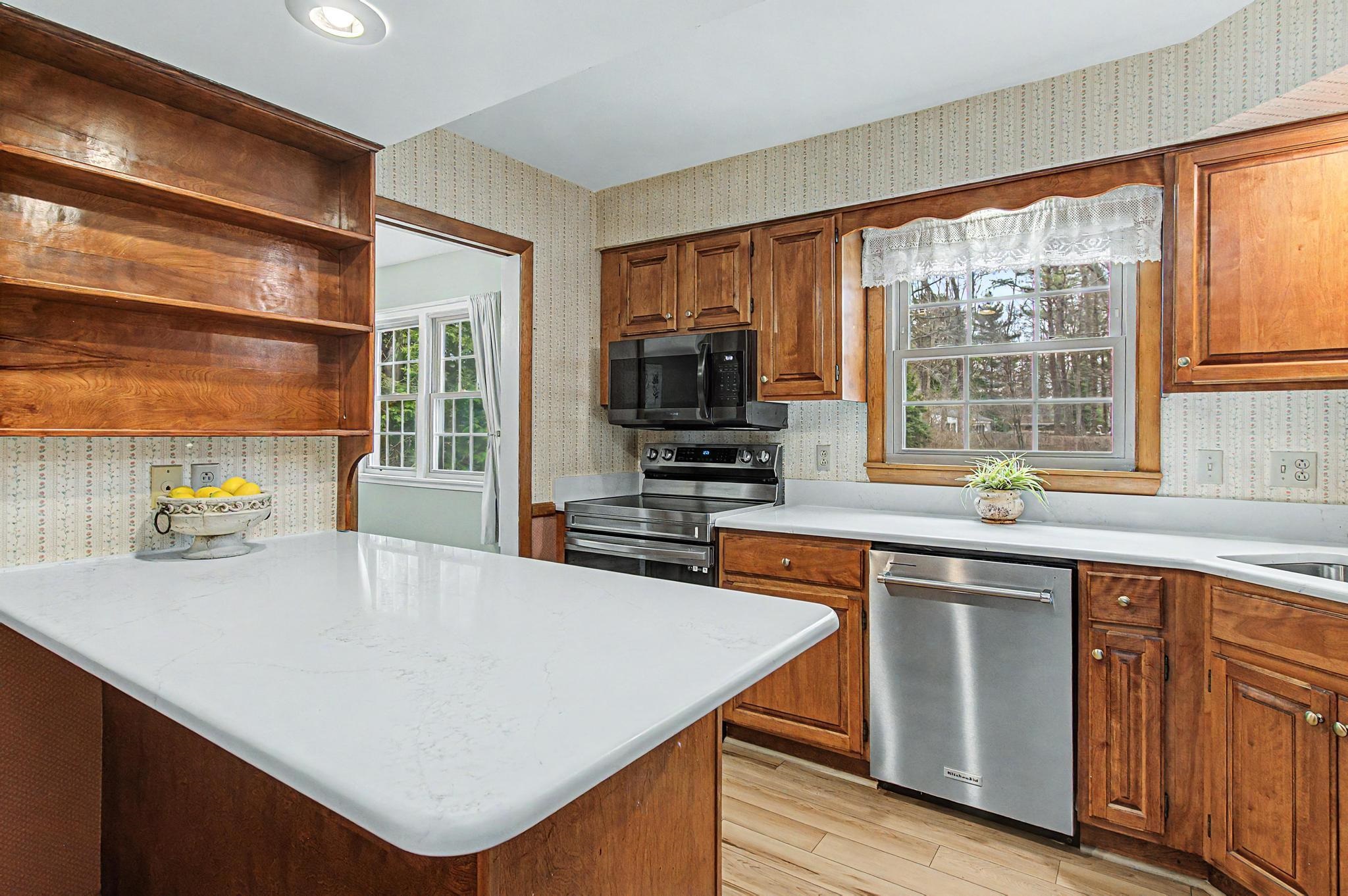 Charming tri-level home with inviting curb appeal and solid construction, offering the benefits of a well-built and thoughtfully maintained property! Enter through the front door into a bright living room, highlighted by a row of four west-facing windows that flood the space with natural light. A cozy brick fireplace creates a warm focal point in the living room and bamboo flooring flows seamlessly into the dining room. The kitchen offers great functionality with quartz countertops, a built-in peninsula with open shelving, and abundant cabinetry to meet all your storage needs. Part of the appeal of a tri-level is the unique architecture -- go up a few stairs to three comfortable bedrooms and a full bath with conveniently located laundry. Down a few steps from the main living level, you'll find an additional bedroom and a ¾ bath. The highlight of the lower level is a spacious family room with large windows, vaulted ceilings and wonderful acoustics. A door provides direct access to the yard, while a separate side entry leads to a practical mudroom area with space for coats and storage. Additional highlights include a one-car garage and a pleasant backyard setting, perfect for relaxing or entertaining. Ideally situated in a desirable South Burlington neighborhood close to the elementary school, parks, shopping, UVM Medical Center and everyday amenities making it a wonderful place to call home.