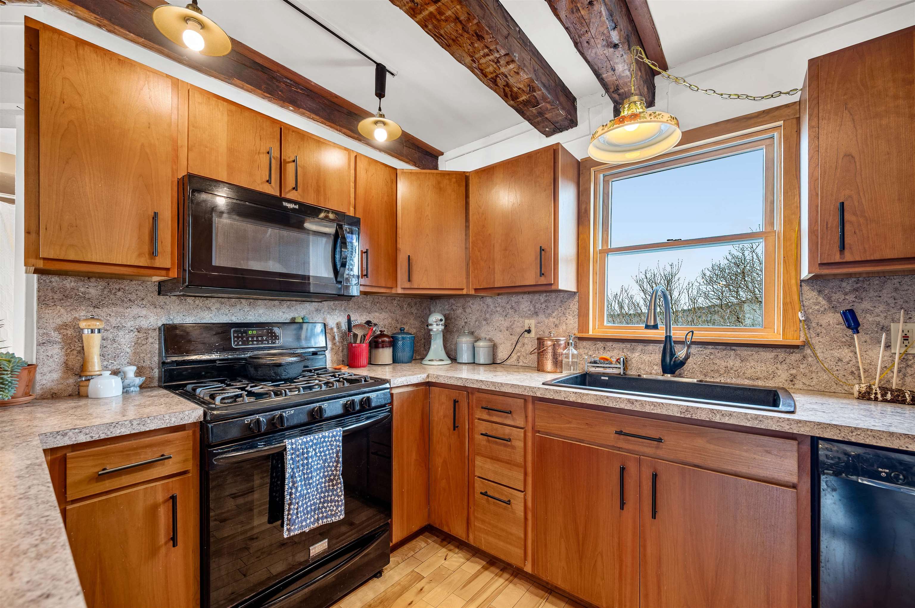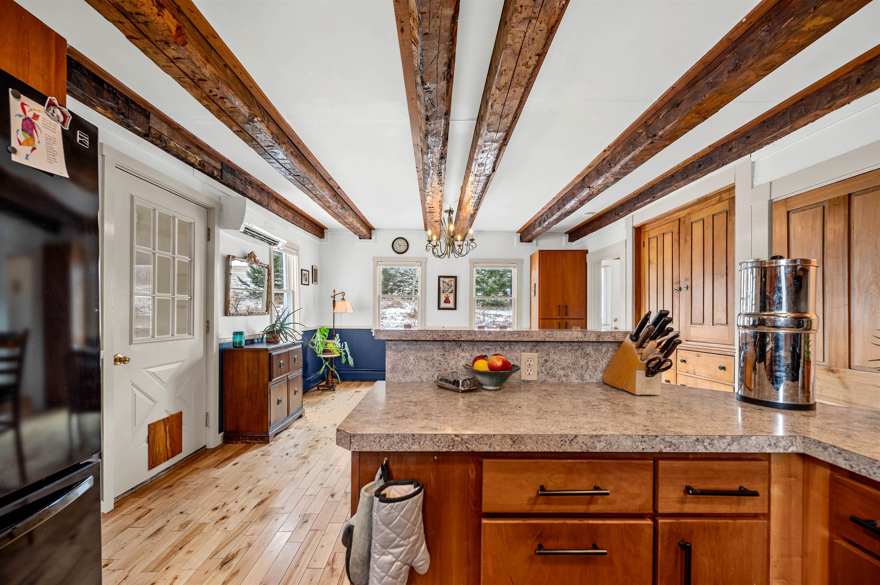 The distant mountains softly reflecting back in the still pond waters are a view you’ll surely never tire of. Here at 57 Manning Road you’ll find an Edenic landscape of woods, fields, hills, and mountains all in perfect harmony. This well-loved and adored 1880’s Cape sits in the middle of this country escape while only being a short ten minute drive into Barre City and beyond. In warmer months, you’ll stay busy tending to the perennial flower beds, floating on the pond, playing in the fields, or kicking back and taking it all in from the wooden deck. Stepping in from outside, is the mudroom of your dreams. With tiled floors and ample closet space, this could even be used as an exercise room, extra play space, sunroom…you name it. Hand-hewn wood beams and hardwood floors throughout the first floor create a cozy and comfortable feeling the moment you cross the threshold. While the updated kitchen and full bathroom are great improvements to note, the real prize is the living room. Here, the Hearthstone wood stove brings warmth and ambiance to the sun-filled space and views of the mountains outside are captivating no matter the season. Upstairs, you’ll find the three bedrooms and a convenient half bathroom. In this case the old adage, “nothing beats new” proves untrue as the old world charm here reigns supreme. Come to the open house on Saturday 4/11 from 1-4pm or schedule your private viewing today.