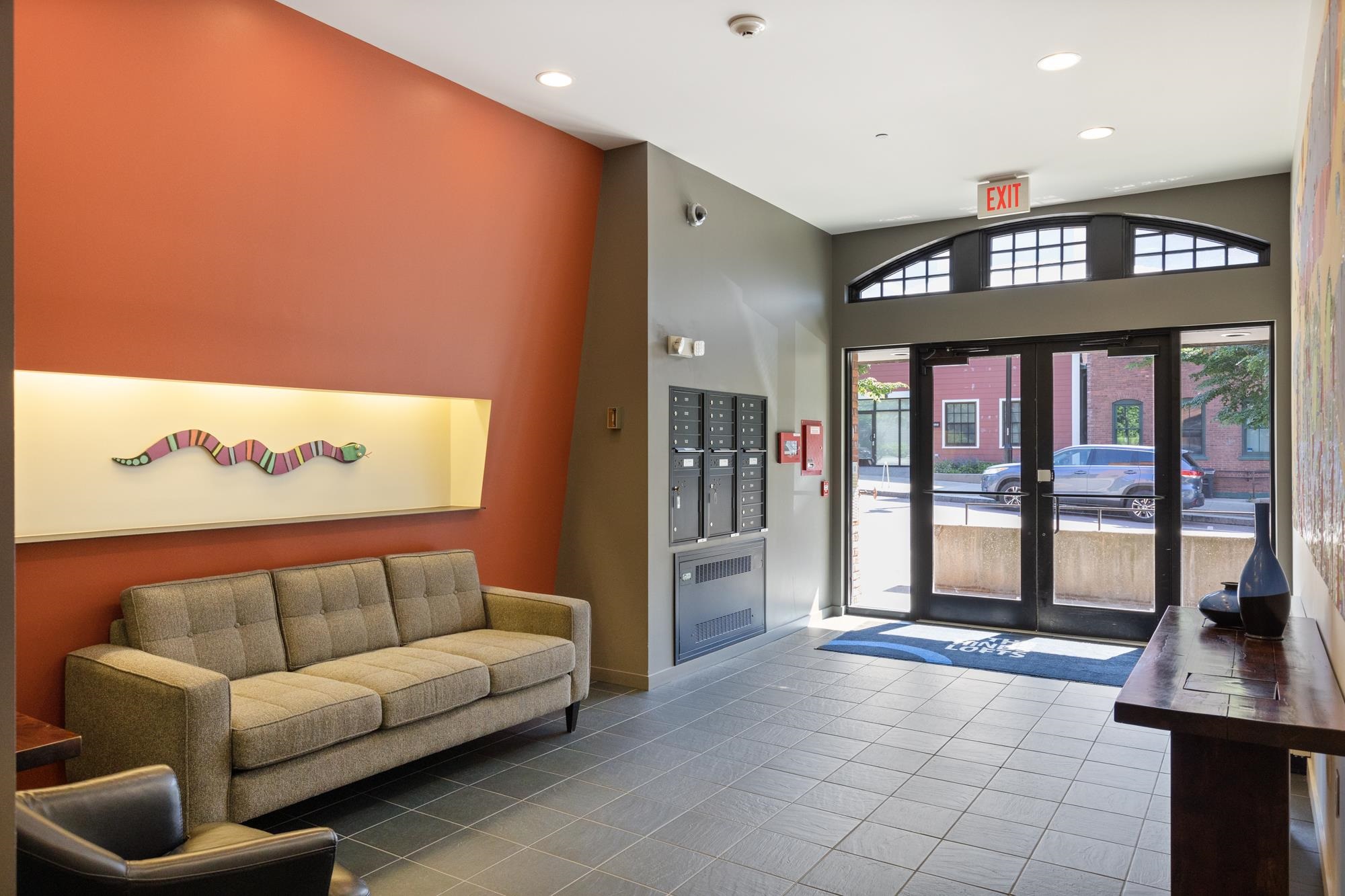 Contemporary style meets historic character at Hinds Lofts in the heart of downtown Burlington. This rare and spacious 1-bedroom condo offers exceptional storage and modern upgrades. Inside, polished concrete floors, rich wood cabinetry, and warm modern finishes create a space that feels clean, grounded, and quietly cool. The kitchen offers both style and function with quartz countertops, bar seating, tile and glass backsplash, gas range, and a walk-in pantry with additional shelving and microwave space. The open living area flexes to fit the way you actually live, with room to relax, dine, work, and host without feeling crowded. The oversized bedroom fits a king bed and includes a walk-in closet, while the full bath features tile finishes and a frameless glass shower. In-unit laundry includes side-by-side washer and dryer with additional storage. Recent upgrades include a Nest thermostat, water filtration system, custom backsplash, blackout shades, and a newer high-efficiency heat pump with central air. Life at Hinds Lofts includes a secure lobby, private storage, and a shared rooftop terrace and lounge where sunsets over Lake Champlain steal the show. Step outside to Church Street, restaurants, the Flynn, City Market, the waterfront, bike path, UVM, and Champlain College. This is low-maintenance condo living with style, substance, and in one of Burlington’s most walkable locations.
