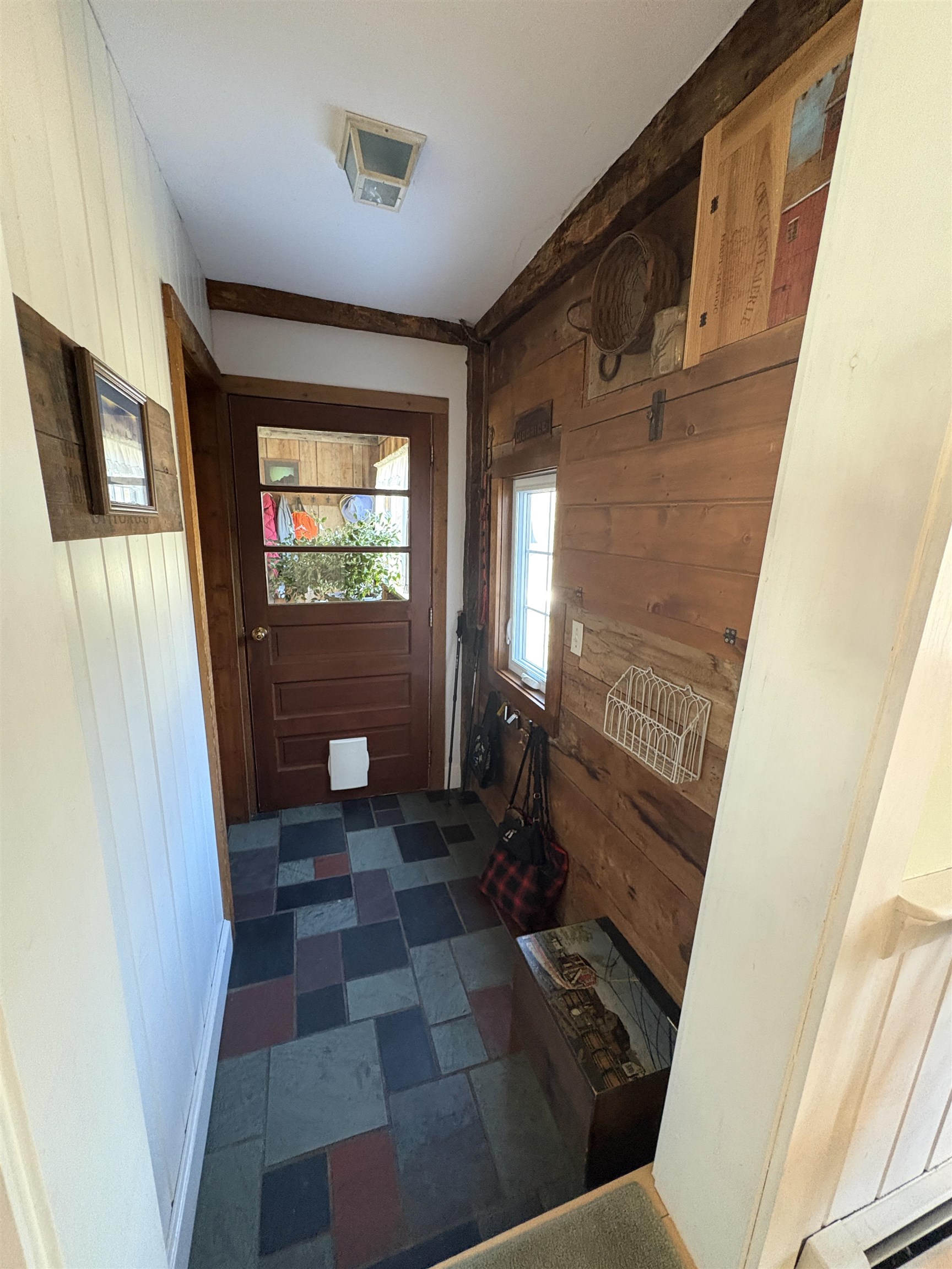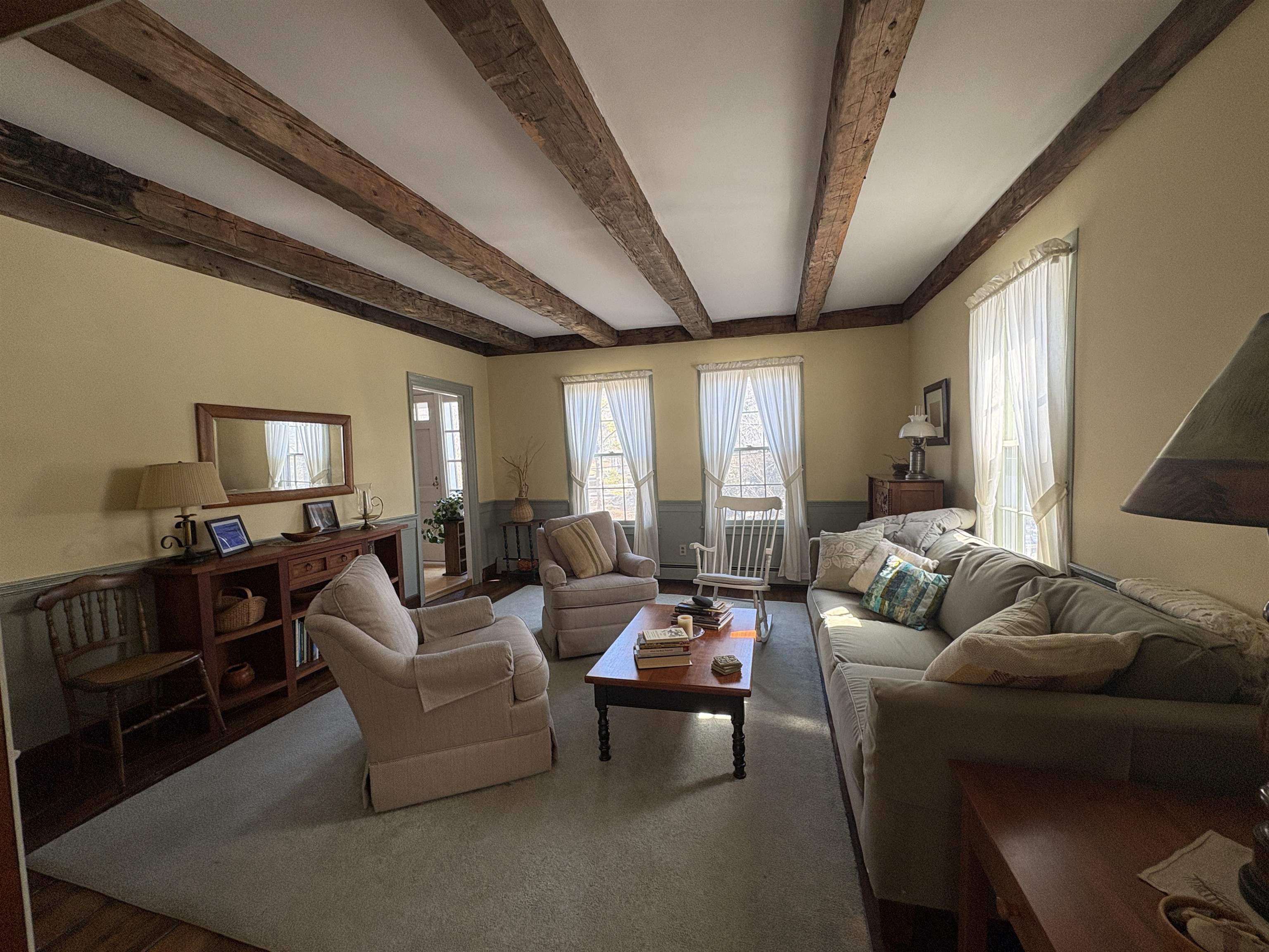 This lovingly restored home is nestled in the quaint Pond Village community of Brookfield, VT. The property has had the same owners for the last 48 years. A stunning blend of old and new, the stewards of this home meticulously preserved timeless beams, wide pine floors and authentic barn walls, while making modern updates. Enter into the convenient mudroom before stepping into the warm and open kitchen/dining room with large woodstove and brick hearth. Character abounds in the living room with beautiful wide pine floors and exposed beams, den, half bath, and sunny office, which round out the first floor. Upstairs you will find four bedrooms and a full bath. The attached barn provides plenty of storage space and room for one car, or workshop area. Step onto the back deck with direct access off the kitchen, and enjoy the privacy of the back yard. This enchanting space is adorned with lovely stonewalls and perennials. Just down the road from Sunset Lake, the historic Brookfield Floating Bridge, and the newly renovated Green Trails Inn and Pond Village Pub. Properties in this community do not come on the market often, don't miss your chance! Being Sold "As Is"
