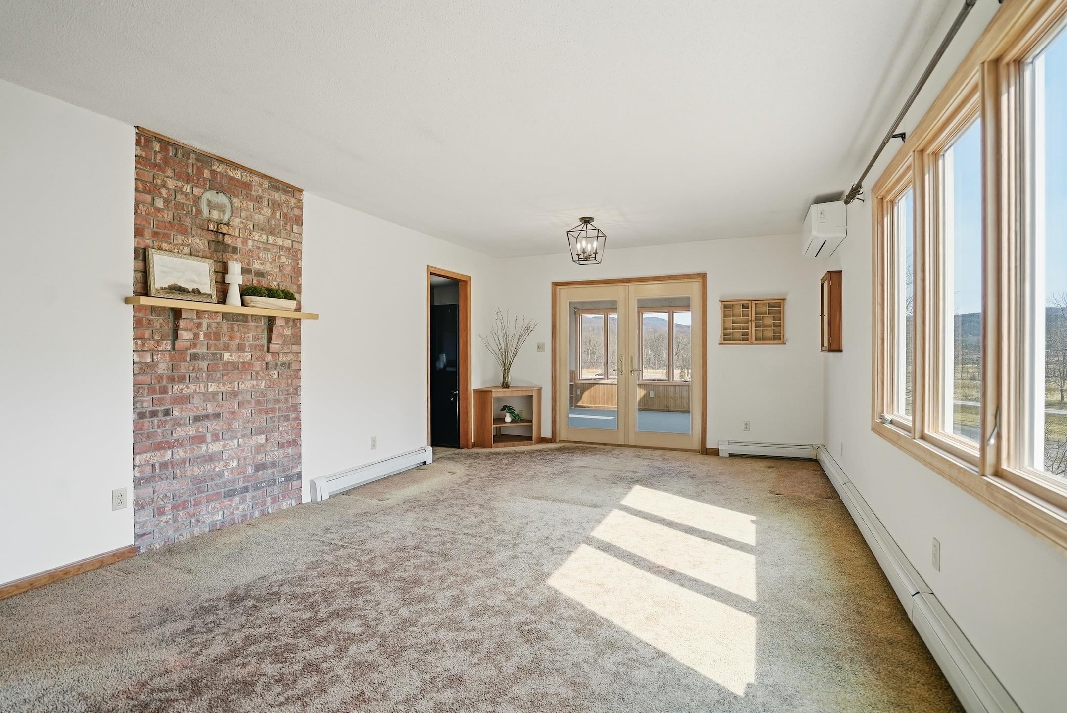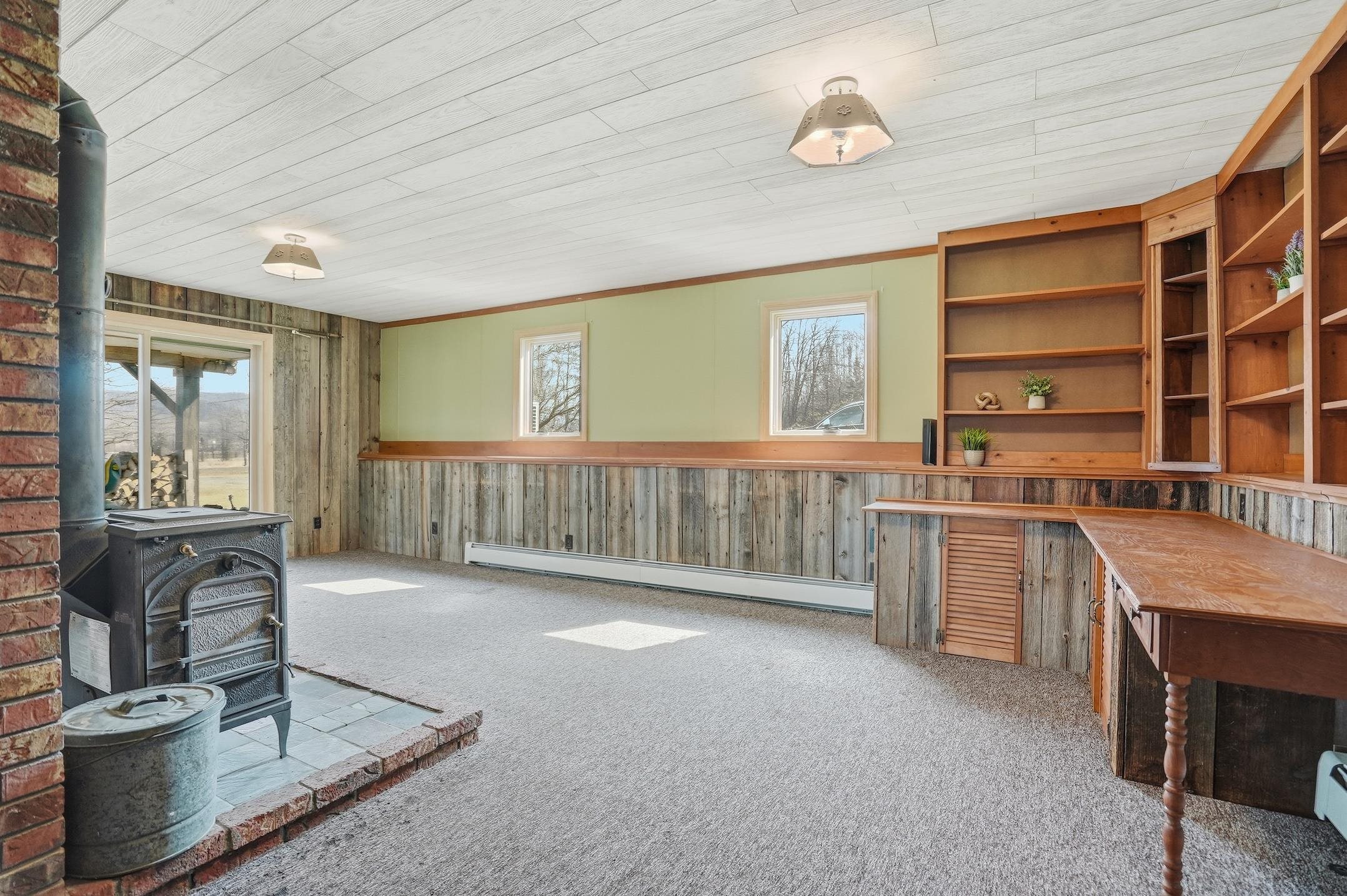 Set on 28 acres in a picturesque Hinesburg setting, this wonderful country property offers sweeping mountain and pastoral views, privacy, & timeless Vermont charm. Perennial gardens and a generous yard surround the 3-bedroom, 2-bath home, creating a serene retreat close to village amenities. Open land, trails and wooded acreage make it ideal for horses. The inviting country kitchen with center island flows into the open family and dining areas, perfect for everyday living & entertaining. The true showpiece of the home is the stunning sunroom, wrapped in walls of windows that capture breathtaking mountain views in every season & fill the space with natural light. This exceptional room opens to a spacious deck, creating a seamless indoor-outdoor connection for al fresco dining, entertaining, and quiet moments overlooking the landscape. The expansive walkout lower level includes two bedrooms, a comfortable family room, and a wood stove that adds warmth and ambiance. The second floor offers a dedicated laundry room and office or study, providing flexibility for remote work or creative pursuits. Custom built-ins throughout the home add character and thoughtful storage. A third-level basement provides excellent dry storage and a large workshop. The detached two-car garage includes a workbench and an upper loft, ideal for additional storage, hobbies, or creative use with endless possibilities. Enjoy endless outdoor recreation nearby, including hiking, biking, and trails, with Lake Iroquois & Lake Champlain close by. Conveniently located near schools, services, and amenities, and just minutes to Downtown Burlington, the airport, UVM Medical Center, and area colleges. A rare opportunity for Vermont country living with exceptional convenience.