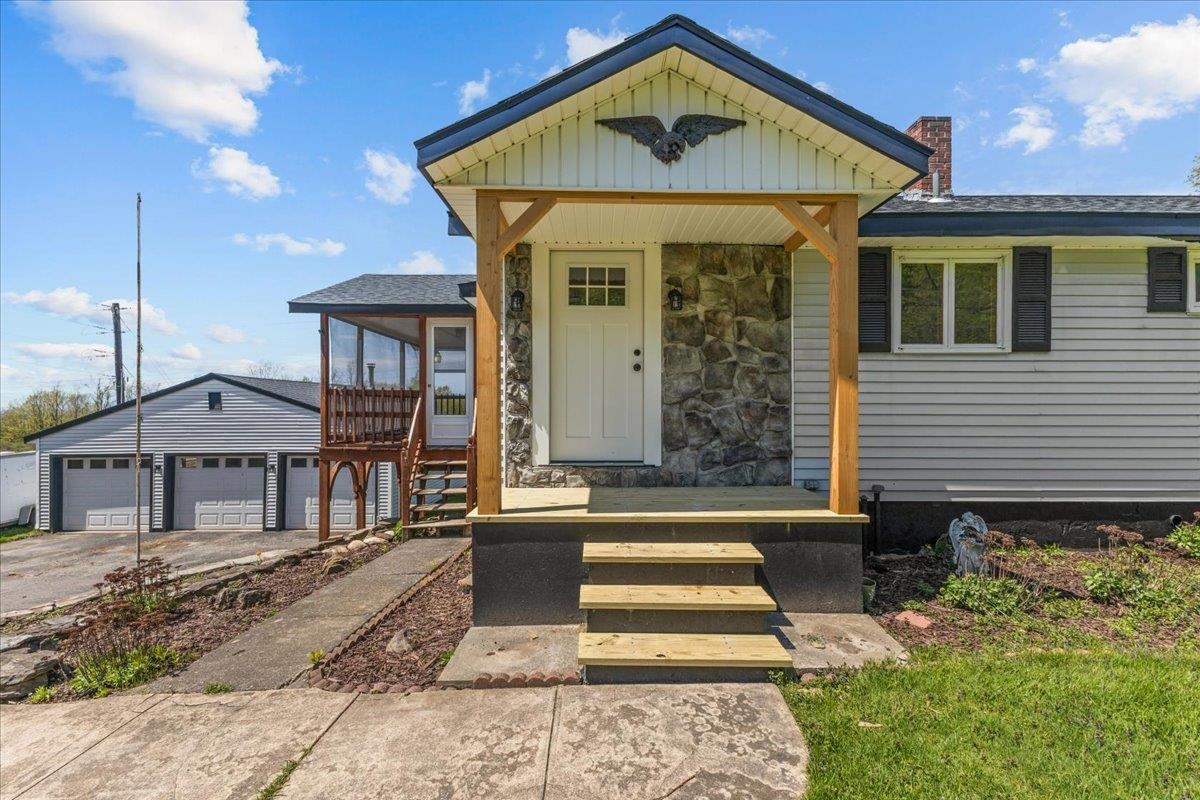If you’ve been searching for a home that’s fully updated, offers so much room to spread out, and delivers truly unforgettable views, this one will check all of your boxes! Set on 2.68 peaceful acres perfect for the view or play, this beautifully recrafted and renovated 2-bedroom home features a spacious primary suite complete with a newly added large and stunning tiled en-suite bath, massive window and double vanity. Take in sweeping Adirondack and Lake Champlain views with incredible sunsets, something here that never gets old. Inside, you’ll find a warm, inviting layout with a fresh, modern feel. The bright living room, with tall cathedral ceilings showcases new flooring and a wood-burning fireplace, creating the perfect space to come home to and unwind after a long day. The updated kitchen is both stylish and functional, offering sleek granite countertops, stainless steel appliances, a large center island and crisp white cabinetry, for cooking, gathering and entertaining. A second full bathroom with a tiled tub and shower combo and even more matte black matching fixtures adds convenience for guests or family, as it's down the hall from the second bedroom. The partially finished walk-out basement expands your living space with a wood fired stove and the lovely flexibility for a home office, rec room, or hobby space, or additional living area. Comfort is covered year-round with central air cooling, an efficient oil furnace, in addition to a brand new electric heat pump. Key improvements include a newer roof, water heater, oil tank, and well tanks, providing massive amounts of peace for the next owner. The oversized 3-car garage provides plenty of room for vehicles, storage, toys or workspace. Located what feels like seconds from I-89 and all the amenities of Williston, this property offers the perfect blend of privacy and accessibility. A place where you can truly relax, take in the views, and feel right at home. We can't wait for you to see it.