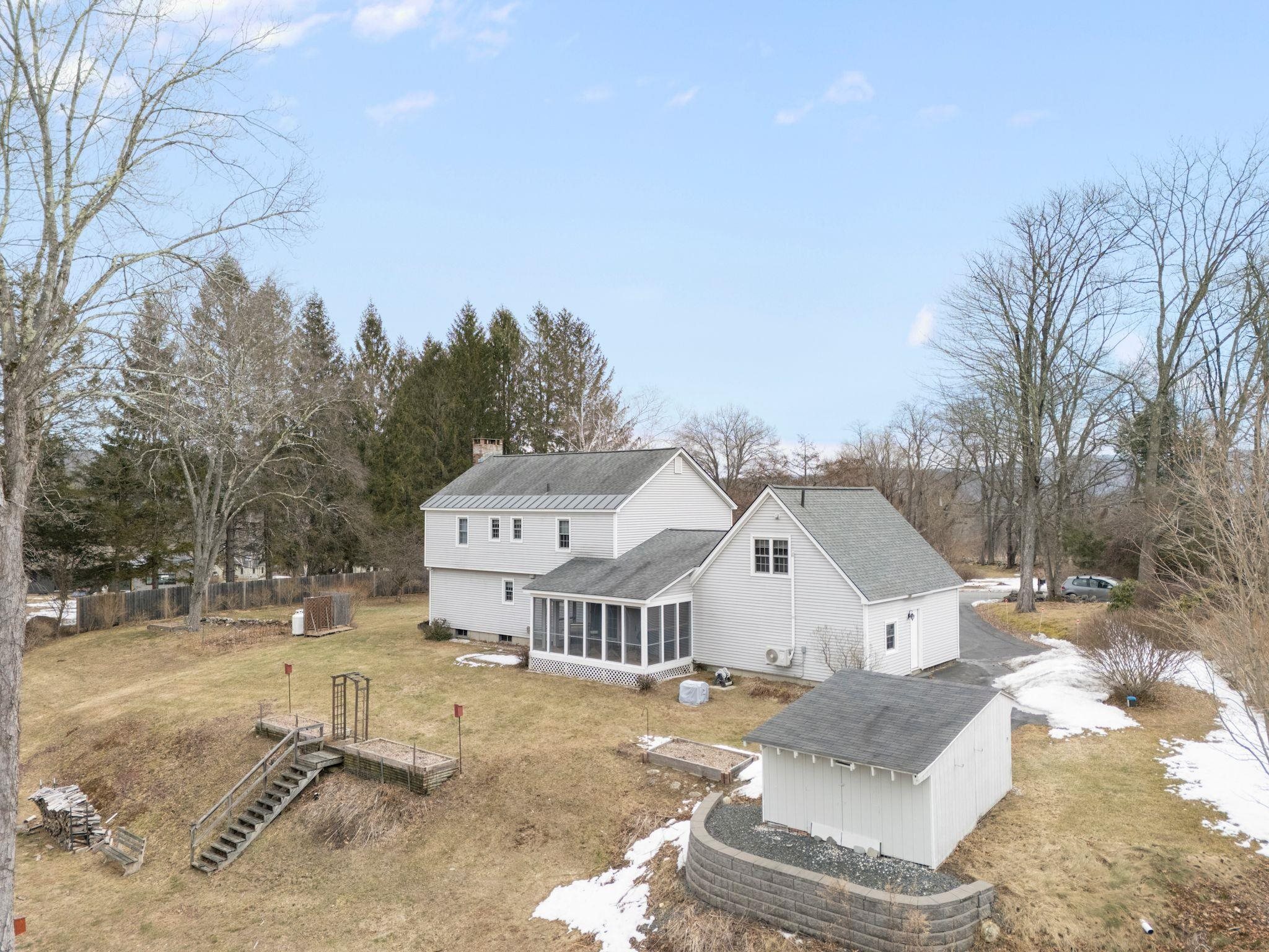 Welcome to Hillwinds and this lovely colonial. With 200 acres of conserved land and trails behind and a wonderful meadow view in the front, this house truly feels a part of the landscape. The main house has four bedrooms and two and a half baths and invites you to step right into your new life in this well cared for and lovingly maintained home. The gardens are in, the drive paved and the garden shed with power is standing ready. The sweet sun room is a nice addition to the living area, just off the kitchen/family room so a great place to expand when entertaining in the warmer months. It overlooks the very peaceful conservancy and is a special place for a quiet read or fun games in the rain. No worries of power outages here with both a gas generator and the new Tesla Powerwall! Above the garage is a versatile space that can be used as a studio, guest room, mother-in-law suite, or a study boasting a mini-split, refrigerator, and three-quarter bath. Enjoy the fire pit in the evening, under the stars. Watch the bluebirds at the birdhouses as they raise their families, the chipmunks that scurry, and the turkeys in the meadow. This is a wonderful neighborhood. Make it yours. Open house Saturday, April 11th 11am - 1pm