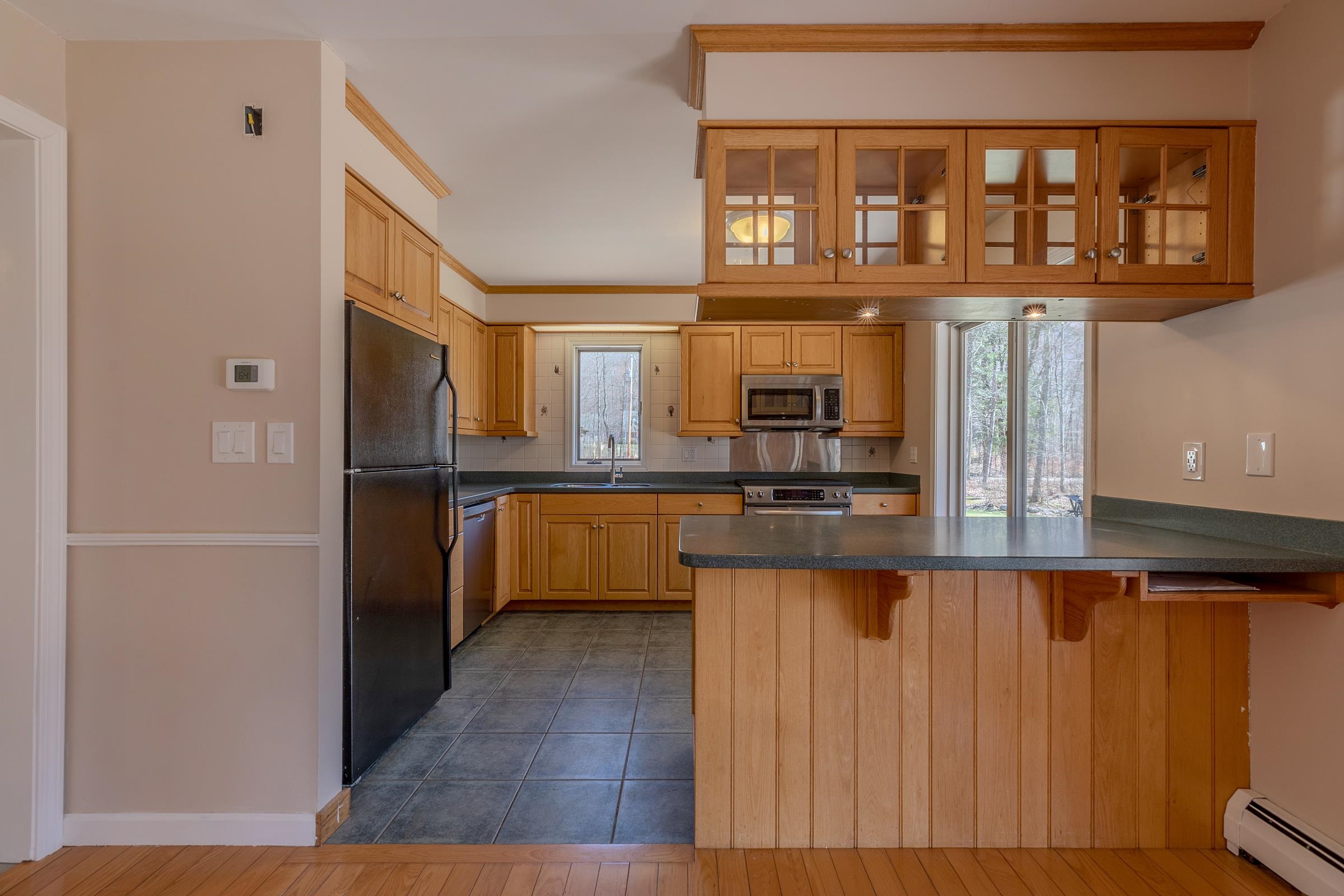 "COME TAKE A PEEK, IT'S JUST ACROSS THE CREEK.....Enjoy an inviting front porch to unwind and breathe in the serene surroundings! Unwind and take in the lovely mountain views, all set on the scenic Tom River in East Dorset! Charming saltbox style (1982 circa), the design is open living spaces with abundant light through out... As an added bonus this property boasts an over sized two car garage and a pole barn with easy access and plenty of room for setting up games and activities..host holiday get-together in a rustic, welcoming setting. Make your family memories here! This is indeed a rare opportunity!