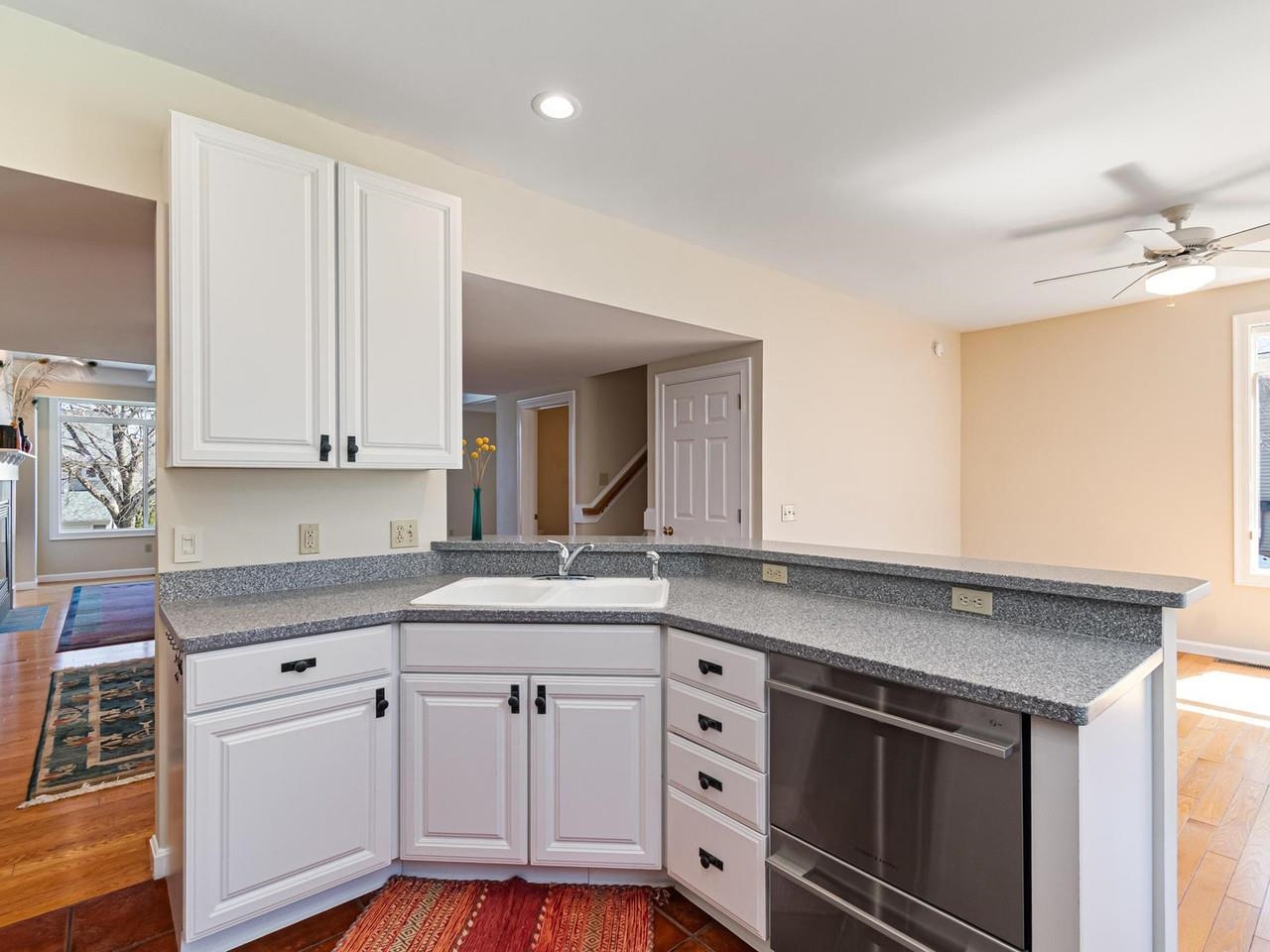 Experience comfort and style in this lovely, light-filled townhome located in the highly sought-after Vermont National golf course community. With three levels of living space, you will appreciate the oversized front windows that take full advantage of the morning sun, with gorgeous sunrises and seasonal views of the Green Mountains. With hardwood floors, a gas fireplace, and beautiful built-ins, the spacious living room flows easily into a dining room and open-concept kitchen, complete with newer stainless-steel appliances, corian countertops, and a large pantry. Just beyond, a sunlit den offers a cozy space to relax, with direct access to a stone patio, perfect for outdoor dining. Upstairs you'll find three bedrooms, including a primary suite with a spacious bathroom, plus a convenient laundry area and another full bath. The lower level provides a flexible space for guests, an exercise room, or rec room. With a 3/4 bath, it is accessible from both the large garage and the first-floor foyer. Enjoy proximity to the amenities of Vermont National, plus nearby recreation and biking trails, shopping, and restaurants, and quick and easy access to UVM, the UVM Medical Center, airport, and Burlington's iconic waterfront. This thoughtfully designed townhome provides the perfect blend of location and livability.