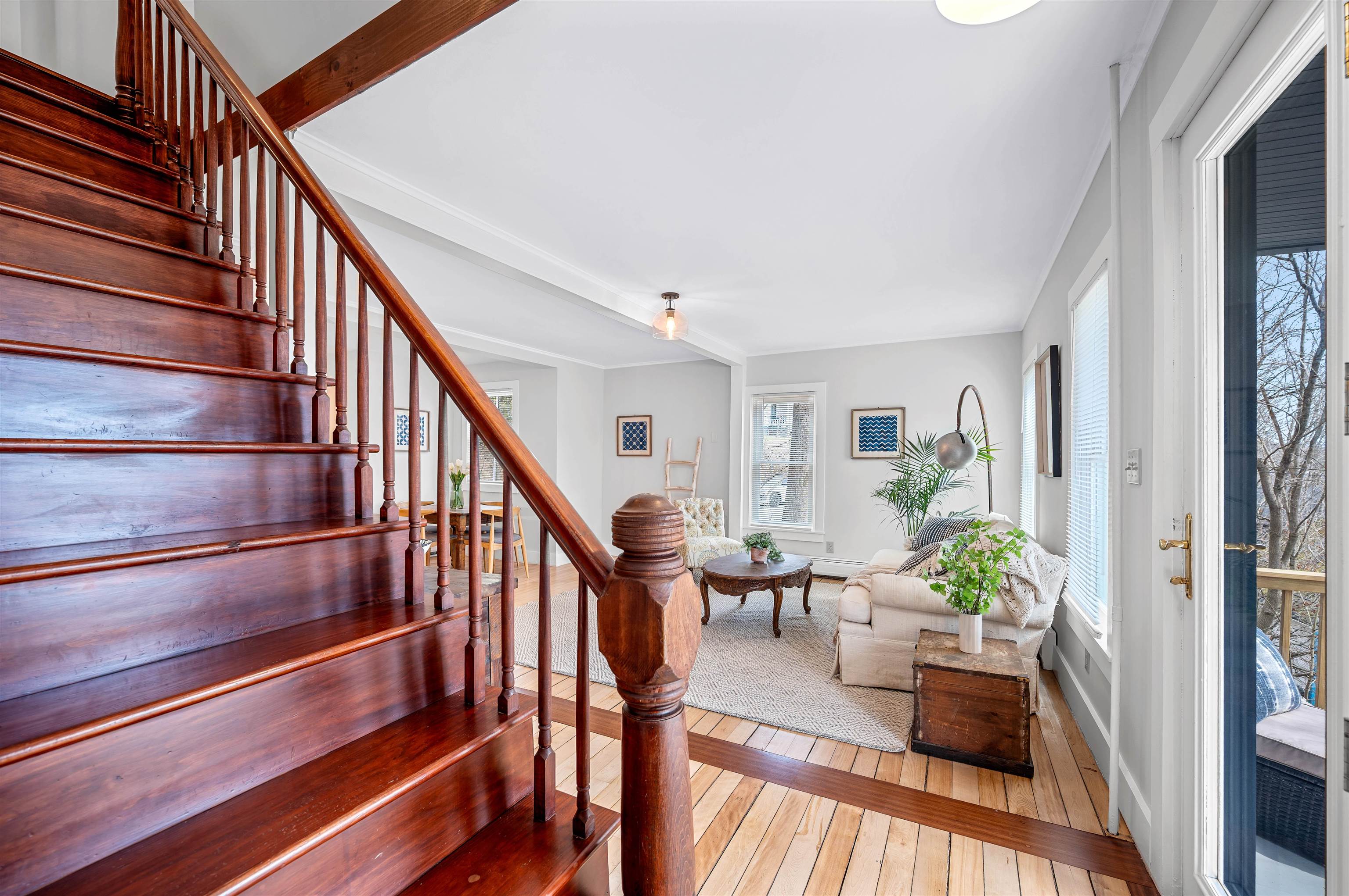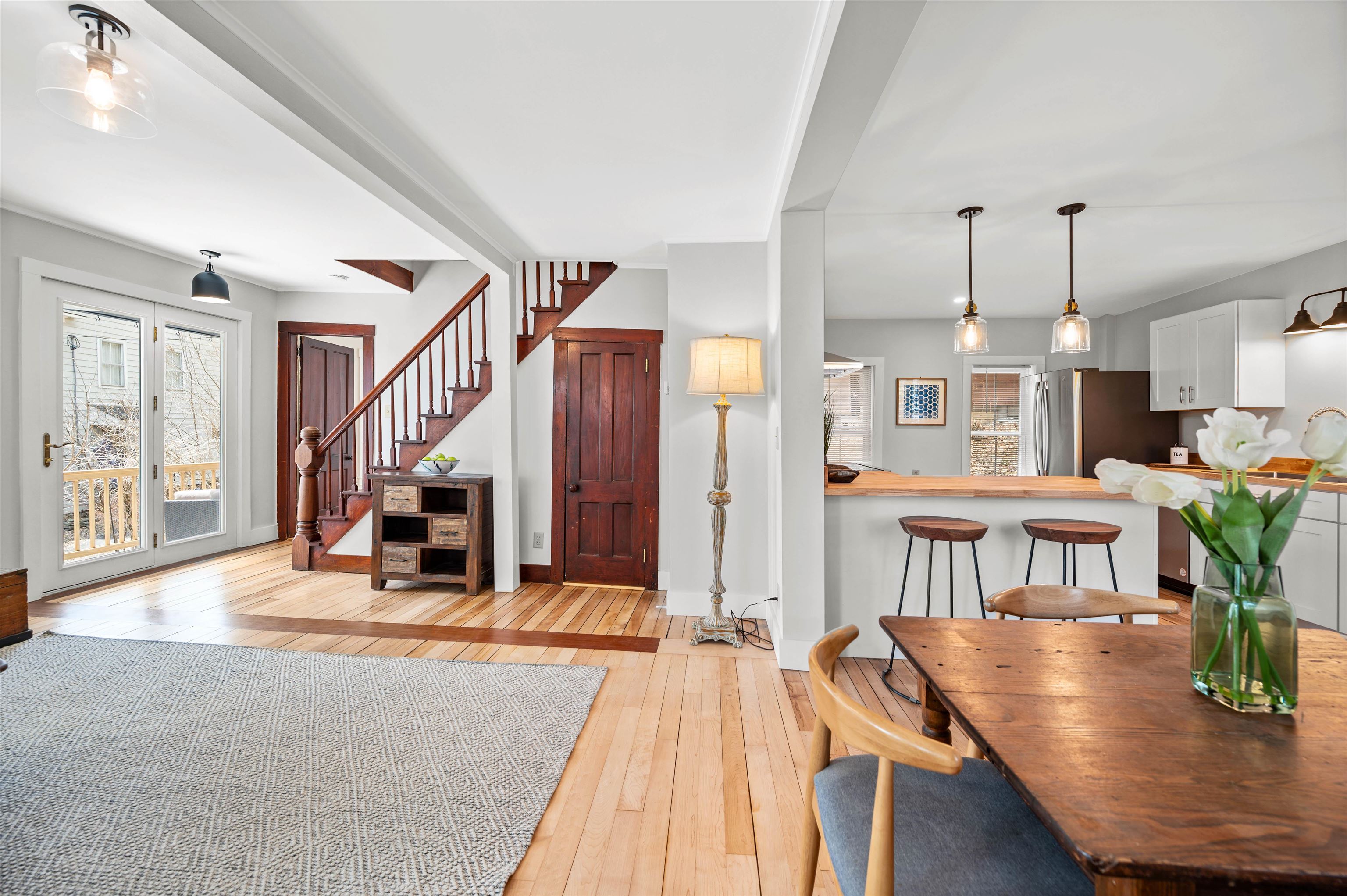Steps from Hubbard Park and overlooking the city, this beautifully renovated four-bedroom, two-bath home offers the perfect blend of charm and modern renovation in Montpelier. Surrounded by emerging spring gardens and featuring sun-filled porches on both sides, the home invites you to relax and enjoy its peaceful setting. The welcoming entry includes a convenient laundry area and leads into a new kitchen with ample counter space and an open, airy layout. The bright first floor open plan layout is ideal for both everyday living and entertaining, with the living room opening onto a full-length covered porch with lovely city views. The first floor also boasts a large bedroom or office space with an en suite bathroom. Upstairs, you'll find three spacious bedrooms and an additional bathroom, along with generous closet space throughout. The front bedroom includes access to the covered second floor screened porch and the primary bedroom has a walk-in closet and a small additional space for an office. Renovations include new windows, new lighting, beautifully refinished wood floors, and a new roof and much more. Fresh, stylish, and move-in ready, this home is ready for you! Join us for an OPEN HOUSE on Saturday, 4/11, from 11am-1pm. Listed by the owner-agent.