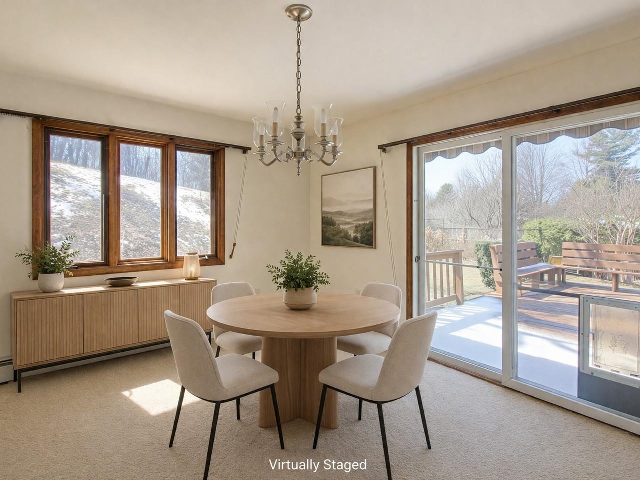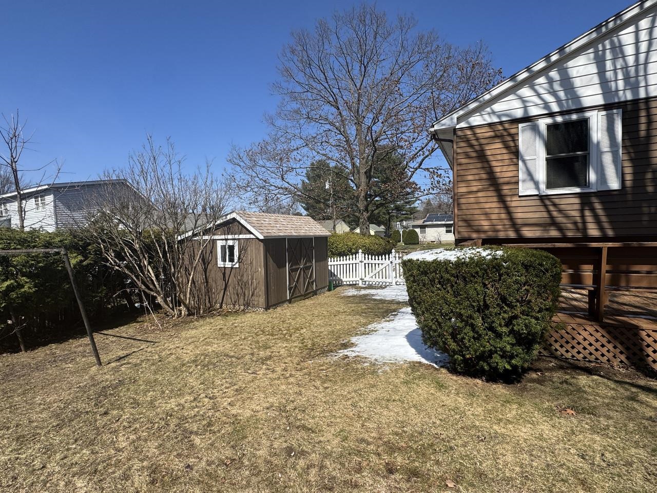 This 3-bedroom home in a desirable Essex Junction neighborhood offers comfort, character, and great potential. Inside, you'll find spacious rooms, hardwood floors beneath most of the carpeting, and a cozy wood-burning fireplace with a classic red brick hearth. The large kitchen features abundant cabinetry and an oversized pantry for excellent storage. A sliding glass door opens to a generous back deck with an awning and built-in seating, perfect for entertaining while overlooking a fully-fenced yard with mature trees and perennial gardens. Additional highlights include some newer vinyl windows, a storage shed, and a 1-car garage with workshop space. Conveniently located just minutes from Five Corners, schools, parks, and local dining, this home offers an ideal blend of space, location, and opportunity.