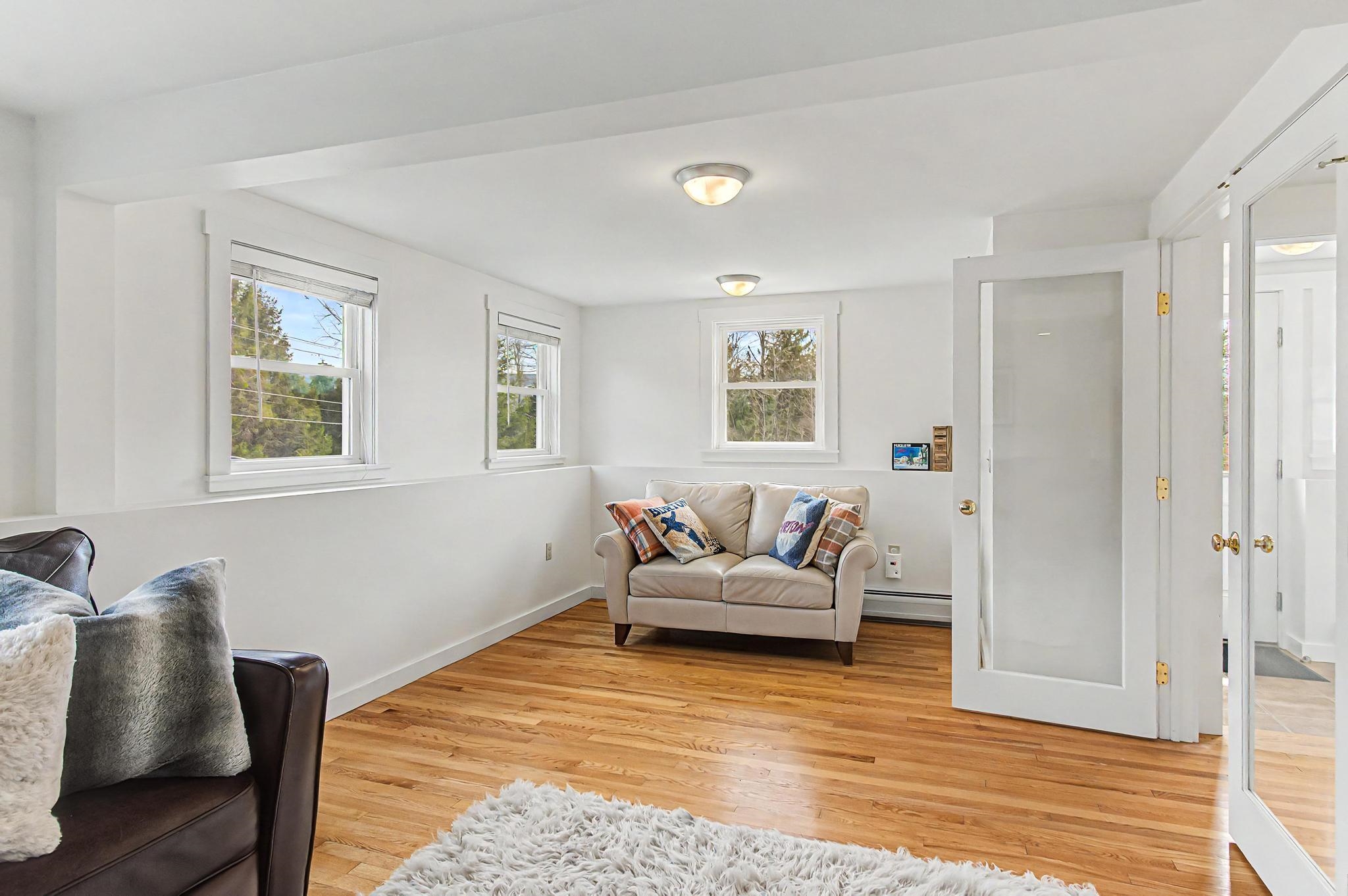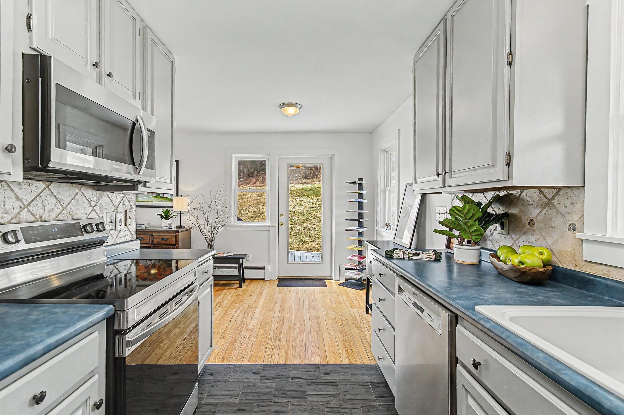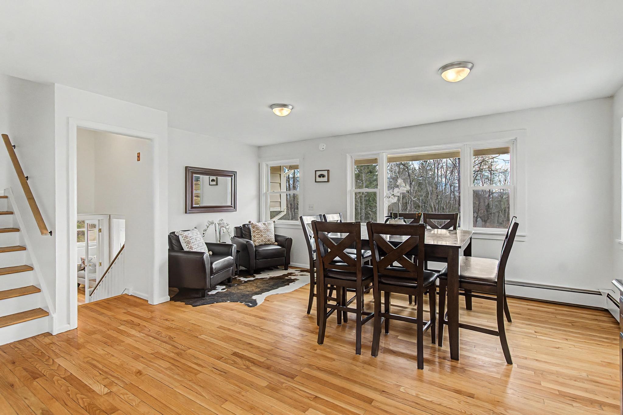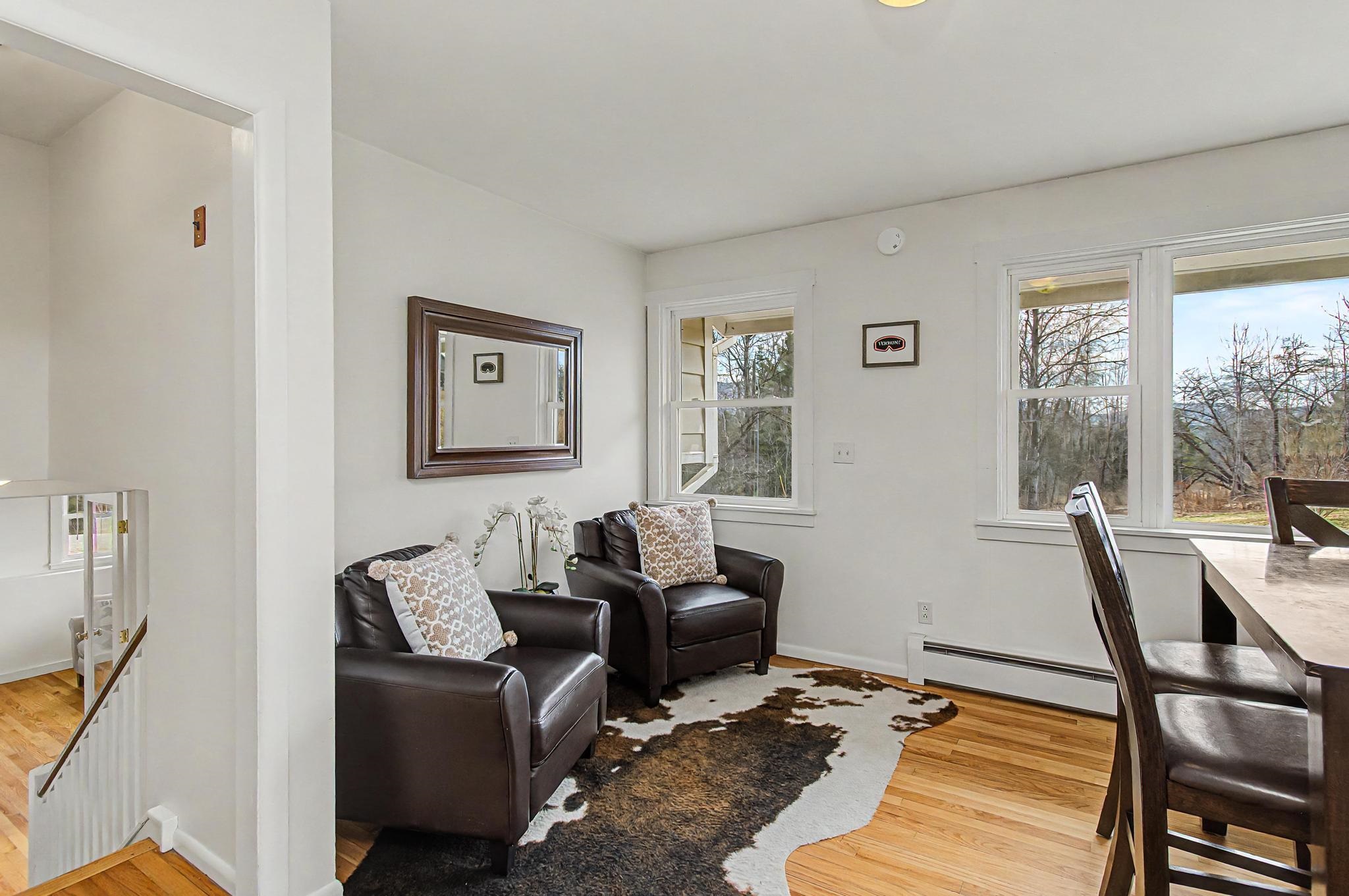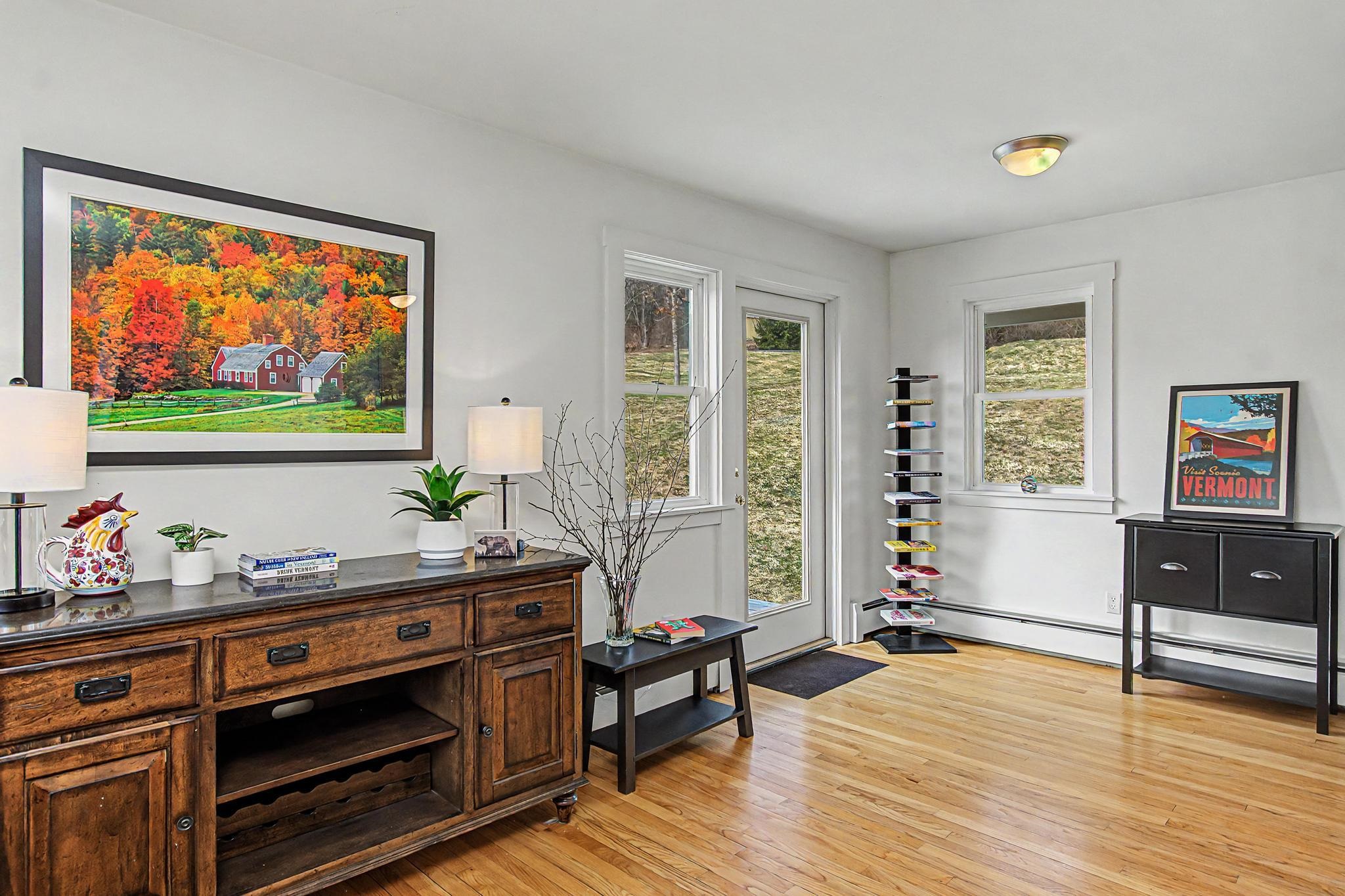 Set along one of Stowe’s most desirable corridors, this Weeks Hill Road property offers a combination of elevated positioning, pastoral views and everyday functionality. Situated on a 1.18-acre lot with southwest-facing exposure, the home looks out across rolling hills and the surrounding valley, with an open lawn framed by a natural landscape backdrop that enhances both privacy and setting. Inside, the home features a functional and efficient layout with clearly defined living and dining areas. A subtle change in elevation between spaces creates a sense of separation while maintaining an easy, natural flow. The living area is filled with natural light and offers flexibility for a variety of furniture arrangements, while the adjacent dining area connects seamlessly to the kitchen and a spacious rear deck—ideal for indoor-outdoor living. Hardwood flooring runs throughout the main living spaces and bedrooms, complemented by clean, neutral finishes that make the home move-in ready while offering a blank canvas for personalization. Multiple bedrooms provide flexible options for guests, rental use, or a home office, with practical layouts and ample closet storage. Two full bathrooms support comfortable daily living. The rear deck extends the living space outdoors, offering room for seating and grilling, with direct access to the yard below. The home’s elevated position not only enhances the views but also adds to the sense of privacy, creating an inviting environment for relaxing or entertaining. Conveniently located with easy access to Stowe Village, recreation trails, and ski areas, this property presents an excellent opportunity to enjoy all that Stowe has to offer from a peaceful, scenic setting.