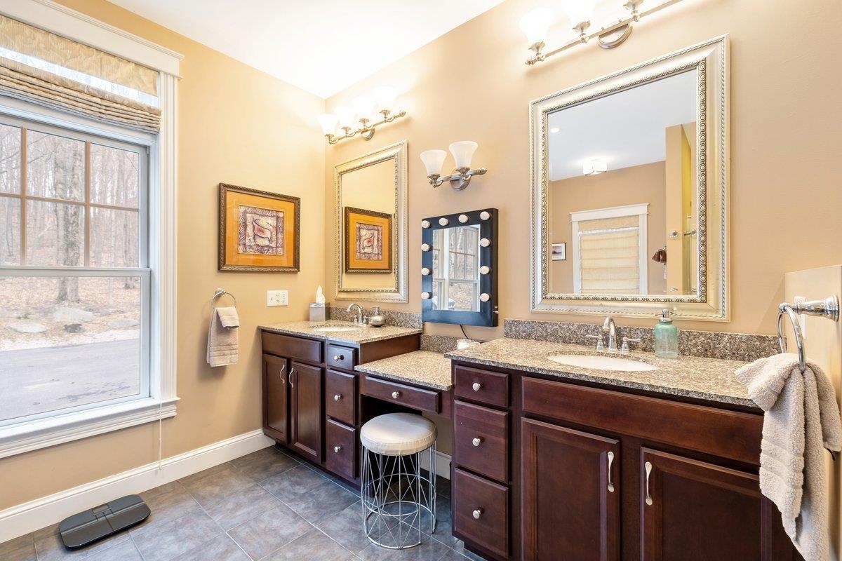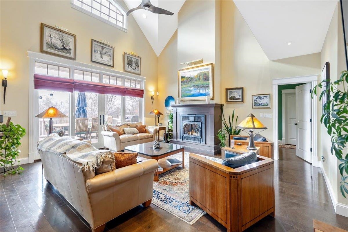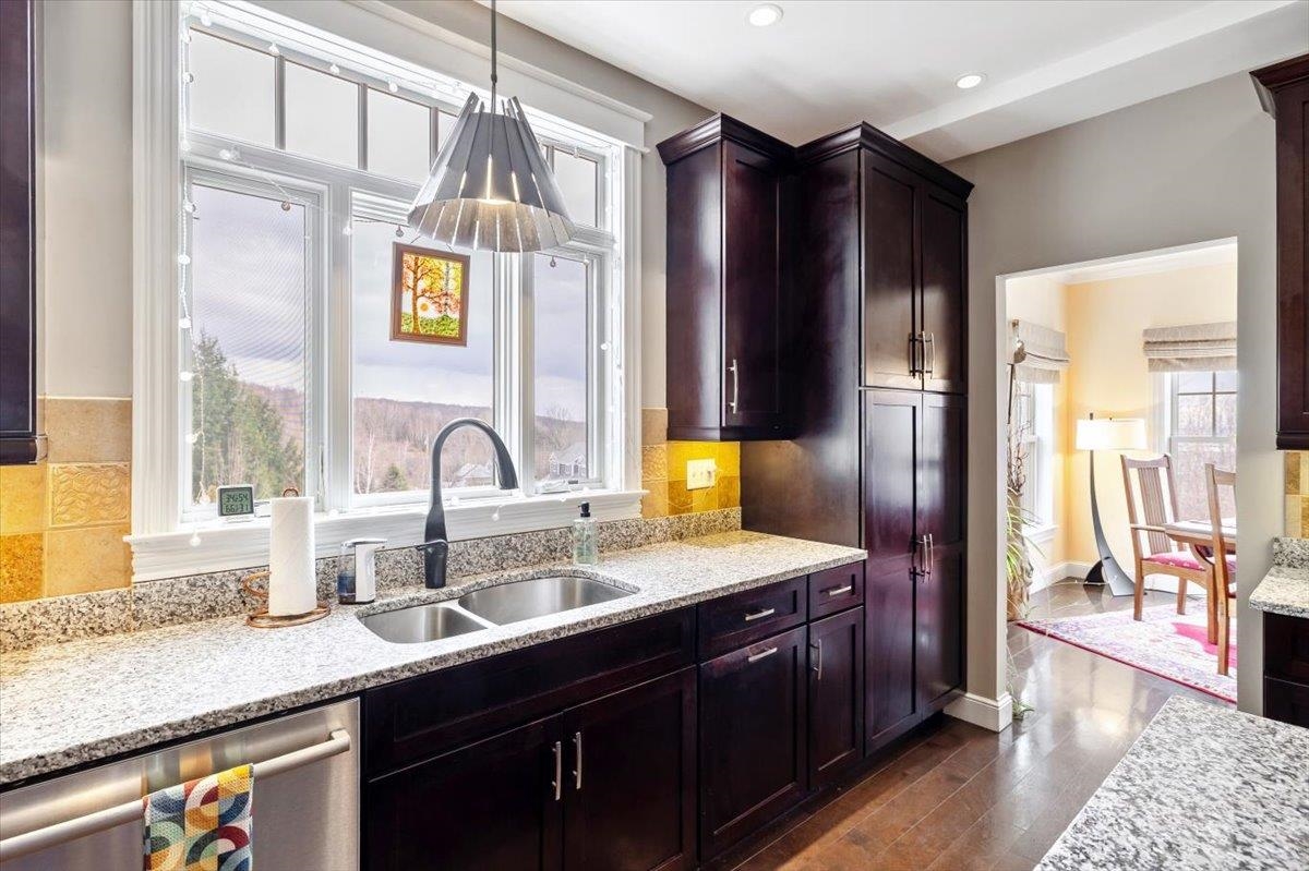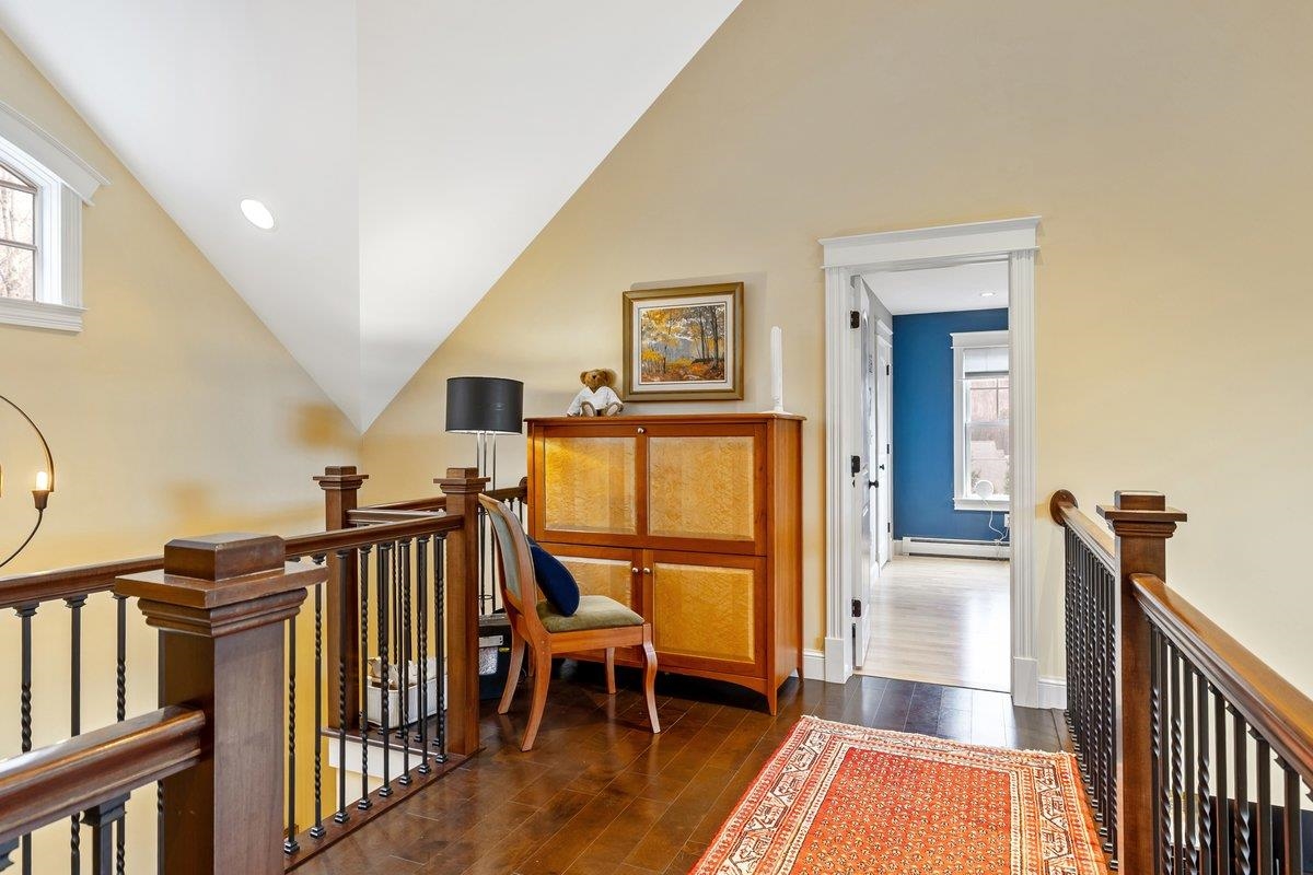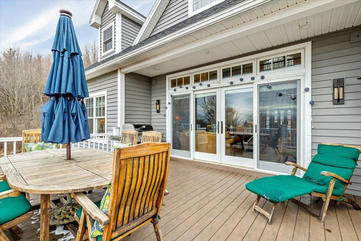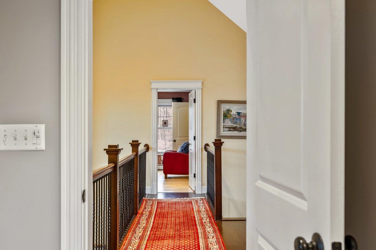 Tucked privately at the end of the road, this picture-perfect home offers a rare blend of tranquility and convenience, with seasonal views of Lake Champlain and the sparkling lights of St. Albans City. From the moment you enter, you’re welcomed by a bright and expansive living room featuring vaulted ceilings, a cozy fireplace, and glass doors that open to a spacious deck—perfect for soaking in the stunning surroundings. At the heart of the home, the gourmet kitchen is designed to impress, showcasing a commercial-grade range, elegant stone countertops, custom cabinetry, and generous workspace for both everyday living and entertaining. A large Walk in pantry just off the kitchen provides exceptional storage and organization. The primary suite is a peaceful retreat, complete with a spa-like bath featuring a soaking tub, separate shower, double vanity, and walk-in closet. Two additional upstairs bedrooms each offer their own private en-suite baths, providing comfort and privacy for family or guests. The finished walk-out lower level expands your living space with a large recreation room, wet bar with refrigerator, full bath, laundry room, and dedicated exercise room, and patio with hot-tub; ideal for entertaining or relaxing. Thoughtfully designed throughout, the home features 9’ ceilings, radiant heat on the main and lower levels, custom woodwork, hardwood and tile flooring, central vacuum, security system, and Marvin windows. Designer lighting by Hubbardton Forge adds a distinctive Vermont-crafted touch of elegance to every space. Outside, enjoy a 2-car garage with storage above, beautifully established perennial gardens, and a spacious yard for outdoor enjoyment. Ideally located just minutes from I-89, downtown St. Albans, Hard’ack Recreation Area, Collins Perley Sports Complex, Northwestern Medical Center, and local schools, this exceptional property offers the perfect balance of luxury, comfort, and location. Don’t miss your chance to experience this stunning home.