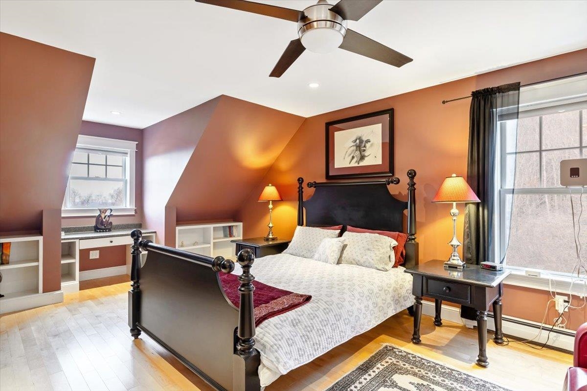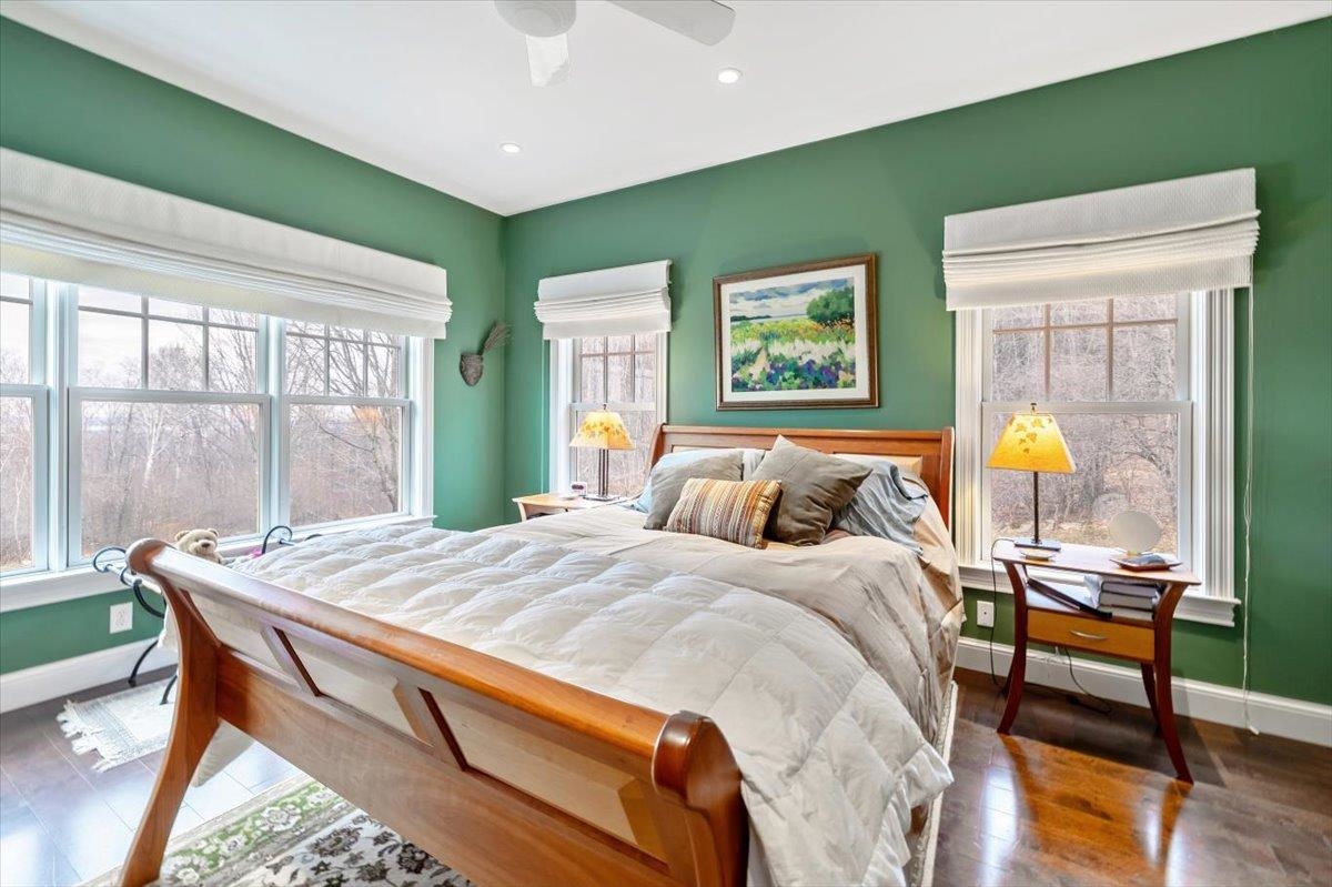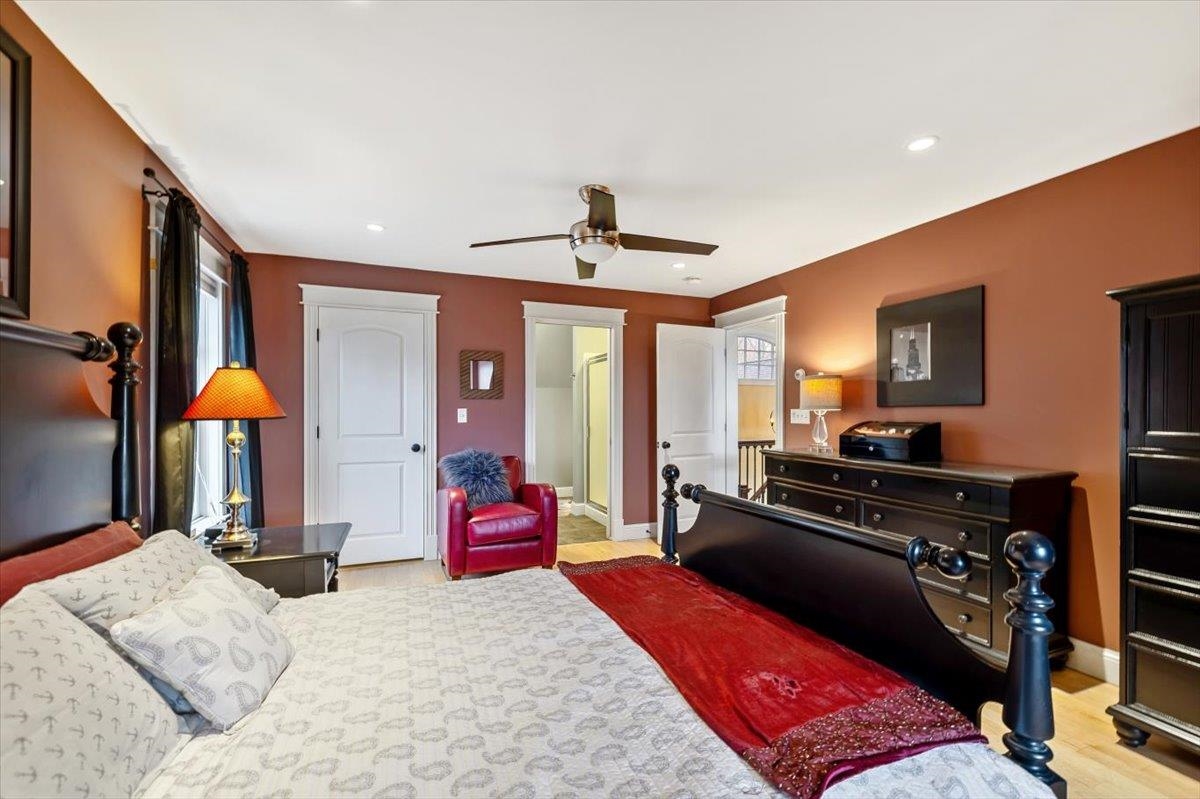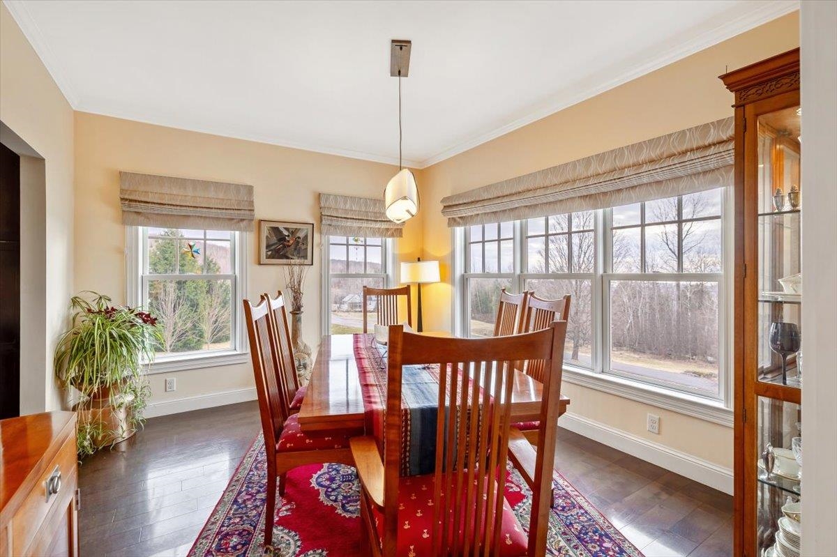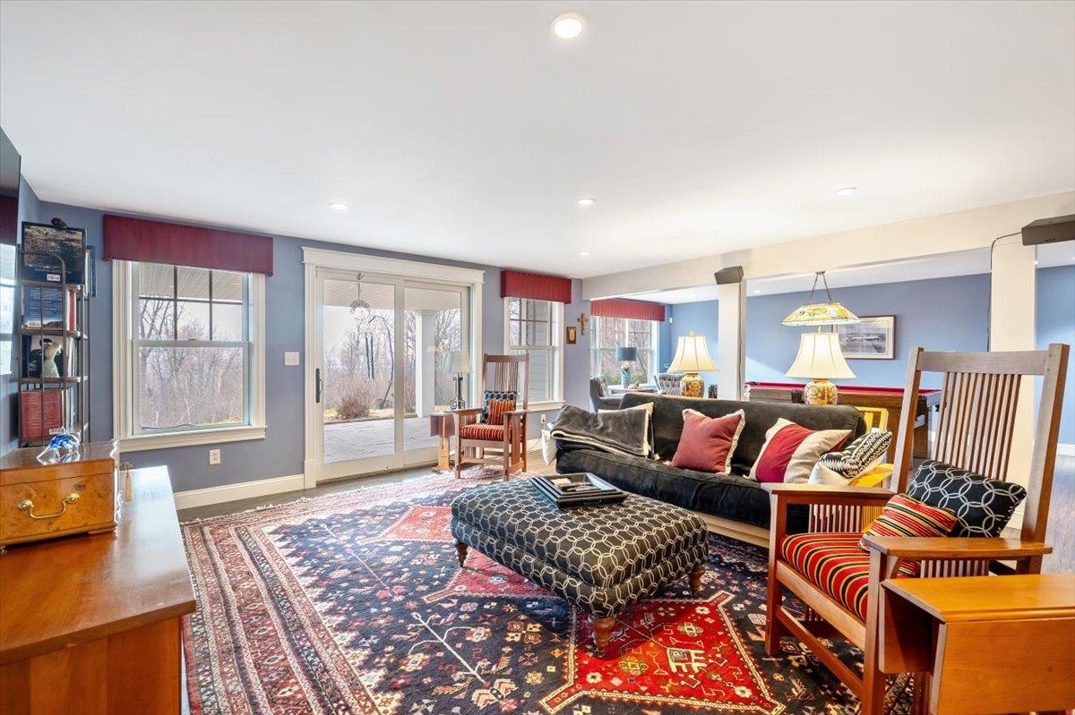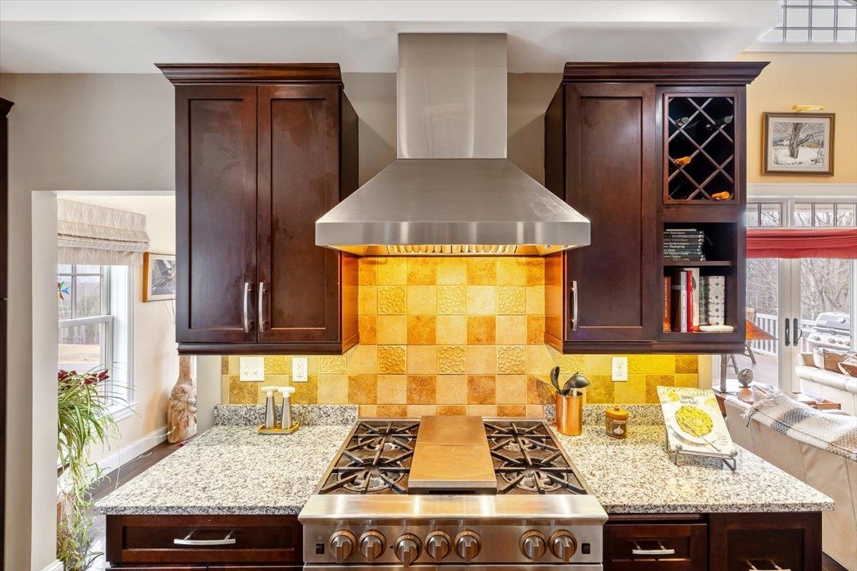Tucked privately at the end of the road, this picture-perfect home offers a rare blend of tranquility and convenience, with seasonal views of Lake Champlain and the sparkling lights of St. Albans City. From the moment you enter, you’re welcomed by a bright and expansive living room featuring vaulted ceilings, a cozy fireplace, and glass doors that open to a spacious deck—perfect for soaking in the stunning surroundings. At the heart of the home, the gourmet kitchen is designed to impress, showcasing a commercial-grade range, elegant stone countertops, custom cabinetry, and generous workspace for both everyday living and entertaining. A large Walk in pantry just off the kitchen provides exceptional storage and organization. The primary suite is a peaceful retreat, complete with a spa-like bath featuring a soaking tub, separate shower, double vanity, and walk-in closet. Two additional upstairs bedrooms each offer their own private en-suite baths, providing comfort and privacy for family or guests. The finished walk-out lower level expands your living space with a large recreation room, wet bar with refrigerator, full bath, laundry room, and dedicated exercise room, and patio with hot-tub; ideal for entertaining or relaxing. Thoughtfully designed throughout, the home features 9’ ceilings, radiant heat on the main and lower levels, custom woodwork, hardwood and tile flooring, central vacuum, security system, and Marvin windows. Designer lighting by Hubbardton Forge adds a distinctive Vermont-crafted touch of elegance to every space. Outside, enjoy a 2-car garage with storage above, beautifully established perennial gardens, and a spacious yard for outdoor enjoyment. Ideally located just minutes from I-89, downtown St. Albans, Hard’ack Recreation Area, Collins Perley Sports Complex, Northwestern Medical Center, and local schools, this exceptional property offers the perfect balance of luxury, comfort, and location. Don’t miss your chance to experience this stunning home.