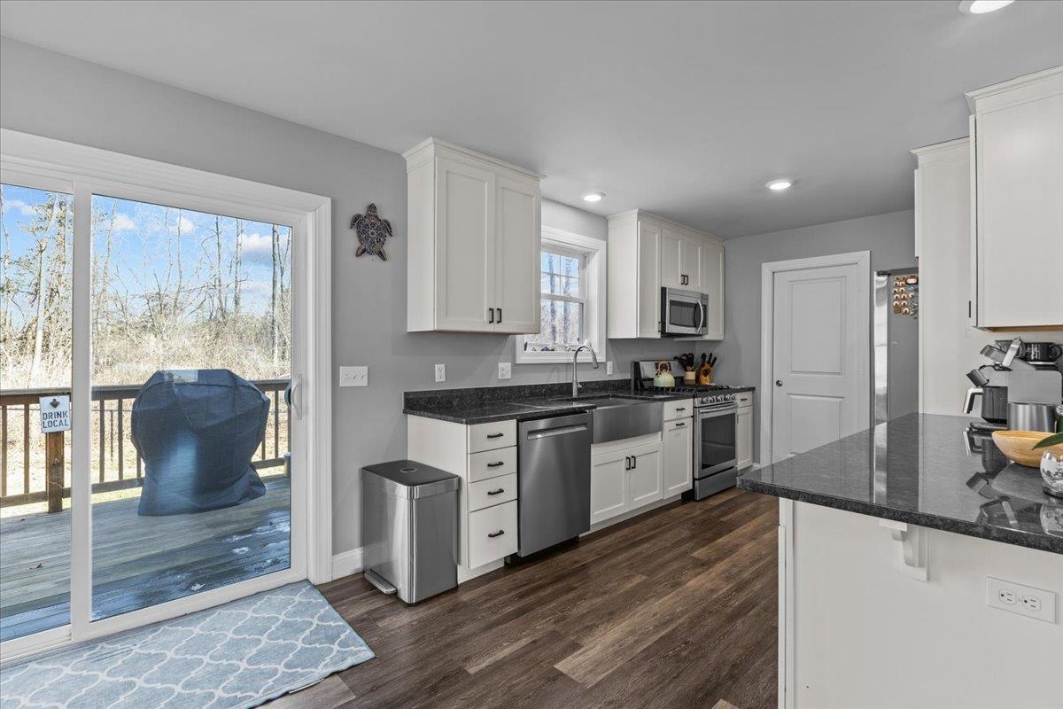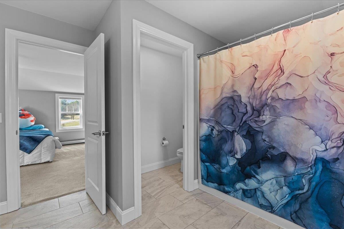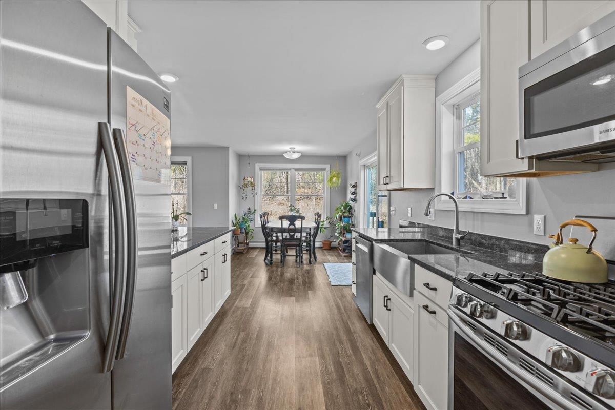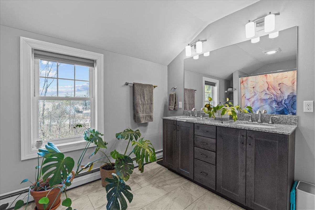 Farmhouse inspired Colchester home with beautiful finishes, ideally located near Niquette Bay State Park and just minutes to the interstate and downtown Burlington. A welcoming front porch leads into a light-filled, open-concept main level featuring luxury vinyl plank flooring and a cozy gas fireplace. The spacious kitchen offers granite countertops, a large island, farmhouse sink, stainless steel appliances, ample cabinetry, and a pantry, flowing seamlessly into the dining area with slider access to a private back deck. A mudroom and half bath complete the first floor. Upstairs, you'll find two generous bedrooms, a full bath, and convenient laundry area, along with a sunny primary suite featuring a large walk-in closet and en suite bath with double sinks. The full basement with 3 egress window offers great potential for additional finished space & is plumbed for a full bath . Enjoy a two-car garage and a private fenced backyard in this quality-built home close to Lake Champlain and Burlington.