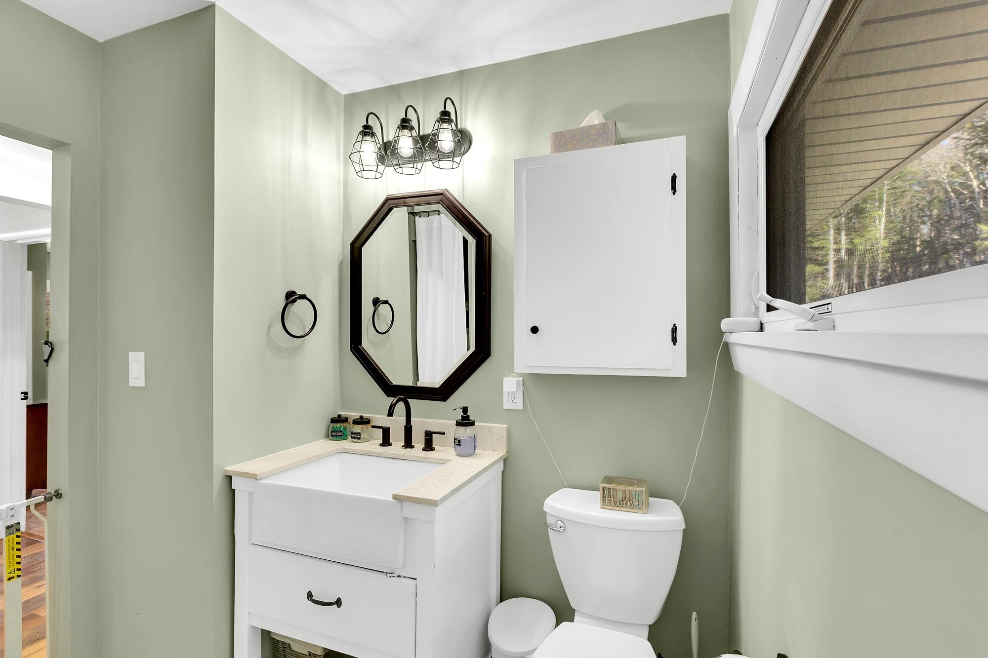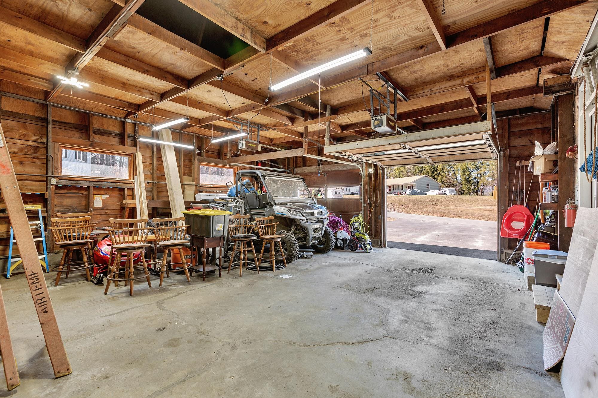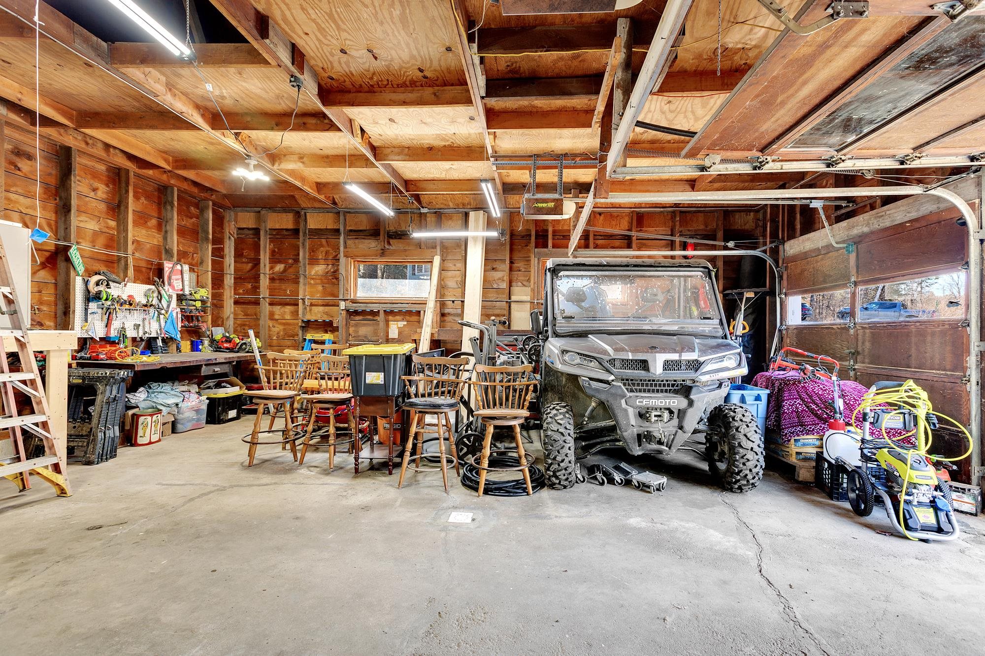 Situated in a quiet neighborhood on a spacious .75 acre level lot is this renovated two bedroom one bath ranch home with an attached two car garage. Won't it be nice to roll into your garage in the foul weather and stroll right into your cozy home. The kitchen is the centerpiece boasting custom cabinetry with under lighting, an island breakfast bar, solid surface counters, stainless steel appliances and vinyl plank flooring. The open concept into the dining room make for convenient meals. You'll love the access to the back deck where you can prepare and enjoy meals in the nicer weather. The living room has classic hardwood floors and is flooded with natural light. The two bedrooms will accommodate king beds and or bunks, each with plentiful closets. The updated bathroom is also a showpiece with subway tile, farmers sink, and two faucets, one hand held in the walk in shower. The unfinished basement is a blank canvas for the potential of more living space, work out area etc. The oversized two car garage has a work bench for your home projects. The house is equipped a mini split system for cooling and heat for year round comfort. And the icing on the cake is the wonderful yard with perennials, shade trees, privacy hedge and plenty of space to play, garden or just relax. This is a must see property to appreciate what it has to offer.