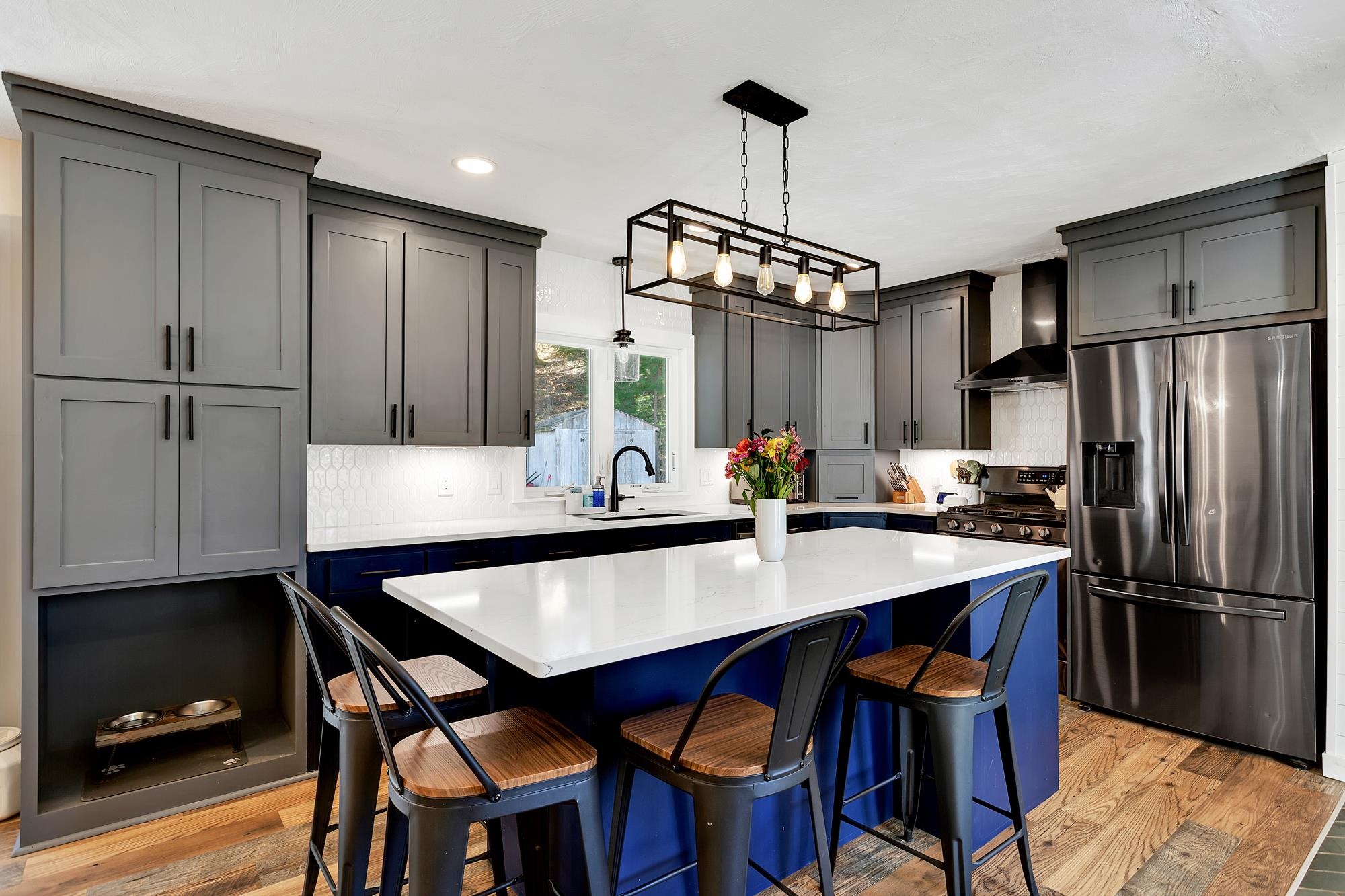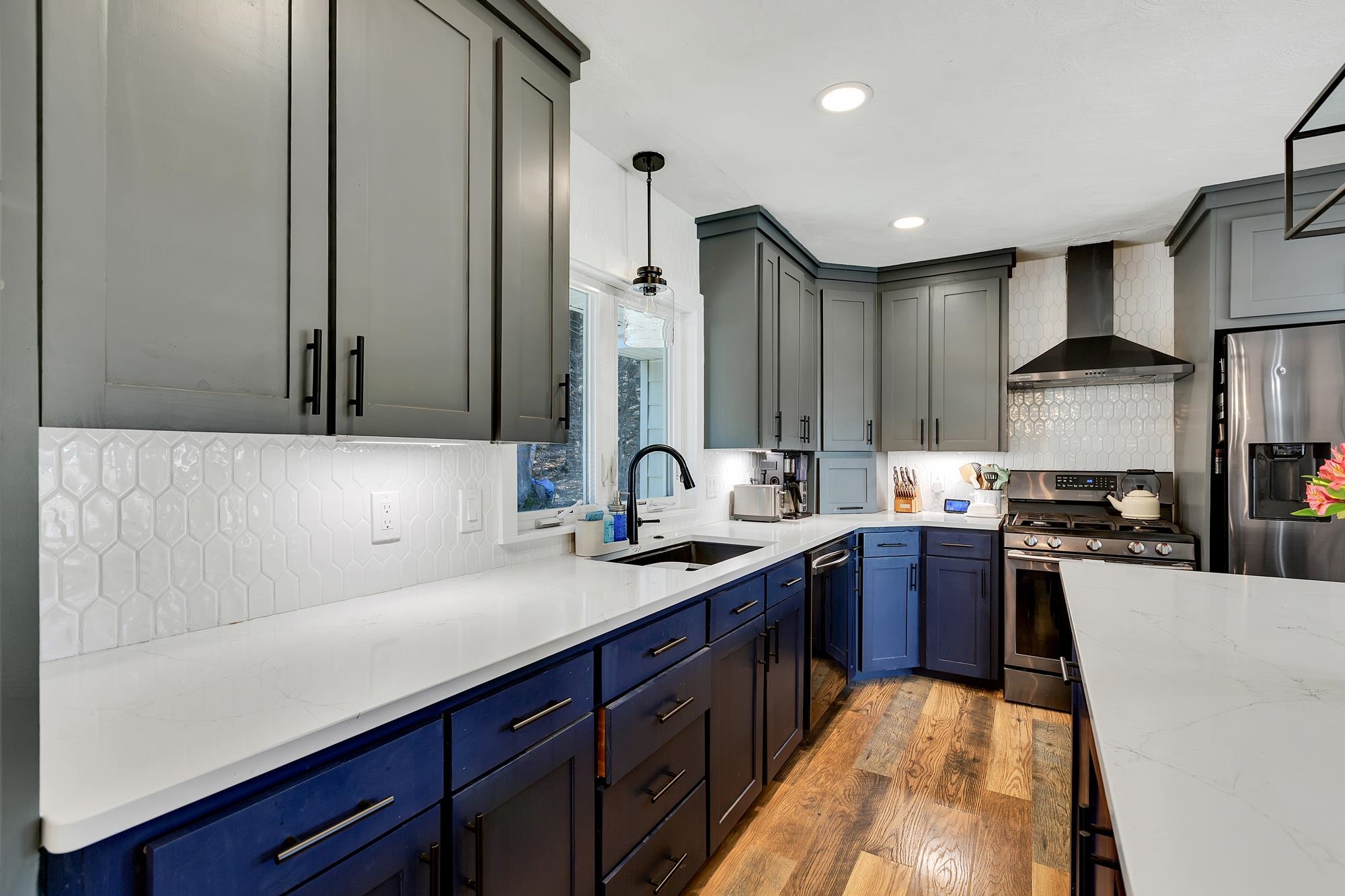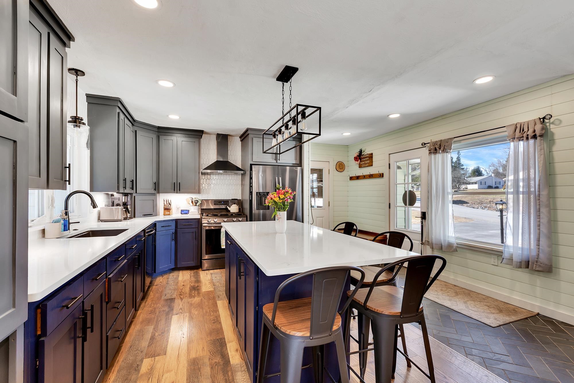 Situated in a quiet neighborhood on a spacious .75 acre level lot is this renovated two bedroom one bath ranch home with an attached two car garage. Won't it be nice to roll into your garage in the foul weather and stroll right into your cozy home. The kitchen is the centerpiece boasting custom cabinetry with under lighting, an island breakfast bar, solid surface counters, stainless steel appliances and vinyl plank flooring. The open concept into the dining room make for convenient meals. You'll love the access to the back deck where you can prepare and enjoy meals in the nicer weather. The living room has classic hardwood floors and is flooded with natural light. The two bedrooms will accommodate king beds and or bunks, each with plentiful closets. The updated bathroom is also a showpiece with subway tile, farmers sink, and two faucets, one hand held in the walk in shower. The unfinished basement is a blank canvas for the potential of more living space, work out area etc. The oversized two car garage has a work bench for your home projects. The house is equipped a mini split system for cooling and heat for year round comfort. And the icing on the cake is the wonderful yard with perennials, shade trees, privacy hedge and plenty of space to play, garden or just relax. This is a must see property to appreciate what it has to offer.