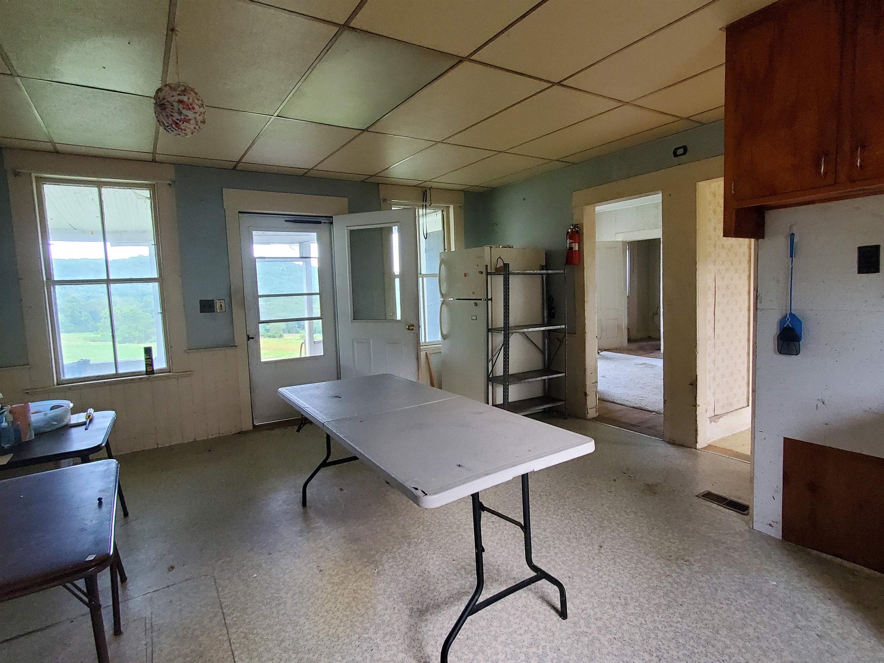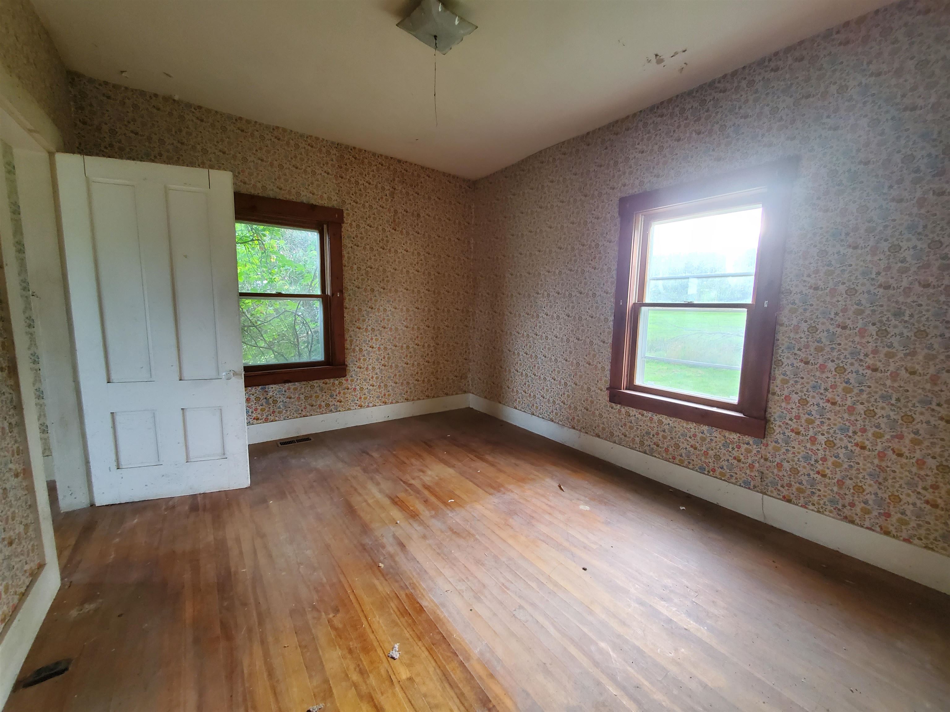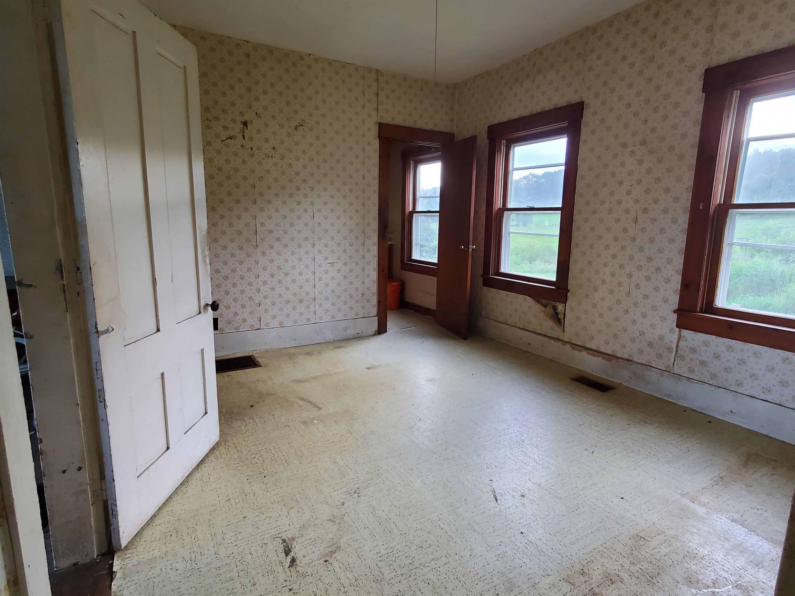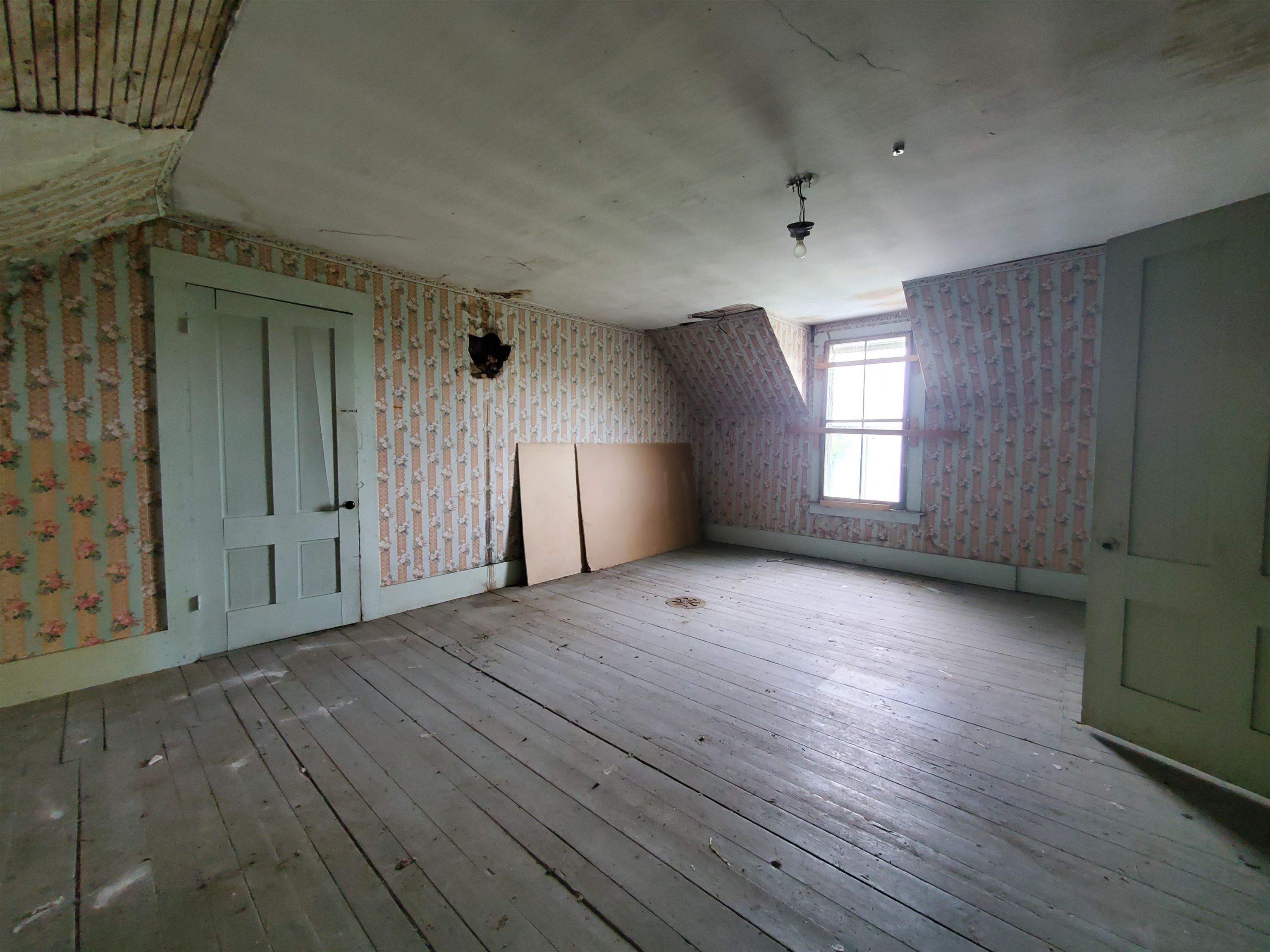This home of yesteryear, around the 1850's most likely, begs for your nostalgic renovation to bring this home back to life, rocking chair on the front porch, garden growing out back, sheep or goats or cows in your yard, making this home feel like home again! There are 14.50 newly surveyed acres, rolling land along a town maintained road, with a view of local hillside, pretty sunset views, overlooking the neighbors farmland. There's a large workshop/garage with shed/breezeway directly into the kitchen, dining, laundry room, full bath, living room, and main floor bedroom. Upstairs are more bedrooms or office space and a half bath. You'll find plaster, wallpaper, stone foundation, which is typical for this age of home but it's ready for you to make your updates your way! Take a look today! Easy to view!