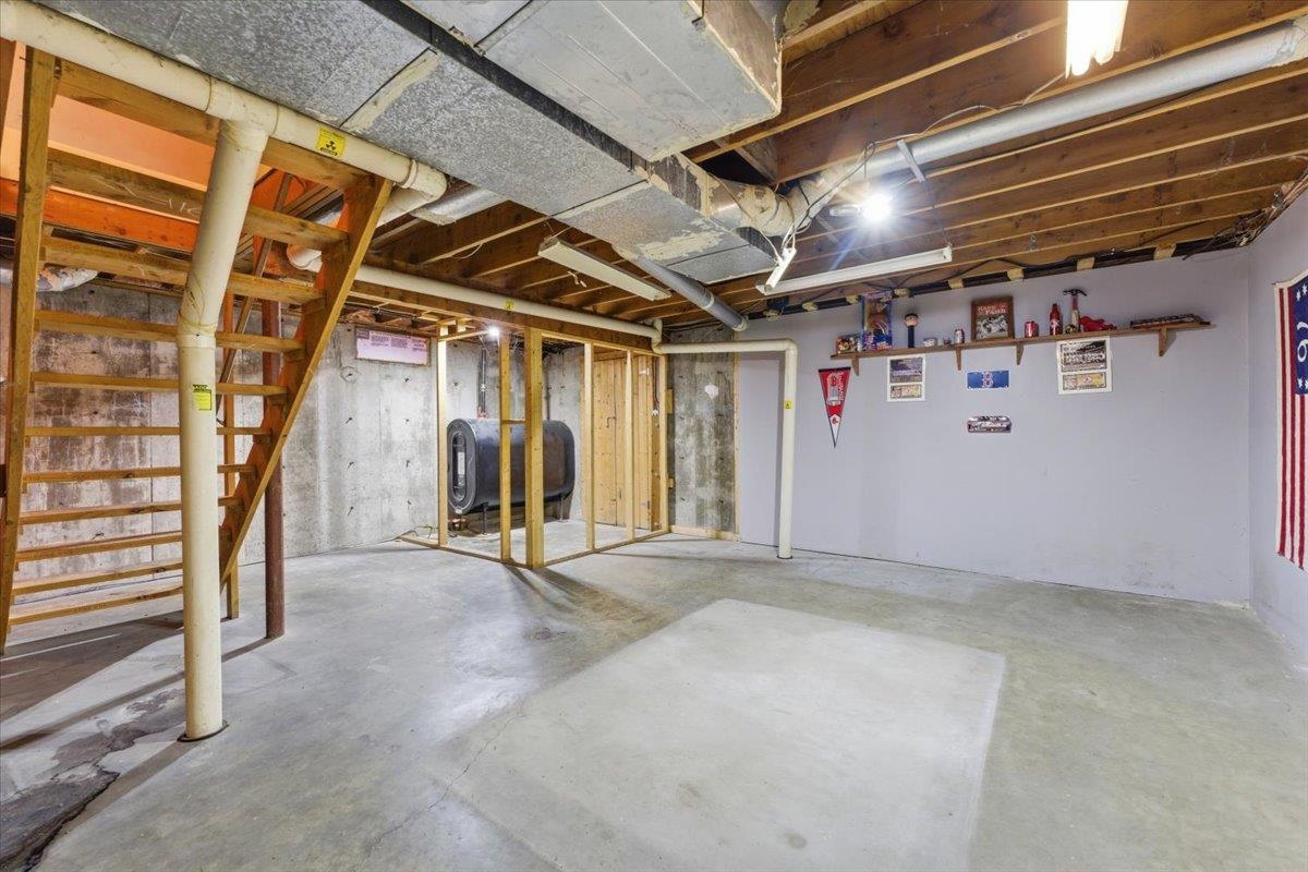 - Bulkhead, Concrete, Concrete Floor, Full, Exterior Stairs, Interior Stairs, Storage Space, Unfinished
