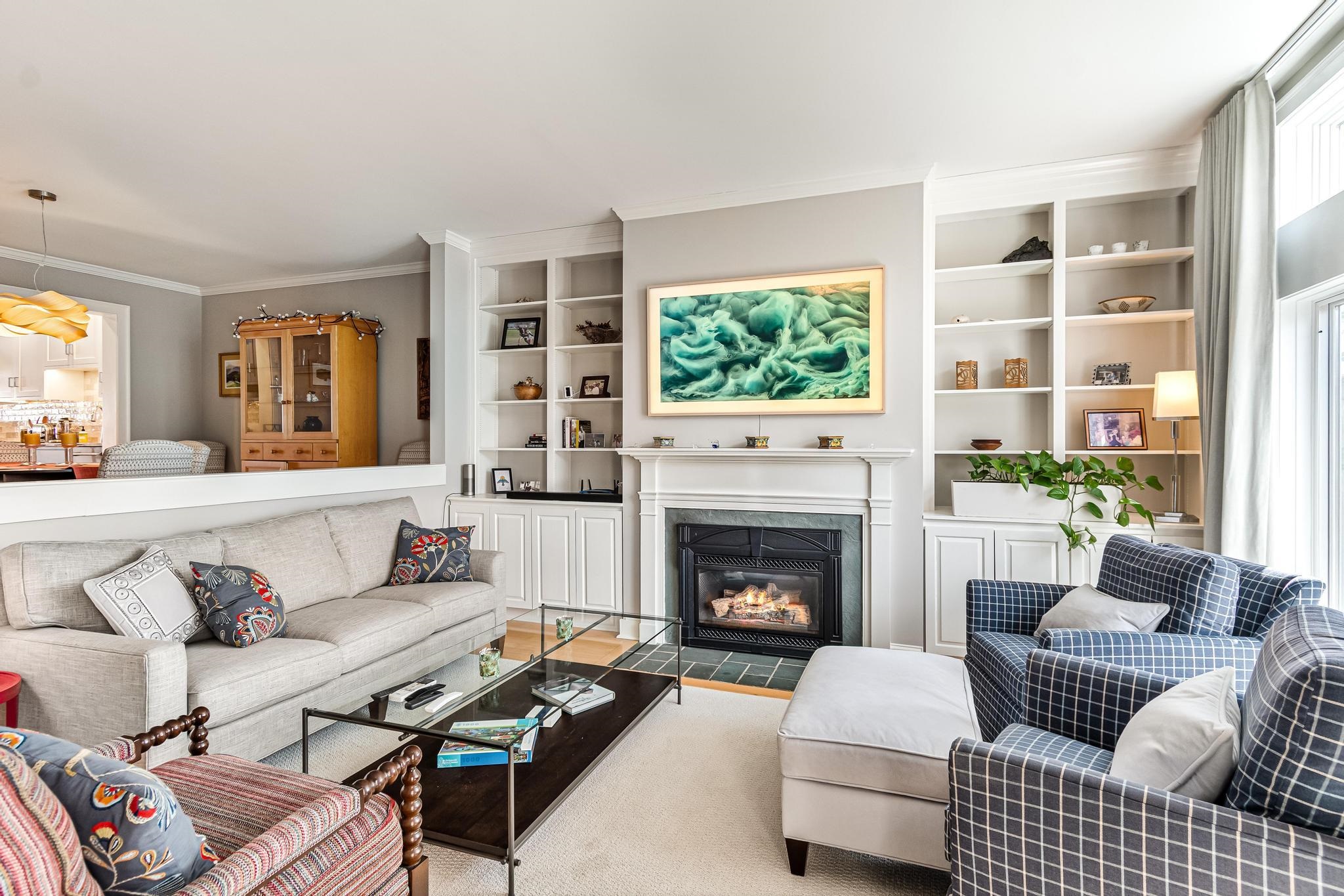 - Dining Area, Gas Fireplace, Hearth, Living/Dining, Primary BR w/ BA