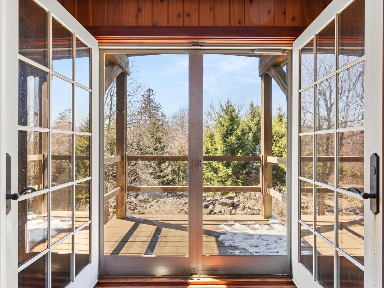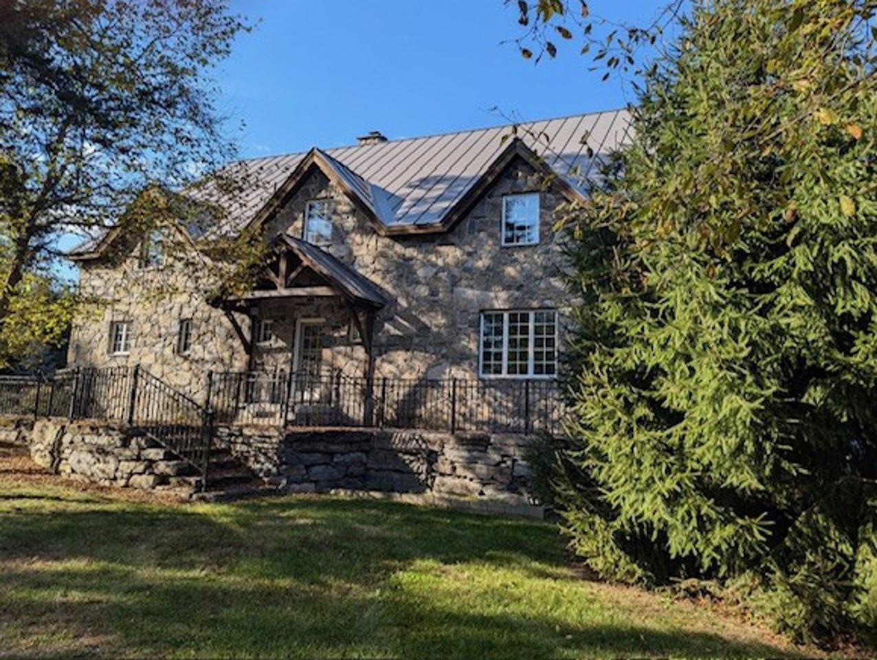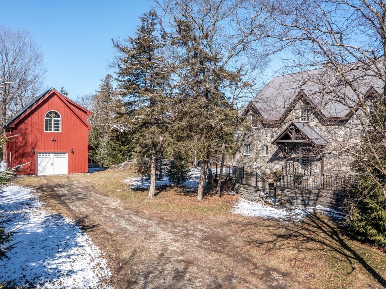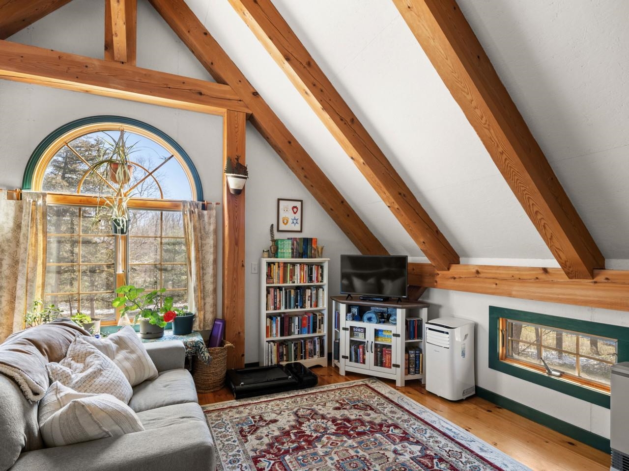 Set on 10 private acres with 250 feet of direct frontage on Lake Champlain, this exceptional custom home showcases timeless craftsmanship and striking materials throughout. Built with distinctive Panton stone and featuring stunning post-and-beam construction, the interior is both warm and architecturally impressive. The dramatic living room offers soaring ceilings and lake views, anchored by a floor-to-ceiling Panton stone fireplace with hearth - perfect for cozy gatherings year-round. Rich hardwood floors flow throughout the home with radiant heat on the first floor, complimented by beautiful cedar closets throughout, many of them walk-in closets, adding both charm and functionality. The thoughtfully designed kitchen features high-quality finishes, quartz countertops, abundant custom cabinetry, and a spacious pantry. Enjoy both a formal dining room and a casual dining area, the latter oriented to capture serene water views. A desirable first-floor primary suite provides comfort and convenience, while the upper level offers two additional bedrooms, two loft spaces, and a generous front-to-back bonus room, ideal for a home office, fitness area, or family room. Outside, a stone patio invites you to relax and entertain while taking in the natural beauty of the surroundings. A second detached garage includes a studio apartment, offering excellent potential for guest accommodations or income generation. Outdoor air ventilation. A truly well-built and thoughtfully designed lakefront retreat, blending rustic elegance with modern comfort.