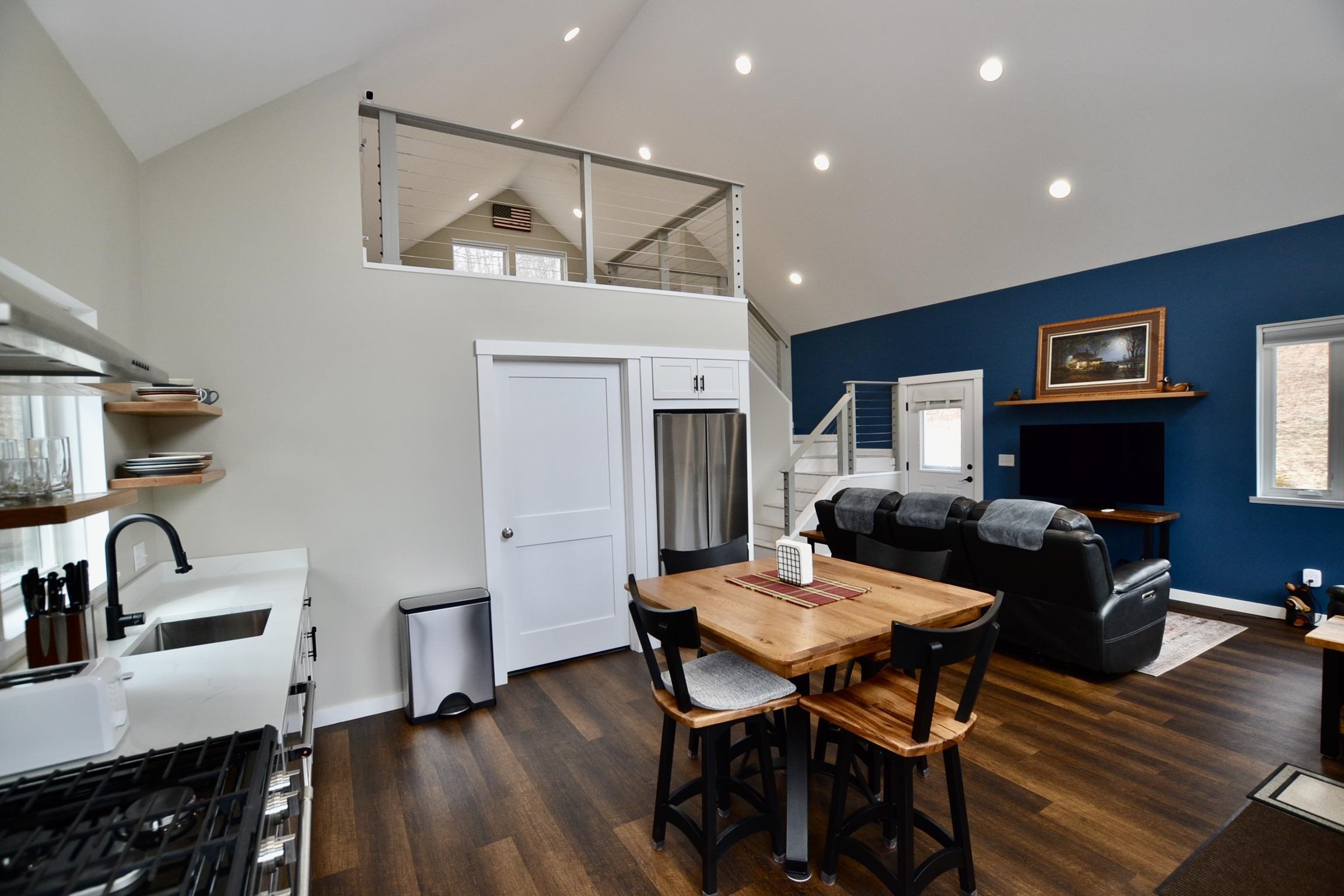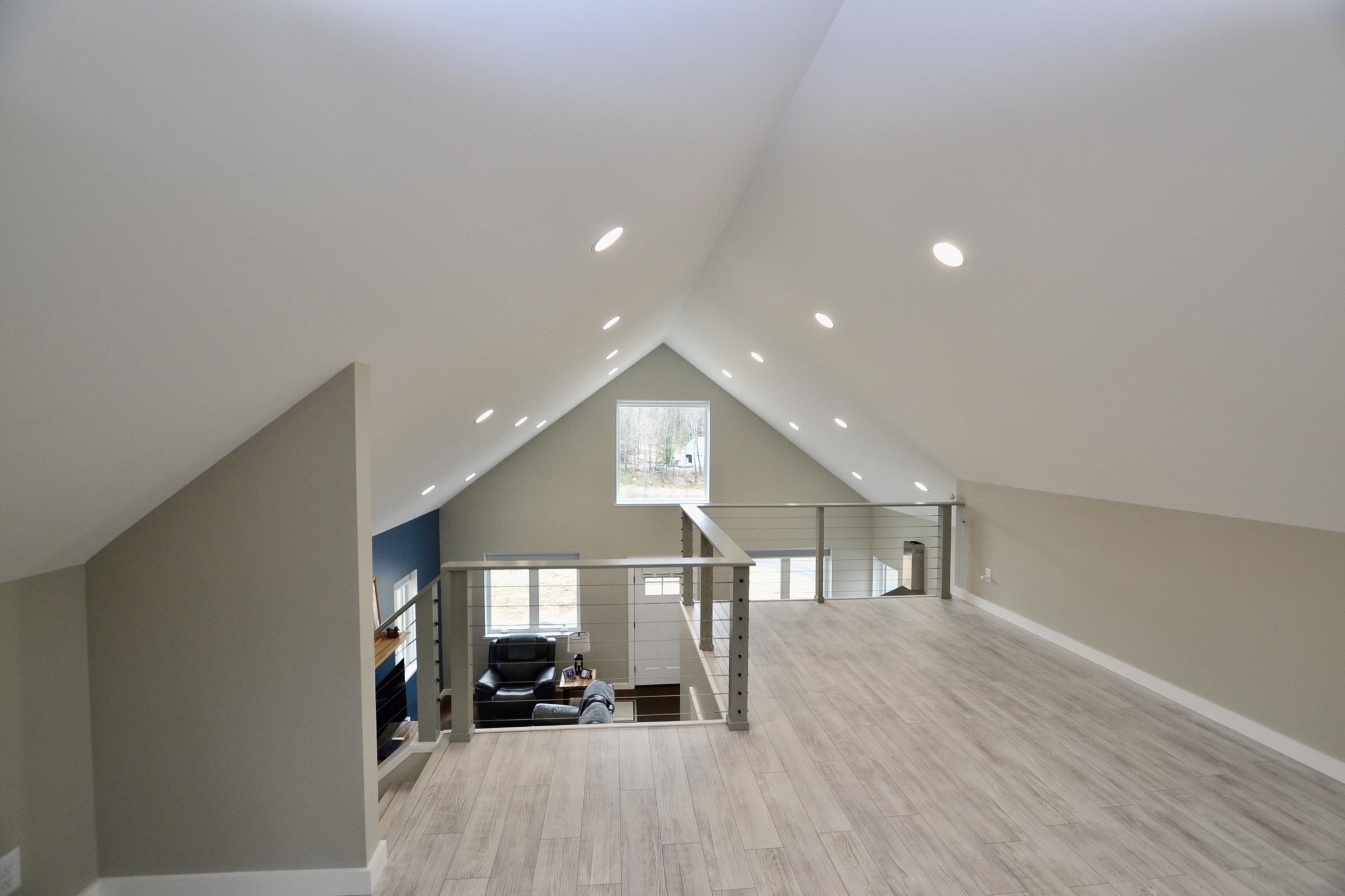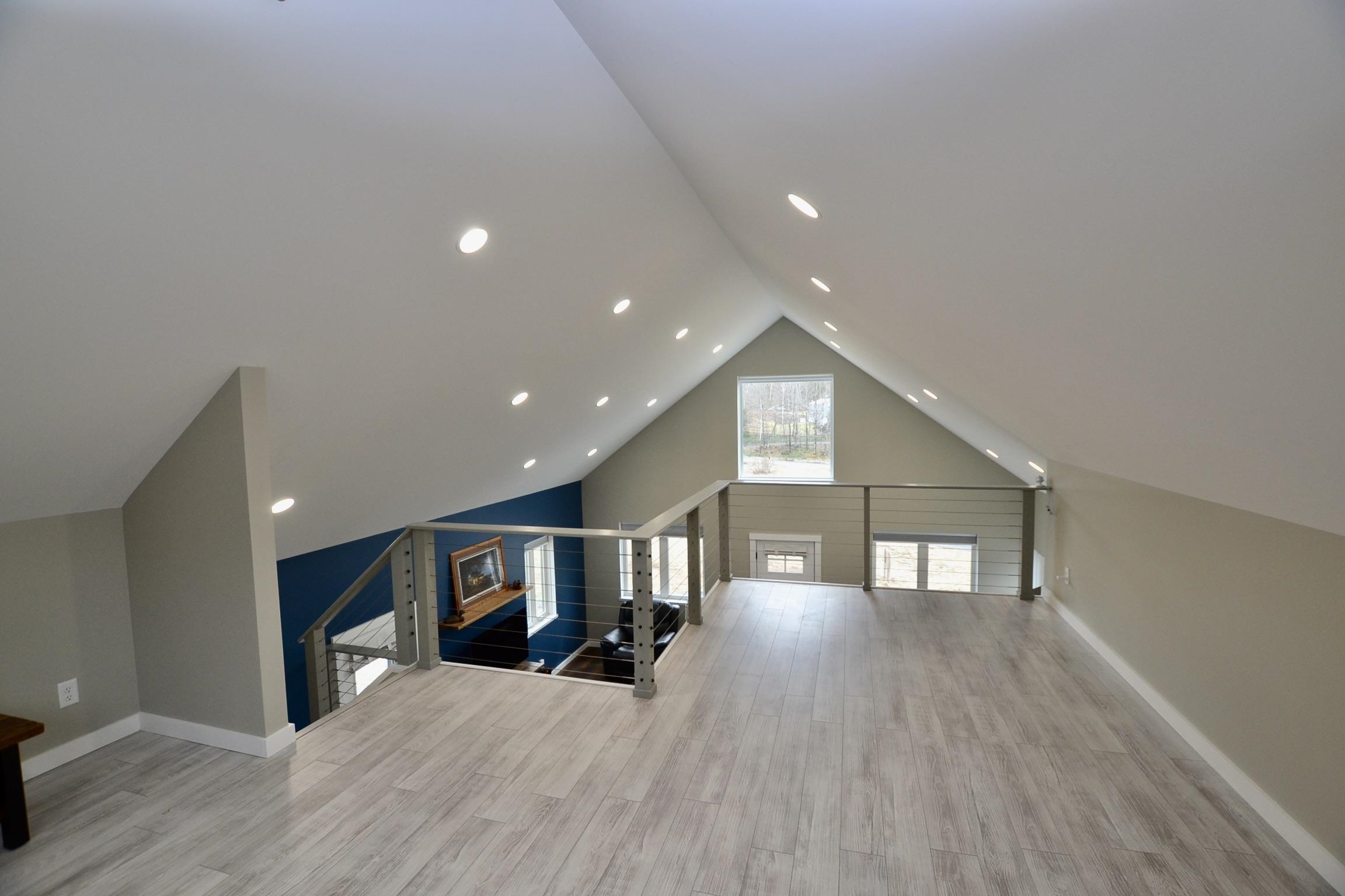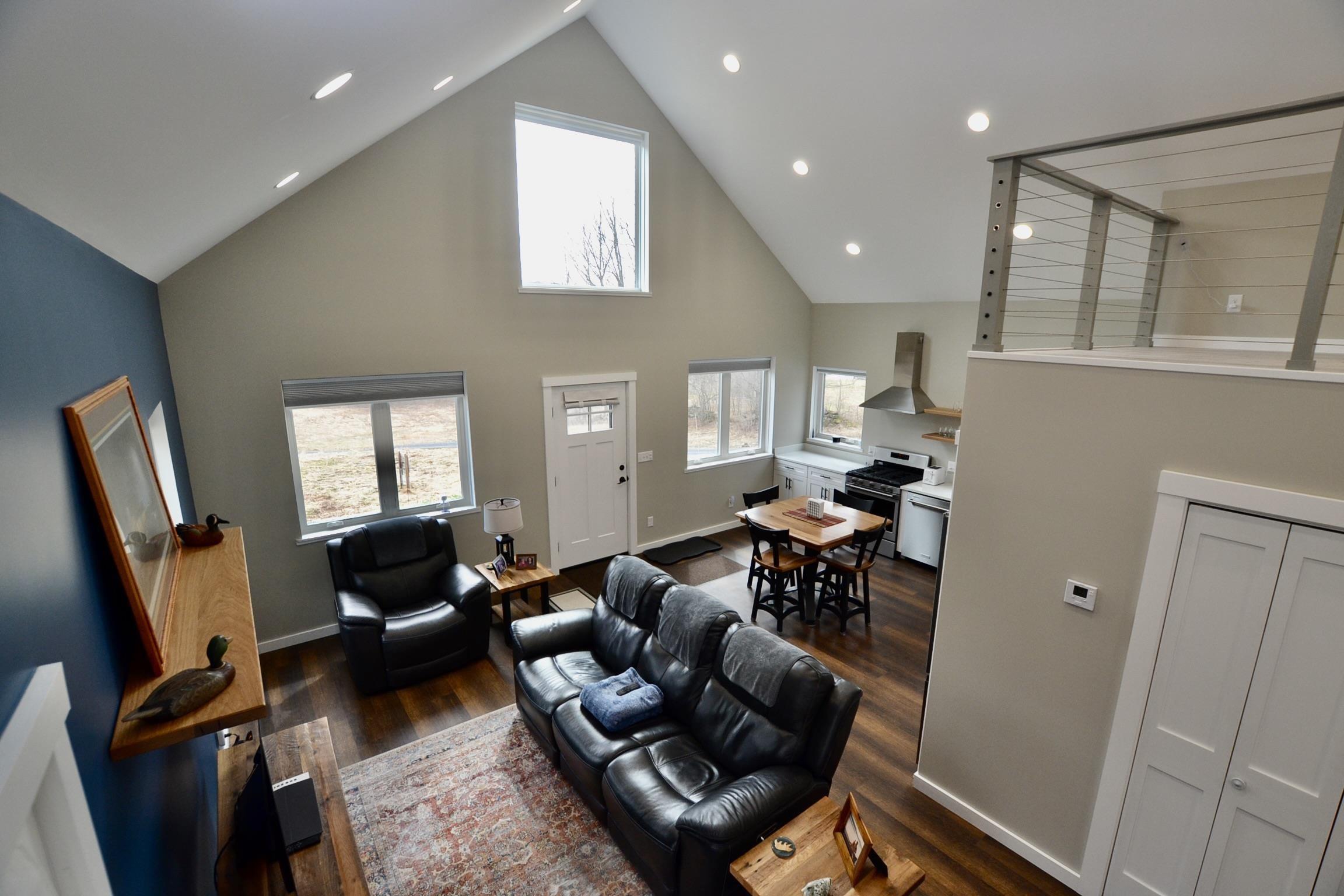 Built with purpose in 2023, this well designed house sits on 7.7 acres of good land surrounded by stone walls and mature trees. In winter the south facing windows bring in light warming up the concrete floors. In summer the remote control shades allow the floors to stay cool. The kitchen is big and bright, open to the dining and living area. The downstairs bedroom sits on the other side of a large closet next to the bathroom where the laundry is. Upstairs the loft space offers an additional bedroom or office. The thoughtful modern design and high quality craftsmanship should allow the next owners to spend their time enjoying the property. Located in Central Vermont on a hill just outside of Northfield this property offers a country setting yet lies just 2.5 miles from 89.