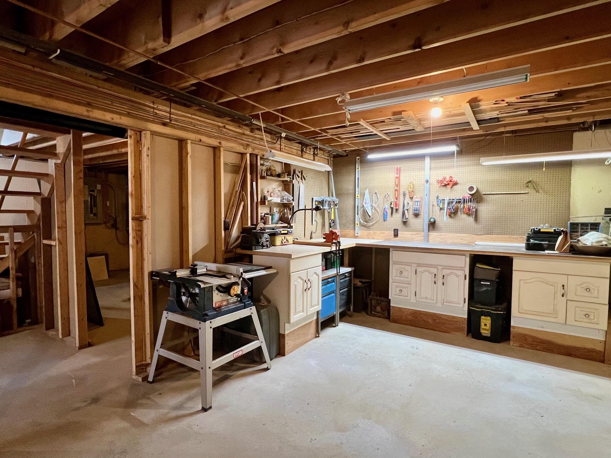 - Bulkhead, Concrete, Concrete Floor, Interior Stairs, Storage Space, Unfinished