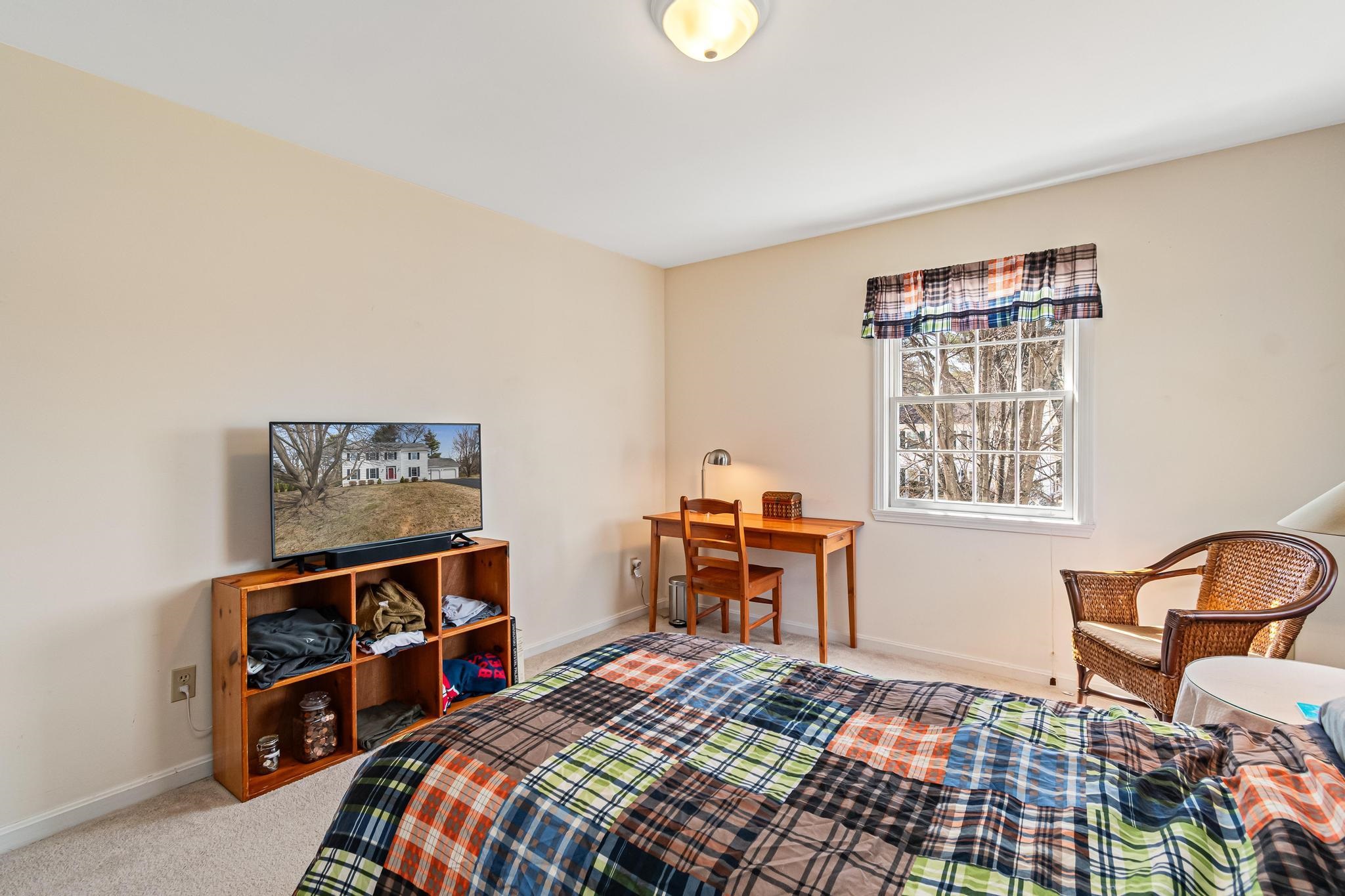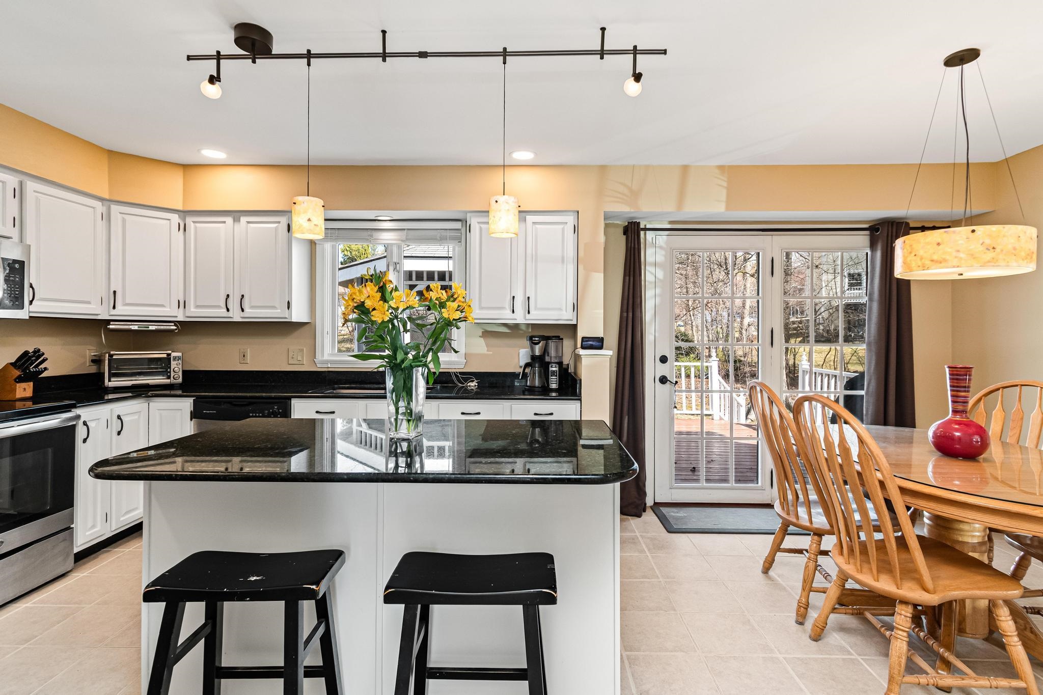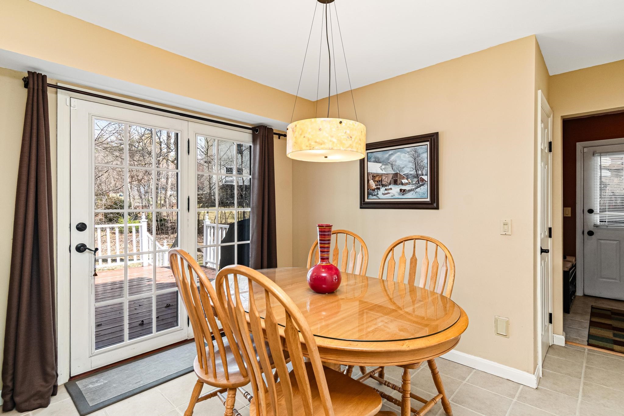 Located in Williston’s sought-after Southridge community, this 4 bed, 2.5 bath Colonial offers a spacious, well-designed layout paired with thoughtful updates and comfortable living throughout. Enter from the welcoming front porch into a bright and inviting foyer, where yellow birch hardwood flooring sets the tone and flows seamlessly into the living room, creating a warm and cohesive main living space. The kitchen is both functional and inviting, featuring a large island with granite countertops, ample cabinetry, and an eat-in nook for casual meals. Tiled flooring continues into the adjacent formal dining area, offering a great setup for both everyday living and entertaining. From the kitchen, step directly out to the back deck—perfect for indoor-outdoor flow during the warmer months. The first floor also includes a versatile front den, ideal for a home office or additional living space, along with a convenient half bath with laundry and direct access to the attached two-car garage. Upstairs, the spacious primary suite provides a relaxing retreat with a walk-in closet and a full en suite bath complete with a soaking tub, step-in shower, and vanity. Three additional bedrooms, a second full bathroom with granite countertops, and a hardwood-floored hallway complete the second level. The partially finished basement adds excellent flexibility, offering bonus space for recreation, a media room, home gym, or office, along with additional unfinished storage. Outside, enjoy a beautifully landscaped lot with a large back deck and a standout screened gazebo, complete with electricity. Additional highlights include updated lighting fixtures throughout and a central vacuum. As part of the Southridge HOA, residents enjoy access to a swimming pool, basketball and tennis courts, and 67 acres of shared open space. All this, just minutes to Williston amenities, including local schools, I-89, and Tafts Corners, making this home a perfect blend of comfort, convenience, and community.