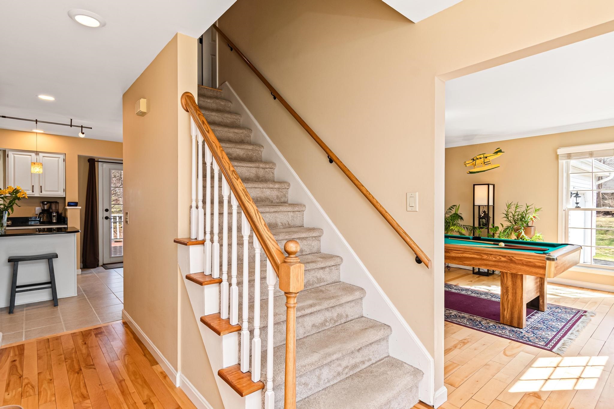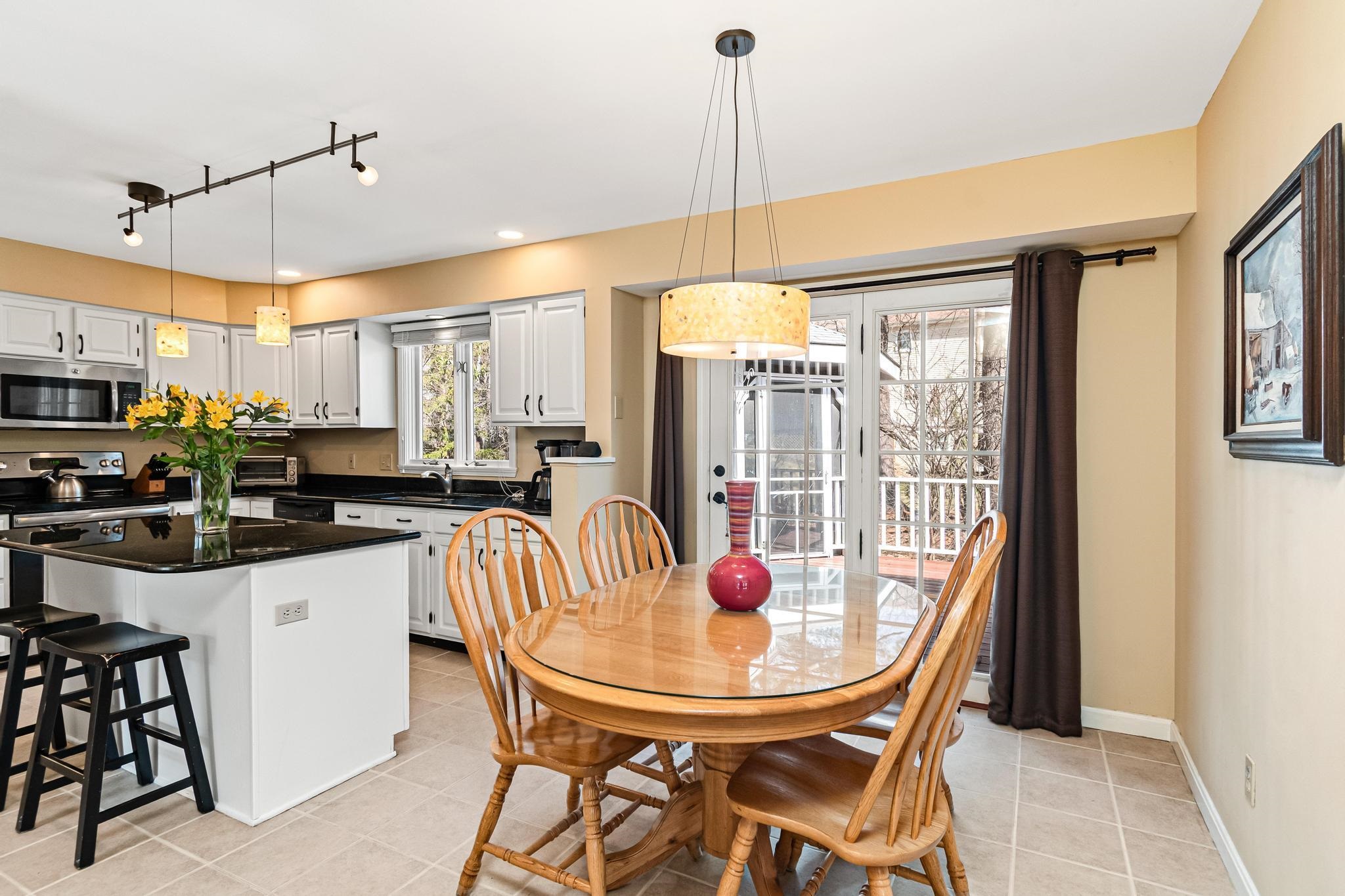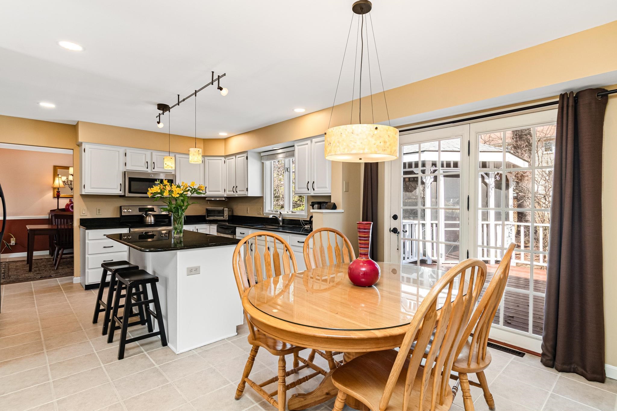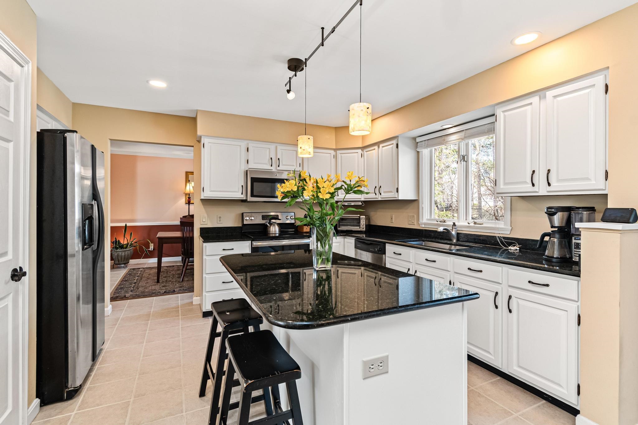 Located in Williston’s sought-after Southridge community, this 4 bed, 2.5 bath Colonial offers a spacious, well-designed layout paired with thoughtful updates and comfortable living throughout. Enter from the welcoming front porch into a bright and inviting foyer, where yellow birch hardwood flooring sets the tone and flows seamlessly into the living room, creating a warm and cohesive main living space. The kitchen is both functional and inviting, featuring a large island with granite countertops, ample cabinetry, and an eat-in nook for casual meals. Tiled flooring continues into the adjacent formal dining area, offering a great setup for both everyday living and entertaining. From the kitchen, step directly out to the back deck—perfect for indoor-outdoor flow during the warmer months. The first floor also includes a versatile front den, ideal for a home office or additional living space, along with a convenient half bath with laundry and direct access to the attached two-car garage. Upstairs, the spacious primary suite provides a relaxing retreat with a walk-in closet and a full en suite bath complete with a soaking tub, step-in shower, and vanity. Three additional bedrooms, a second full bathroom with granite countertops, and a hardwood-floored hallway complete the second level. The partially finished basement adds excellent flexibility, offering bonus space for recreation, a media room, home gym, or office, along with additional unfinished storage. Outside, enjoy a beautifully landscaped lot with a large back deck and a standout screened gazebo, complete with electricity. Additional highlights include updated lighting fixtures throughout and a central vacuum. As part of the Southridge HOA, residents enjoy access to a swimming pool, basketball and tennis courts, and 67 acres of shared open space. All this, just minutes to Williston amenities, including local schools, I-89, and Tafts Corners, making this home a perfect blend of comfort, convenience, and community.