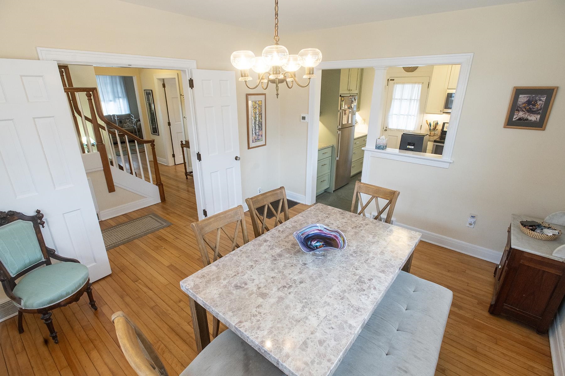 It won’t be easy to beat the location of this beautiful 4 bedroom Montpelier home. Minutes from the library, Three Penny Taproom, Union Elementary and all of downtown. That’s if you drive. And if you hit traffic. And if you have to look for a parking spot. Which you might not have to, because it’s THAT close to everything. Gorgeous hardwood floors throughout. The kitchen, while not huge, has recently been renovated with stone countertops, new cabinetry, and updated flooring. It’s ok that it’s not huge– the adjoining dining room, with what purports to be the original chandelier, is where you’ll want to share meals anyway. Spread out in the spacious living room featuring built-in shelving, and a charming wood stove for cozy evenings. First floor also offers a smaller bedroom, which could be one of the best home offices in town .A cleverly located ½ bath rounds out the first floor. Upstairs, you’ll find three bedrooms and the fully renovated full bathroom. Each bedroom has hardwood floors. One is quite large with built-ins, and then two more good-sized. Cute, landscaped corner lot with off street parking for 2 cars behind the house. Recent updates include: architectural shingle roof, insulation in walls and attic, spray foam in basement, new furnace, oil tank, chimney, and more. NOT in the 1% flood hazard zone. Ground water (not river water) did enter the basement in 2023. Open House Saturday 4/18 10-noon.