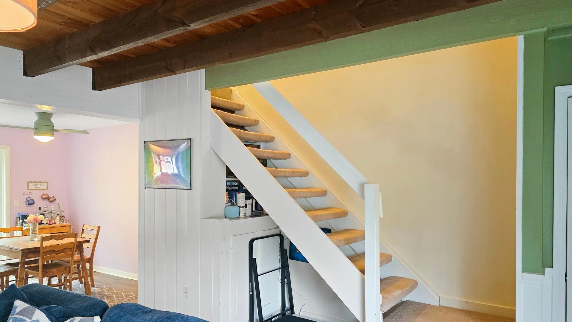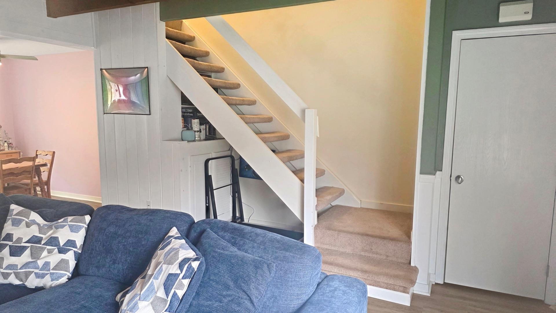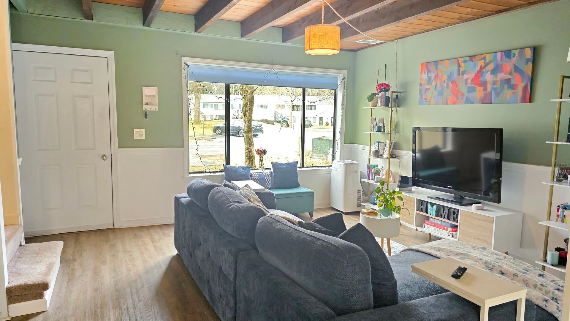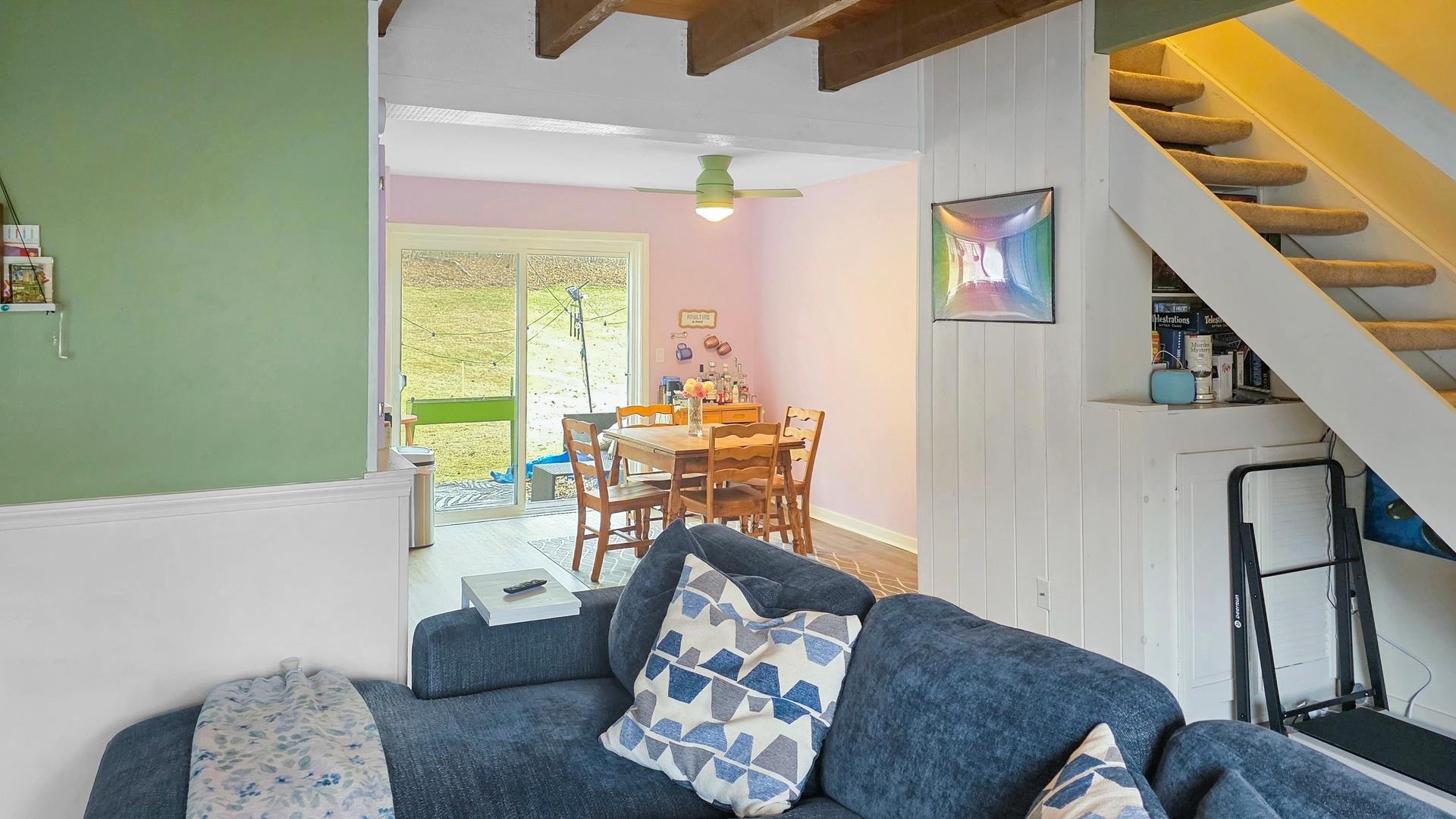 Nestled in the desirable rear section of Oak Knoll, this end-unit condominium offers added privacy and a peaceful patio overlooking the woods. The charming living room features exposed wooden beams, attractive laminate flooring, and a warm, inviting feel enhanced by soft pastel tones throughout. Upstairs, you’ll find two comfortable bedrooms and a full bath. The home also includes in-unit laundry, with additional coin-operated facilities available for larger items, along with access to a workout area. A new outdoor green space is planned for 2026, adding even more appeal to the community. Recent upgrades provide both comfort and efficiency, including an energy-efficient York furnace (2020), appliances less than three years old, a newer sliding door to the patio, and three high-efficiency portable air conditioners (approximately four years old), all included with the sale. Conveniently located just 10 minutes from Dartmouth College and 15 minutes from Dartmouth Health, this pet-friendly community also offers easy access to nearby walking trails—perfect for enjoying the outdoors.