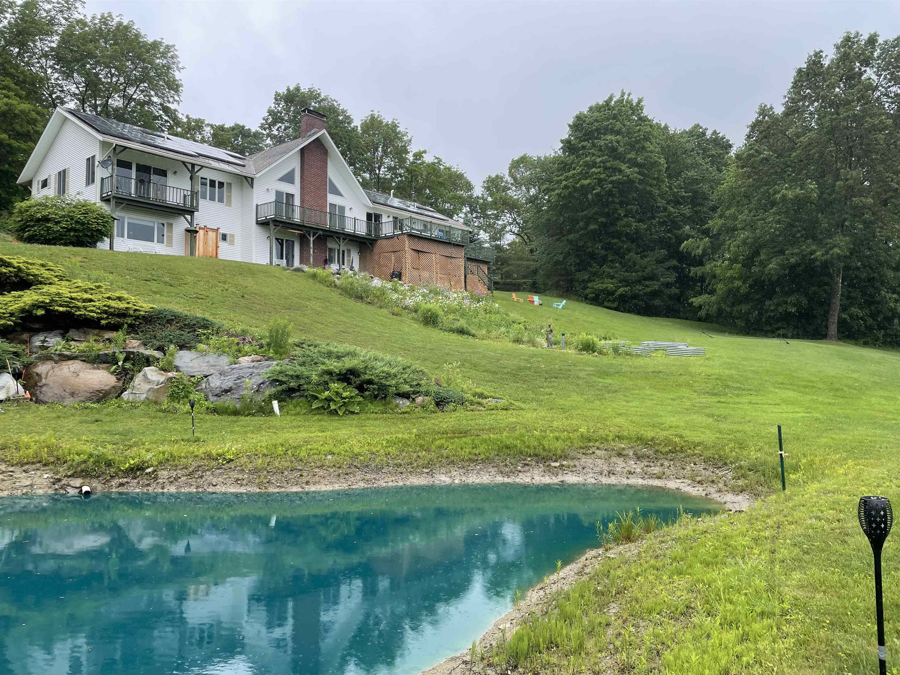 Fall in love with the great outdoors at this spectacular hill side contemporary home with incredible panoramic mountain views. The builder showcased this unbeatable feature with 6 sets of sliding glass doors allowing idealistic Vermont indoor-outdoor entertaining and enjoyment throughout this 3 bedroom, 2.5 bath plus flex space home. This property boasts many luxury qualities and upgrades to satisfy your creature comforts such as radiant floor heating, heated 3 bay garage, jacuzzi primary bath, gigantic primary closet with closet system, outdoor shower & hot tub, swimming pond with fountain, steel carport, brand new granite countertops throughout, interior paint, all new carpets, new kitchen appliances, and more! The Mediterranean inspired 15' cathedral-ceiling great room with floor-to-ceiling stone fireplace, natural stone entry bench and serine indoor water feature make for an impressive and welcoming gathering space. This property has ample storage space in the partially finished walk-out lower level, making access a breeze for maintenance, hobbies, or just general storage. Also in the lower level is a full kitchenette and the flex-space. This home has over 11 acres of private land to love and explore, with roughly 3 acres manicured for modest maintenance with endless enjoyment! Lincoln is known for it's rural nature and scenic beauty, with the New Haven river leading to the town center of the 44 square miles. If you've not yet discovered Lincoln, we encourage you to come see what you're missing! West Hill Road is approximately 45 minutes from BTV, 1hr from UVMMC & Burlington, 30-35 minutes from Porter Medical Center & Middlebury, and exactly zero minutes away from the most breathtaking mountain range sun sets VT has to offer! **Sellers offering $10K Seller Concession with acceptable offer in first 60 days towards purchaser(s) closing costs, rate buy-down, or deck resurfacing**
