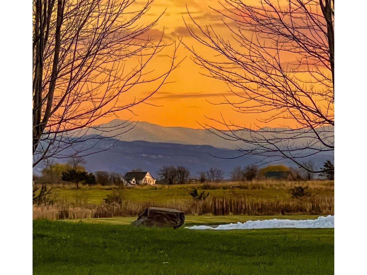 Tucked away at the end of a dead-end road, this 4-bedroom, 4-bath home offers stunning, unobstructed views of the Green Mountains. Built in 2014, this light-filled, tasteful interior features walls of windows and an expansive, open-concept main floor that connects the living, dining, and family rooms - all positioned to capture the 30 acres of common land and mountain landscape. This level also includes a guest room and full bath and offers the flexibility for a primary bedroom on the first floor. Large chef's kitchen features breakfast bar/island, stainless-steel appliances, and Meriachy counters. Upstairs, you’ll find a large primary suite, two additional bedrooms, and a full bath. The walkout lower level has endless potential as an in-law suite or entertainment space with a full kitchen, office, family room, and full bath. For the hobbyist or collector, in addition to the attached, heated 3-car garage, a detached structure added in 2022 provides space for a car collection, workshop, or private studio. The best of both worlds - close to everything yet overlooking open land and neighboring farm with walking trail through common land and easy access to x-country skiing. Fabulous location just 10 minutes from UVM, CVU, Burlington, Shelburne Village, and Williston with privacy and nature at home!