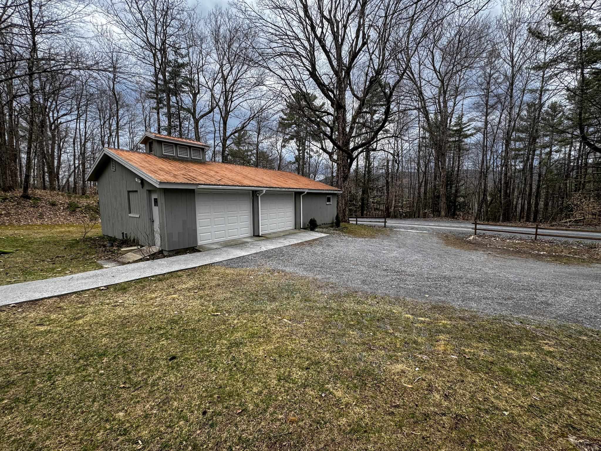 Tucked away on a peaceful country road in Shaftsbury, this 2-bedroom, 2-bath contemporary ranch offers the perfect balance of privacy and convenience—just 10 minutes to Bennington. Set on 1.5 acres, the home features easy one-level living with an open, light-filled layout. The heart of the home is the bright, sunny kitchen with ample workspace and modern finishes. The spacious primary suite includes a private ensuite bath and a generous walk-in closet, while a comfortable guest bedroom is paired with a full bath—ideal for visitors or flexible use. Enjoy indoor/outdoor living with a wrap-around deck that perfect for relaxing or entertaining. A versatile entry space, currently used as a mudroom, offers excellent potential to be converted into a charming 3-season porch. Additional highlights include a dedicated laundry room and an oversized detached two-car garage that is fully heated—ideal for year-round use, hobbies, or extra storage. Surrounded by a tranquil country setting with room to relax, garden, or unwind, this property offers the best of Vermont living while remaining close to dining, shopping, and amenities in nearby Bennington.