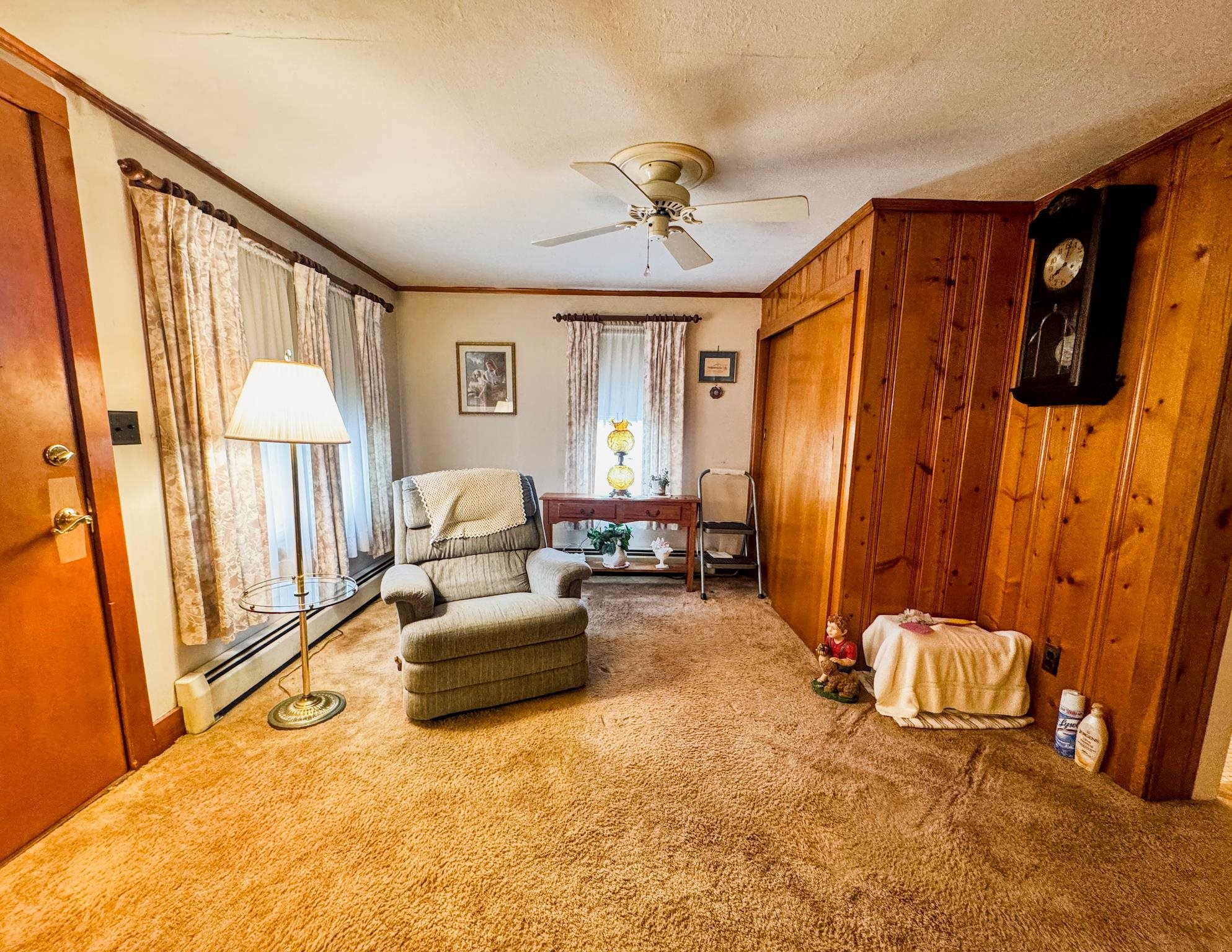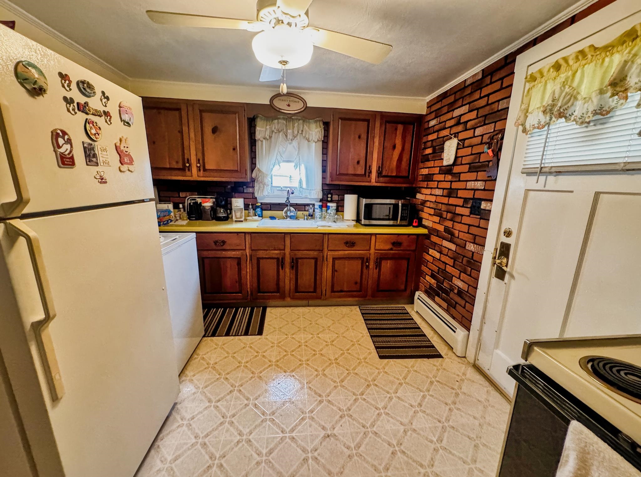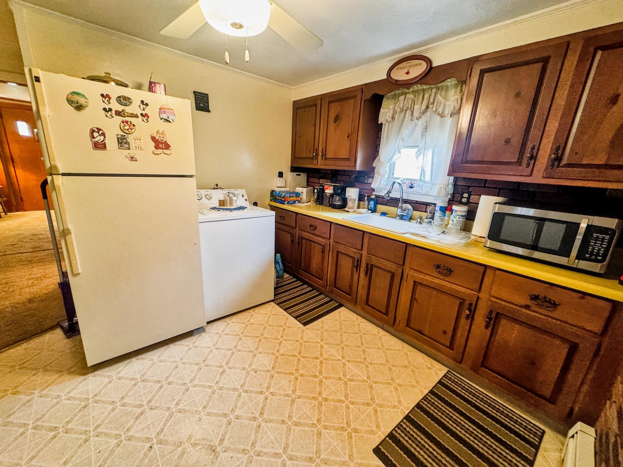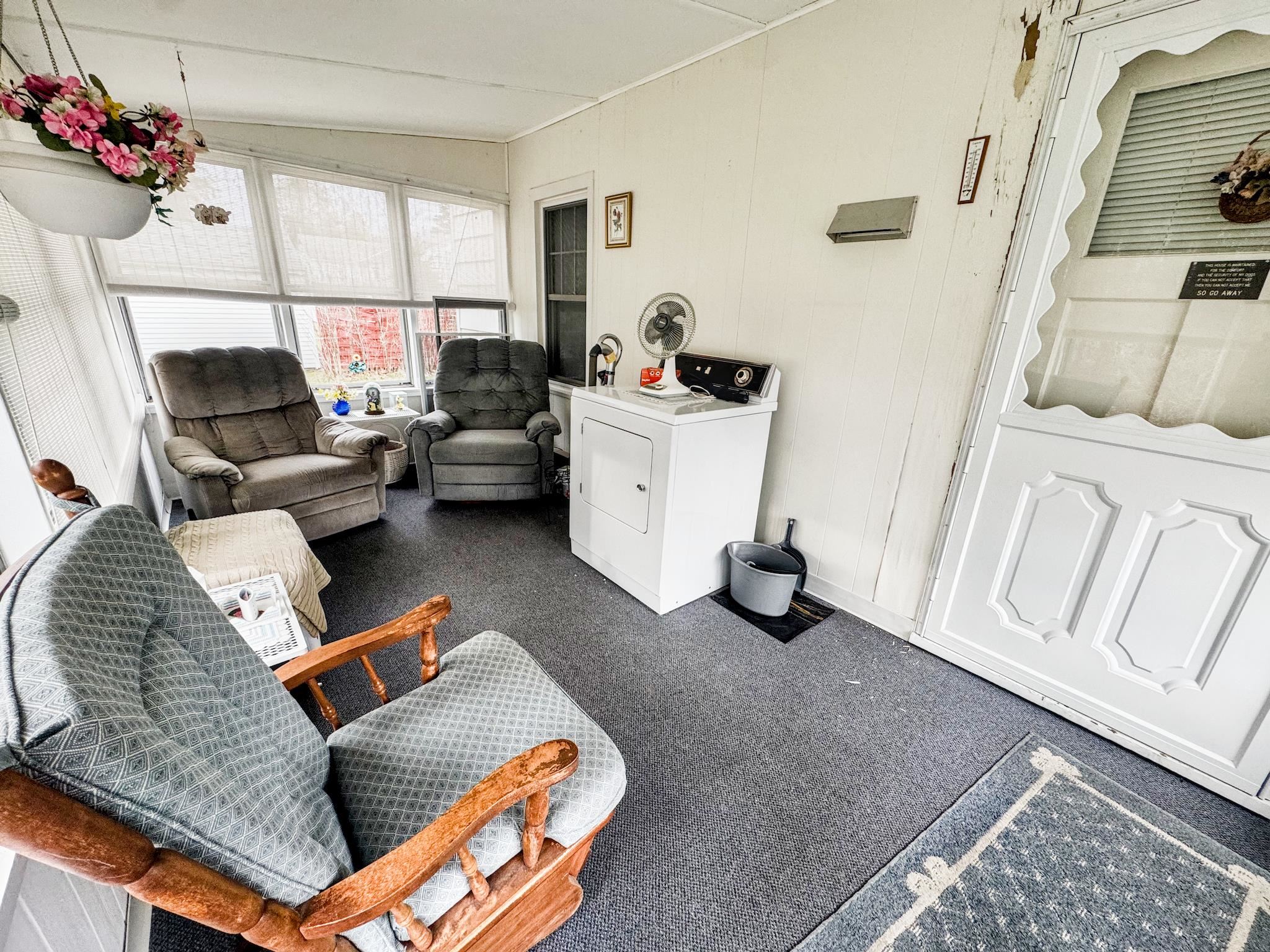 - Ceiling Fan, Dining Area, Wood Fireplace, 1 Fireplace, Hearth, Laundry Hook-ups, Natural Light, Natural Woodwork, Indoor Storage, Wood Stove Insert